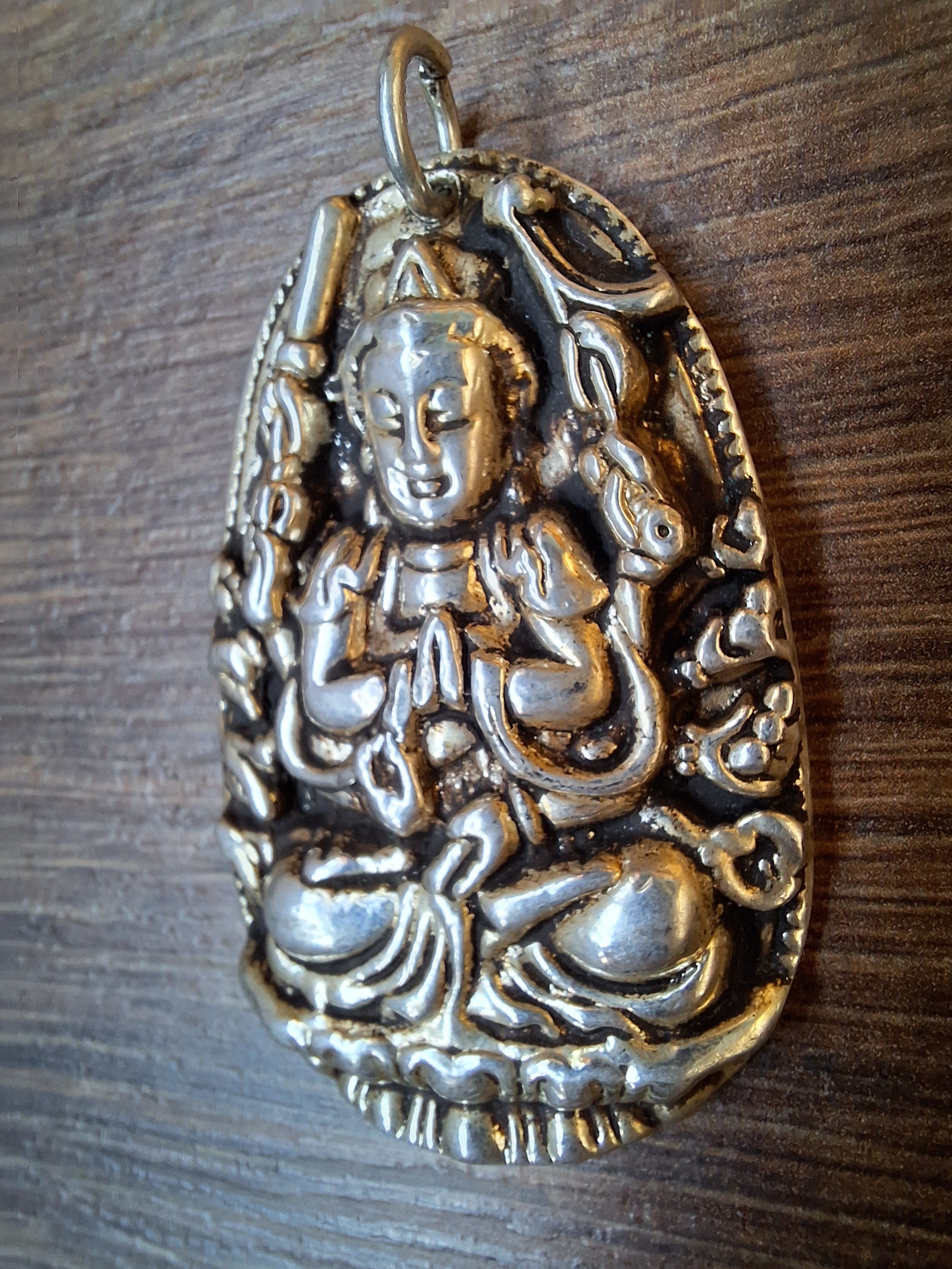 Very nice silver pendant with the depiction of Guanyin.