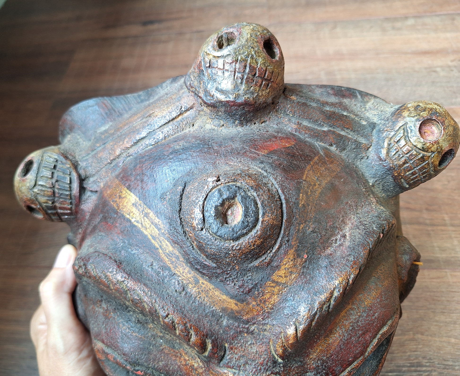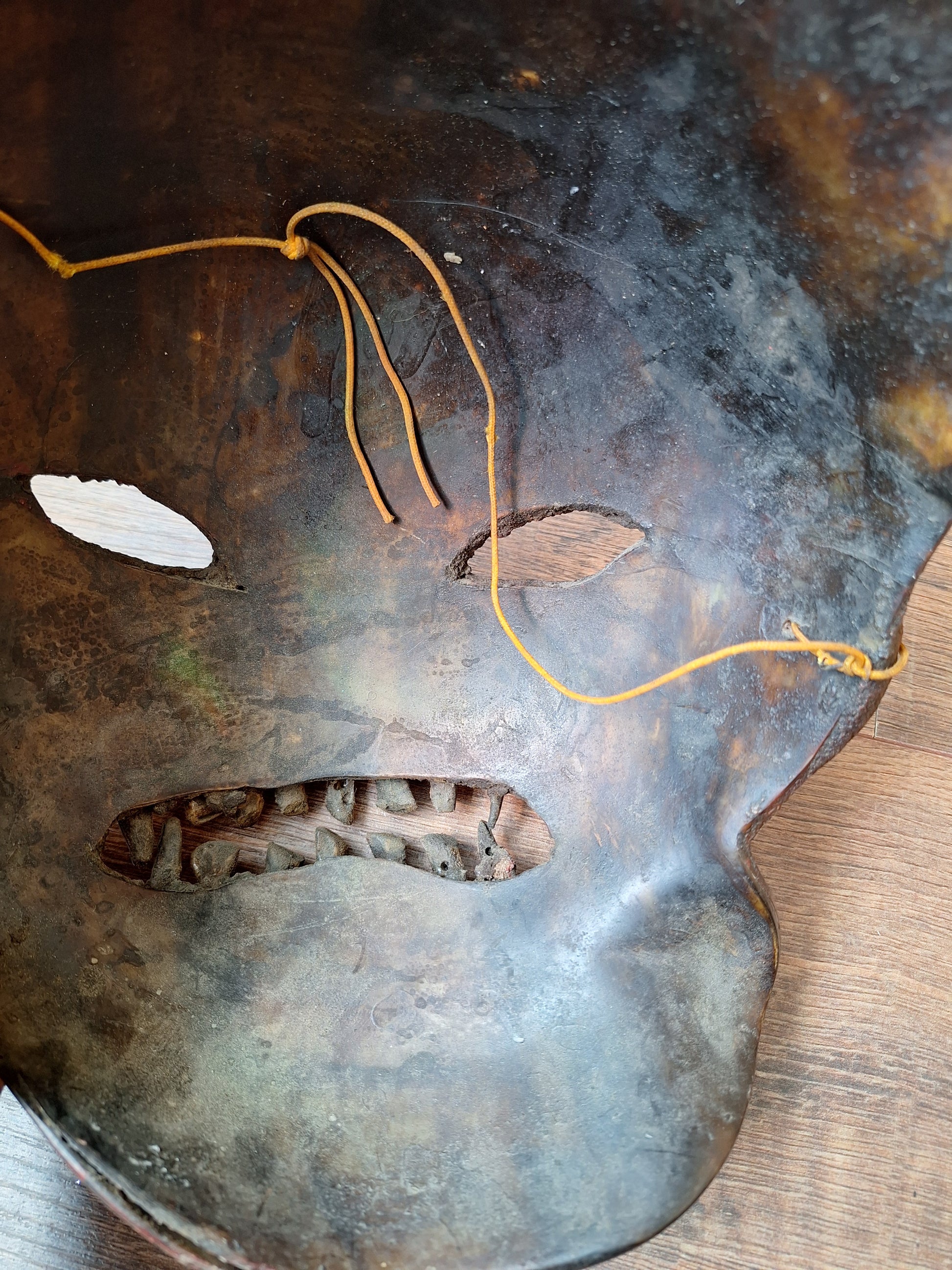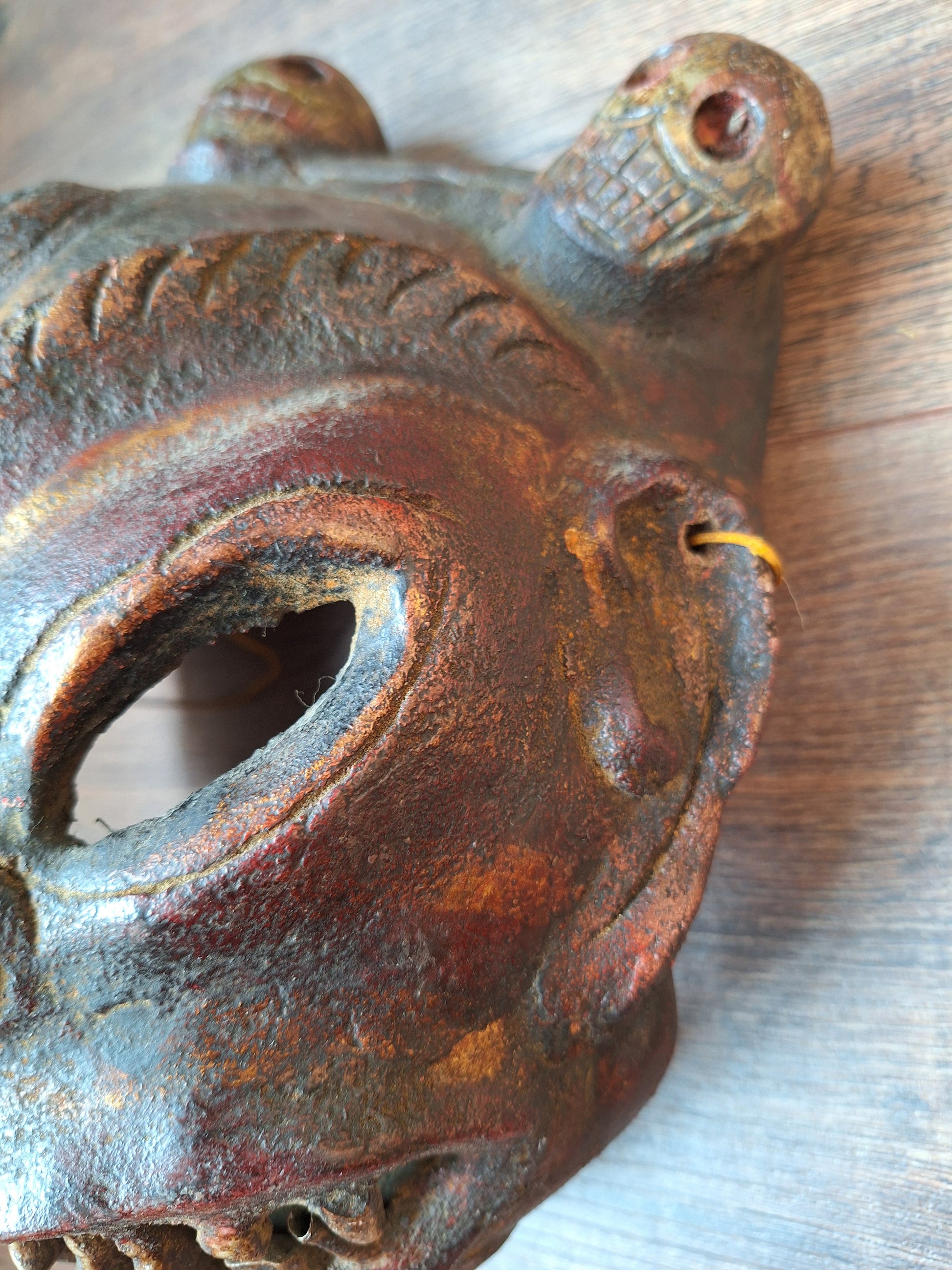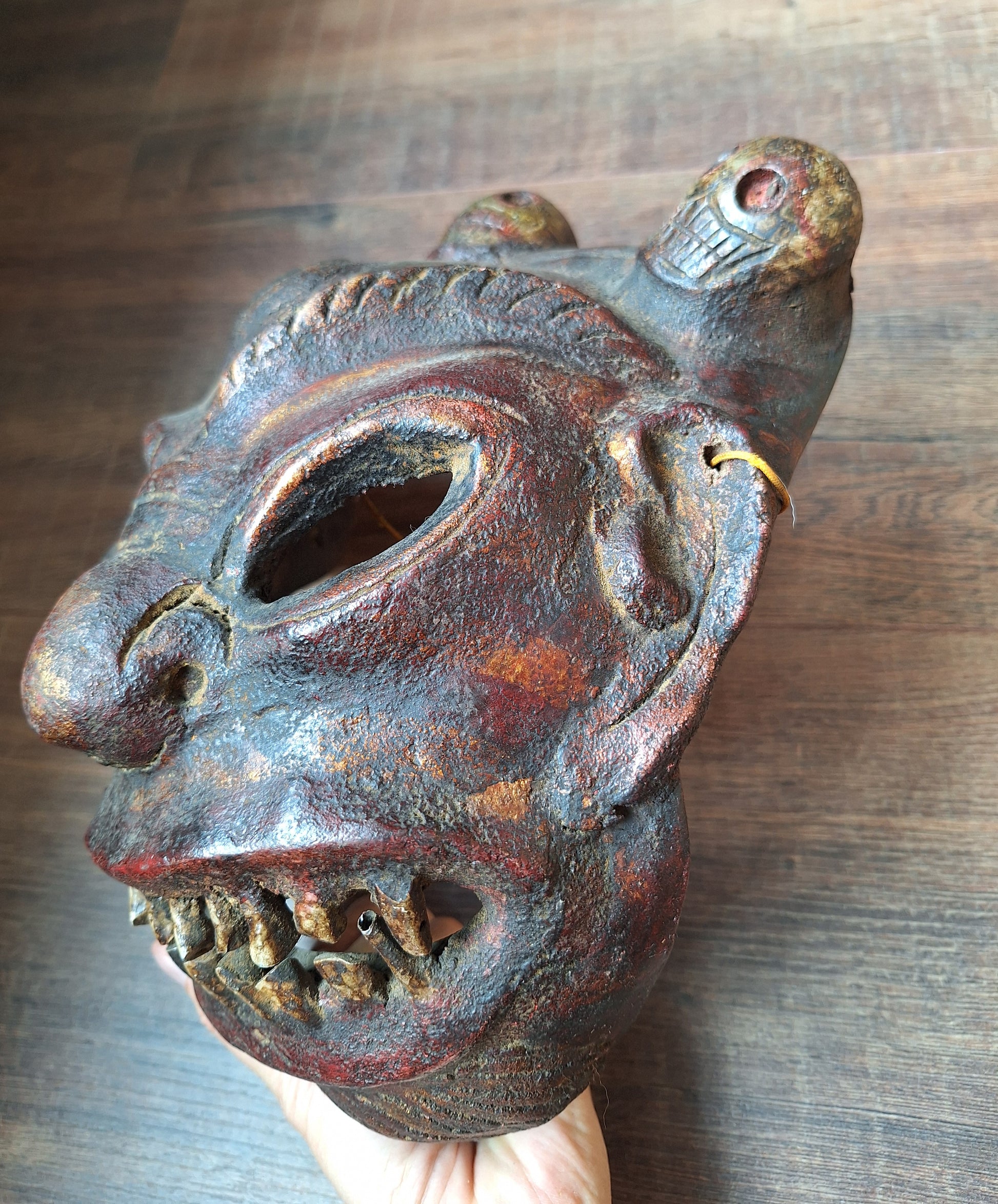 Amazing Nepalese wrathful spirit mask made from horn. A very rare and unique piece of artisan Himalayan craftmanship.