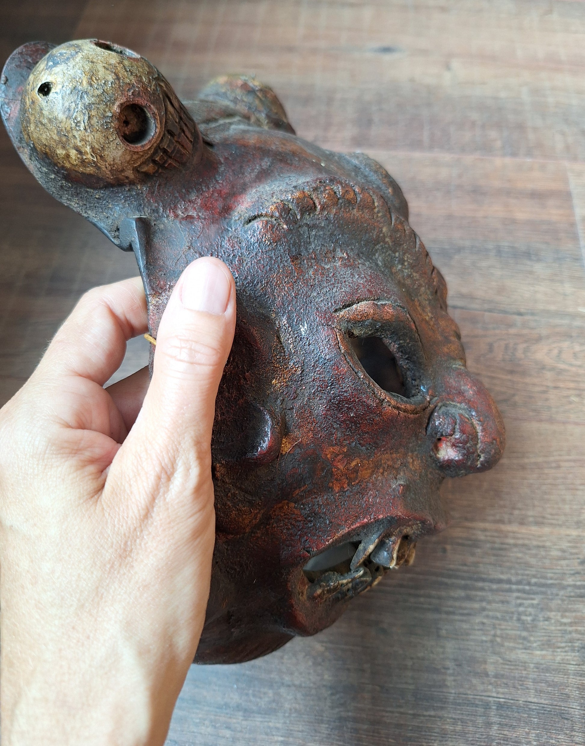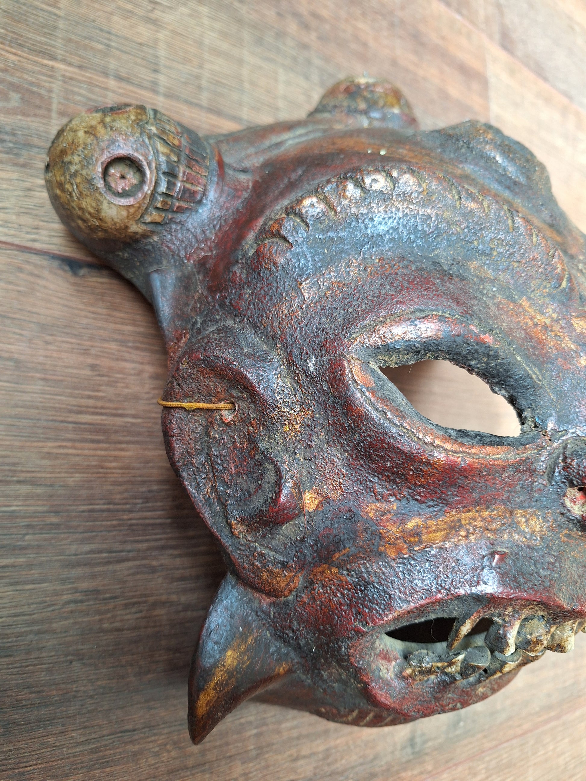 Vintage Nepalese wrathful spirit mask from horn