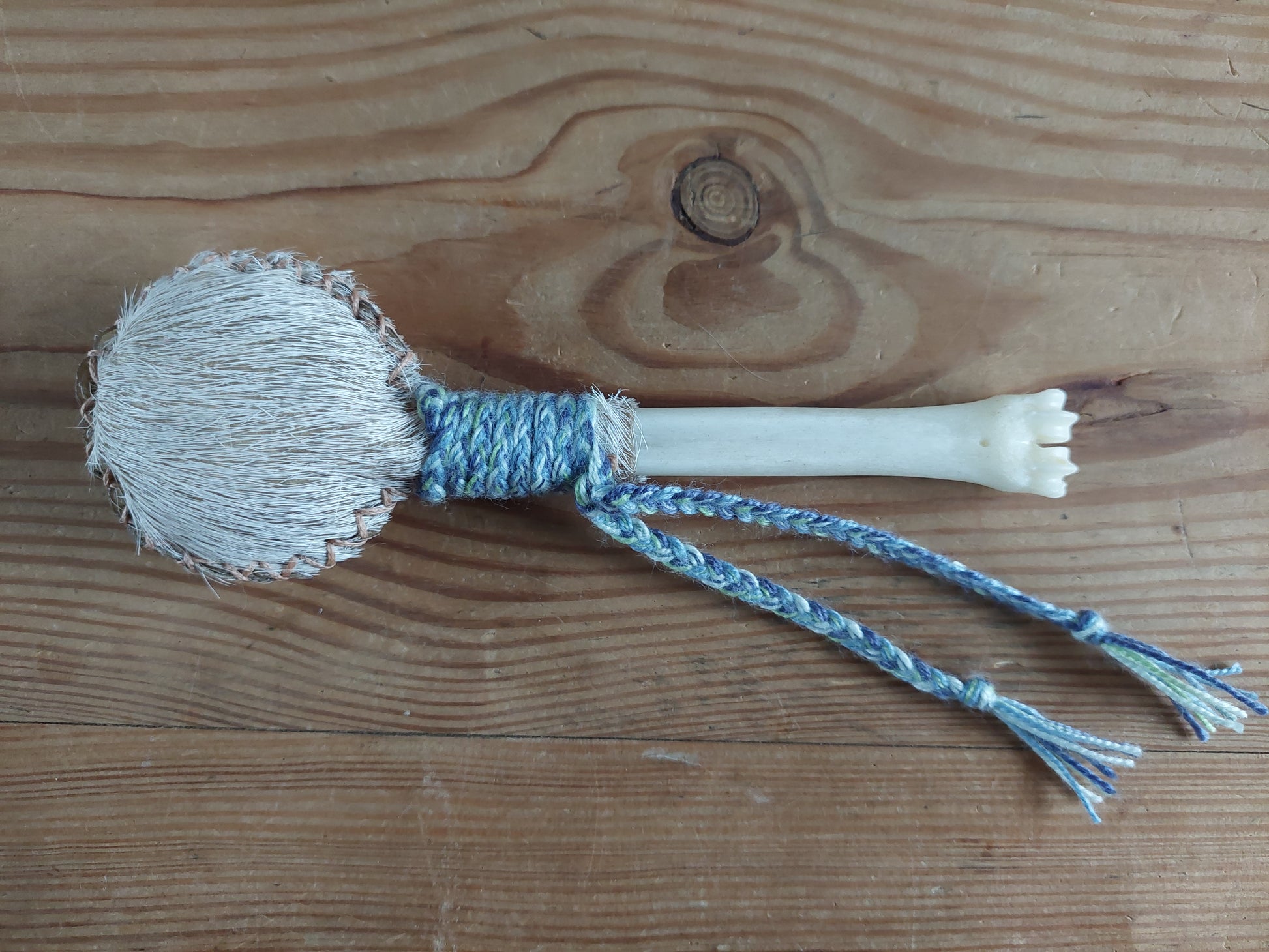This rattle is constructed with a leg bone from a dutch roe deer as handle.