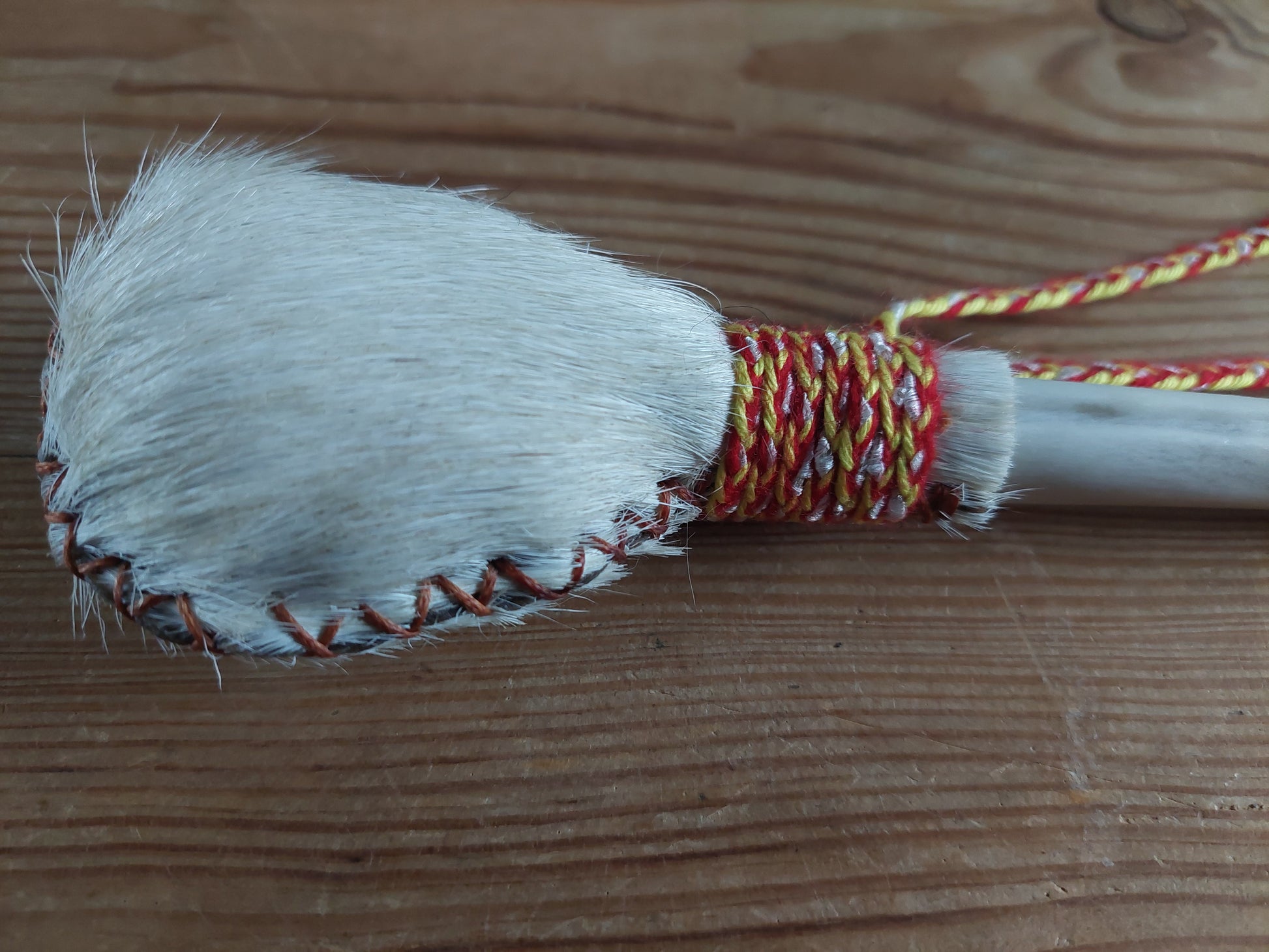This rattle is constructed with a leg bone from a dutch roe deer as handle.