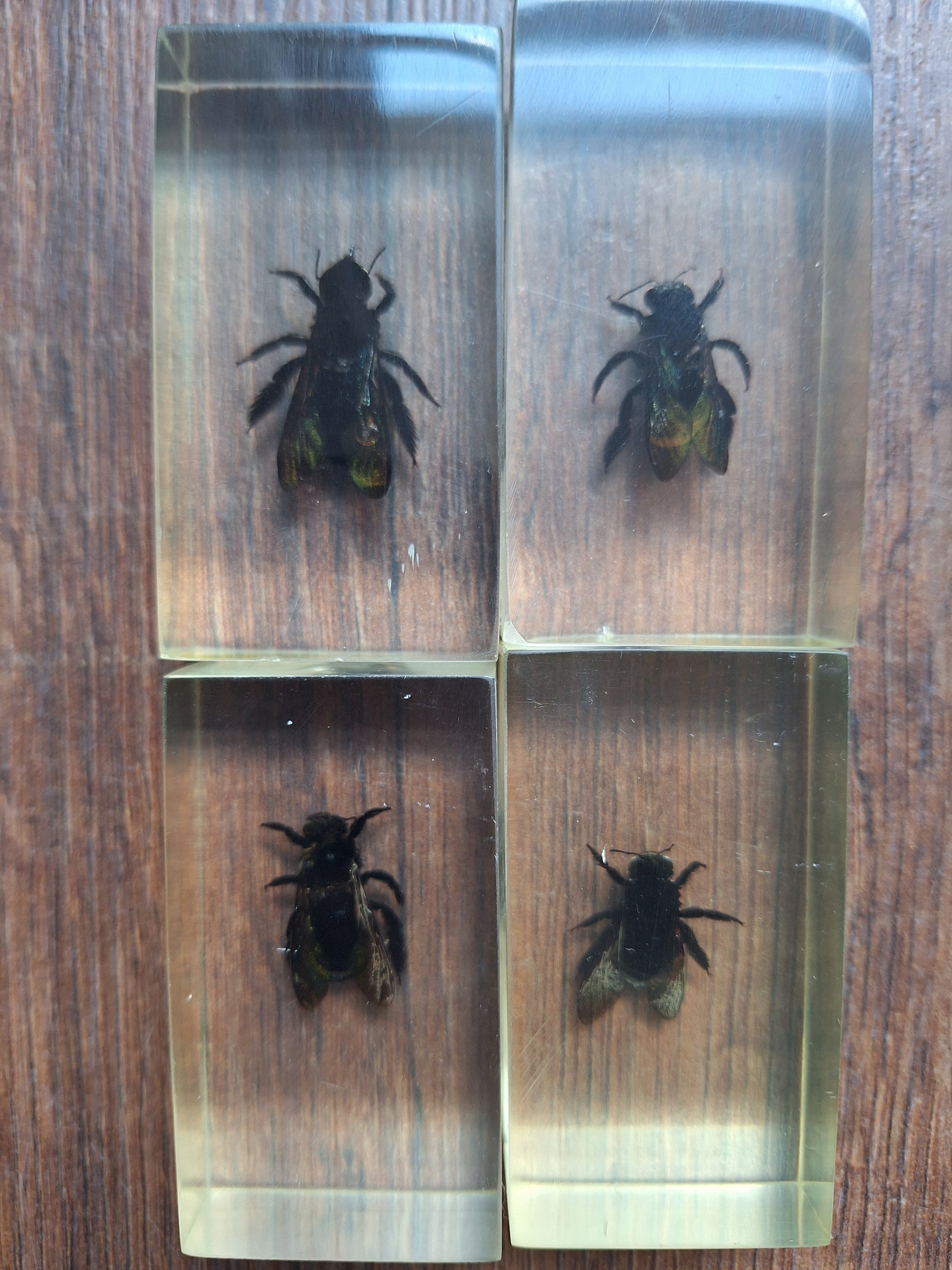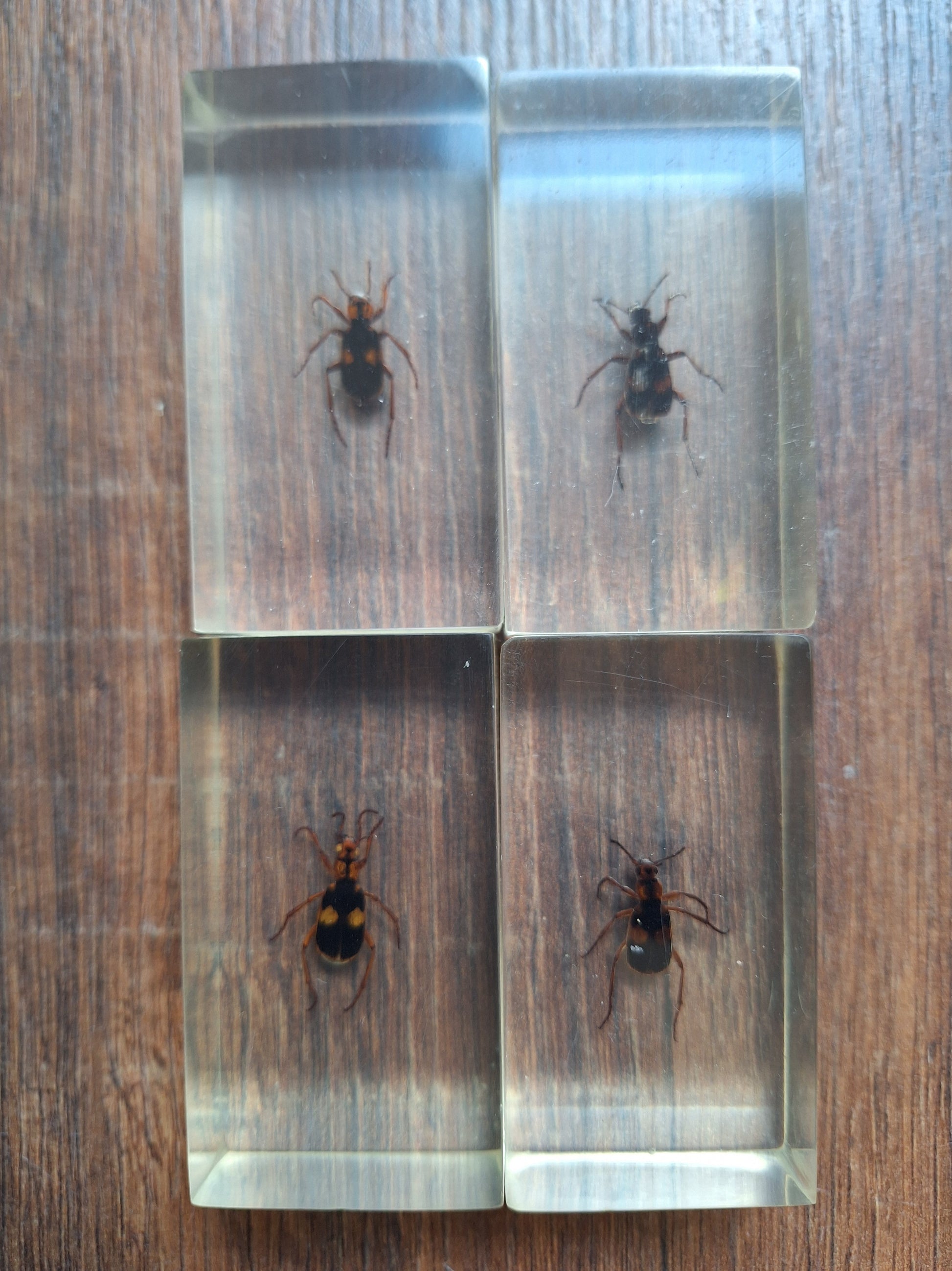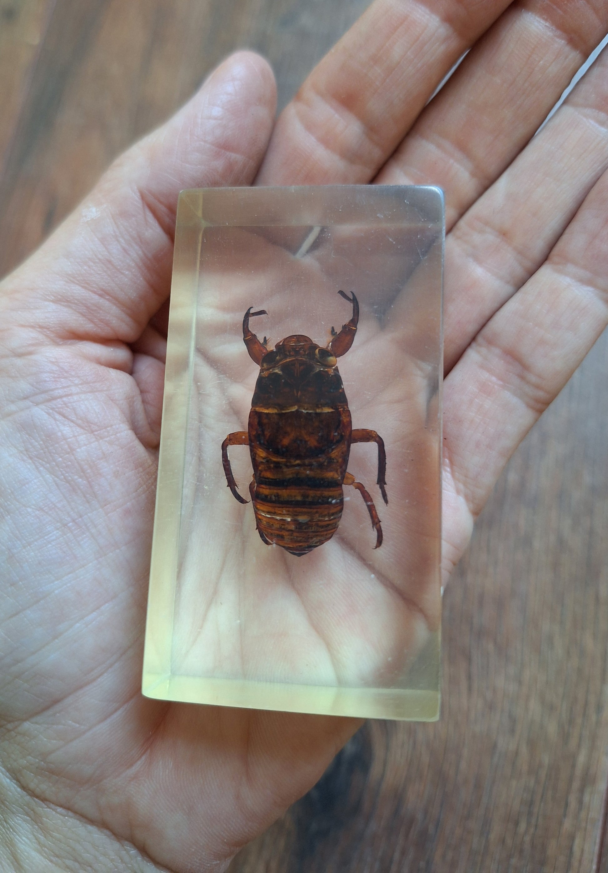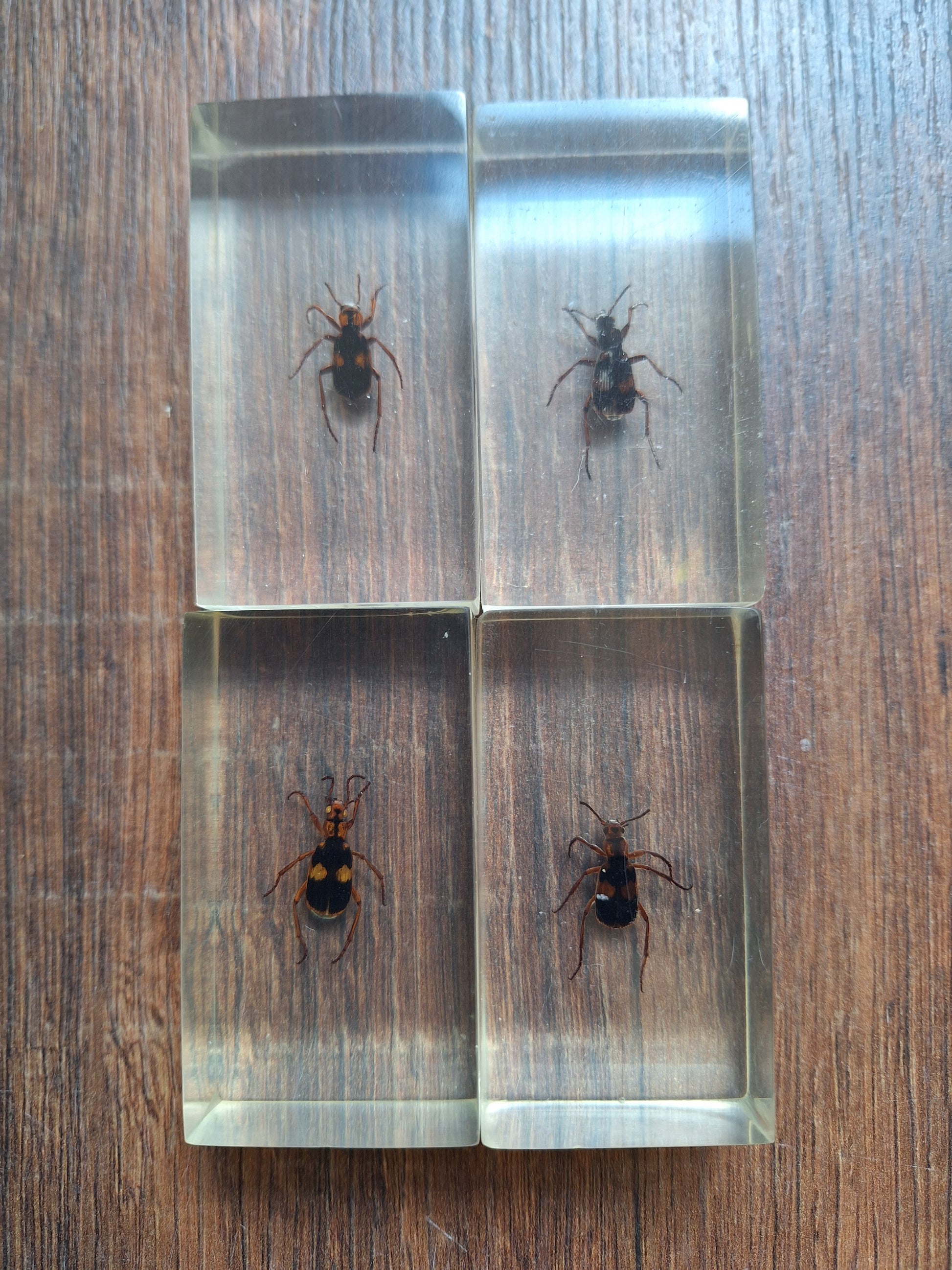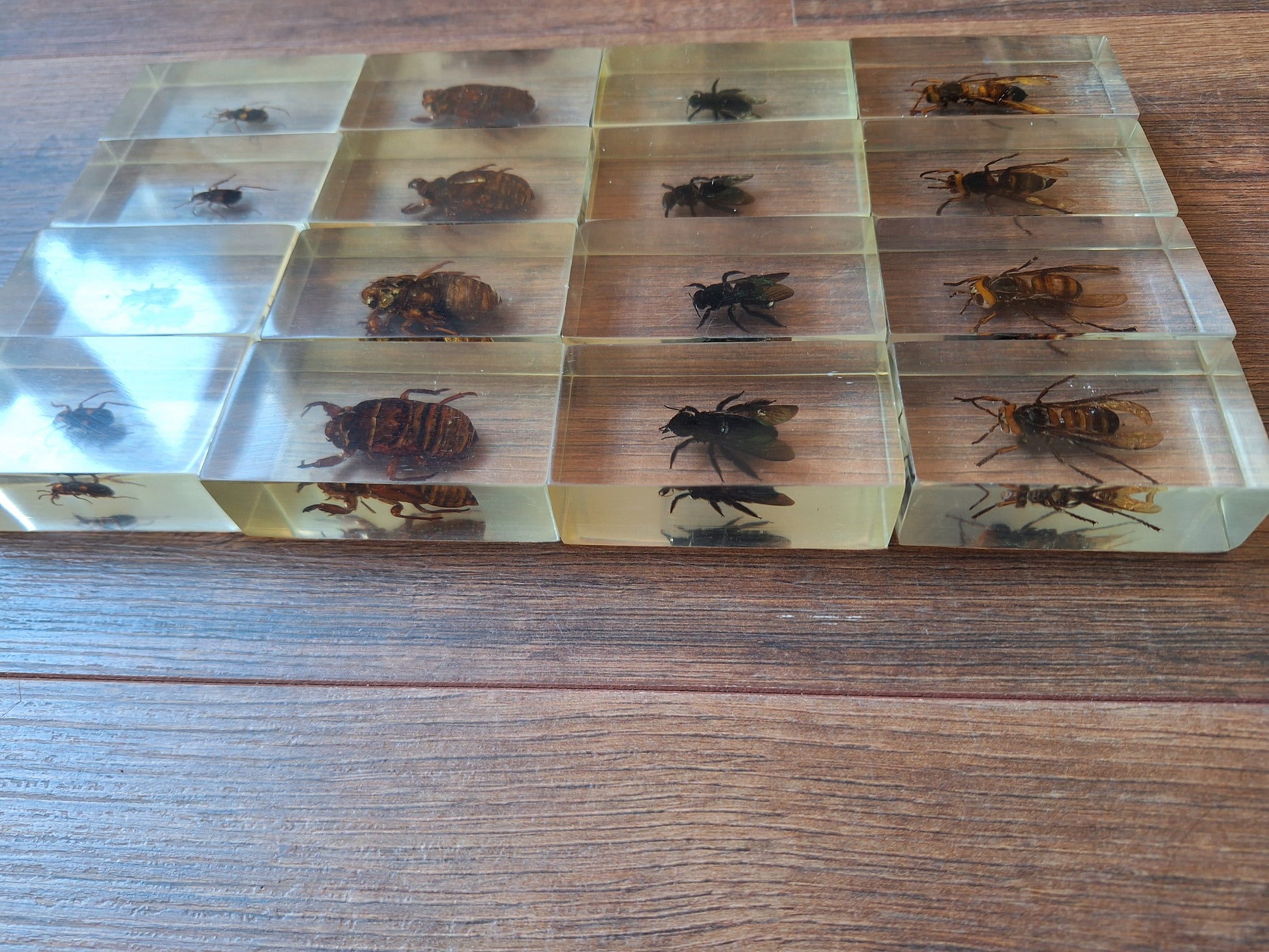 Insects encapsulated in a cube of clear resin. The cubes may have some minor scratches here and there (therefore the price is a bit lower than normal), but overall in good condition. A nice addition to your cabinet of curiosities.