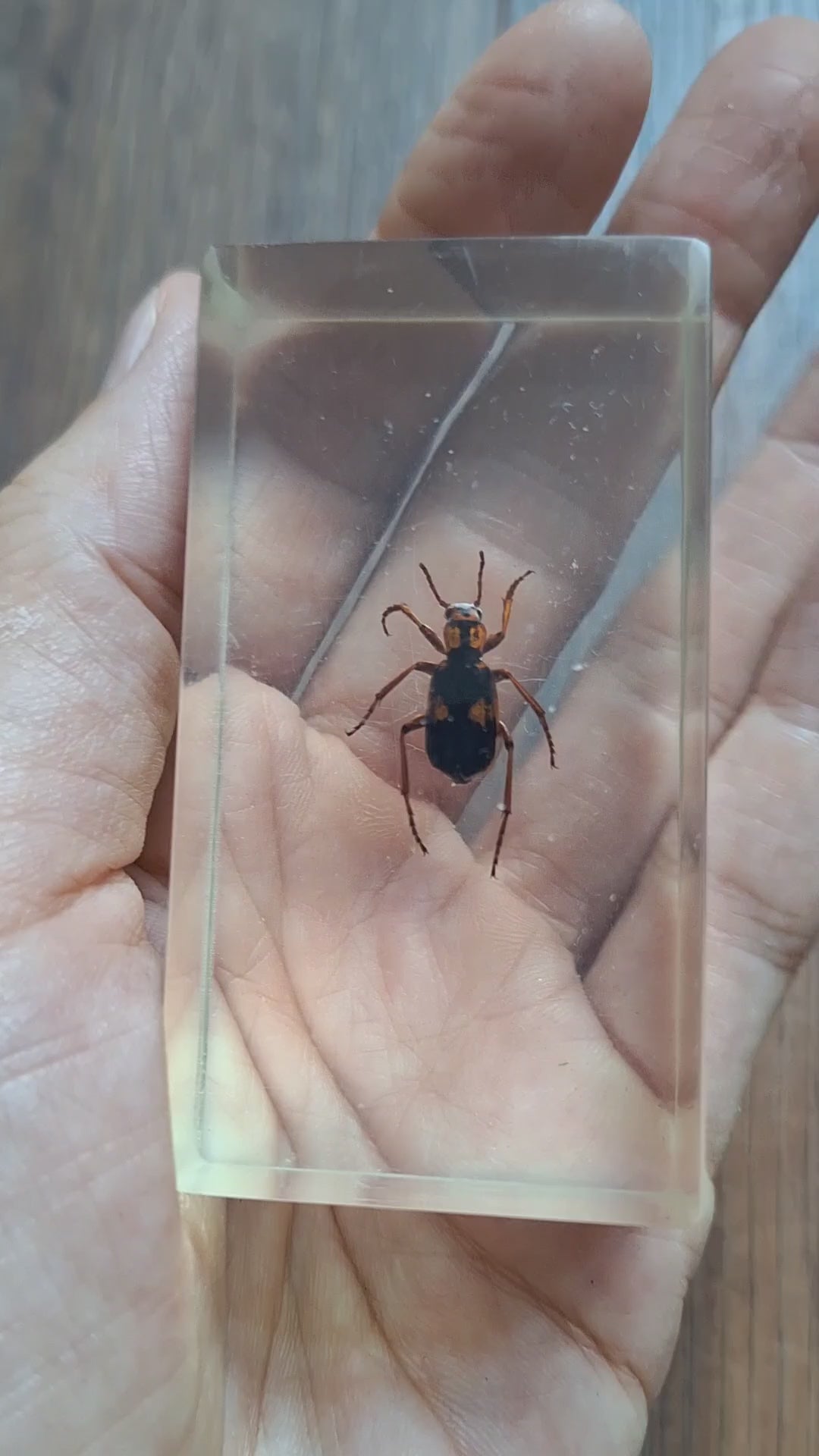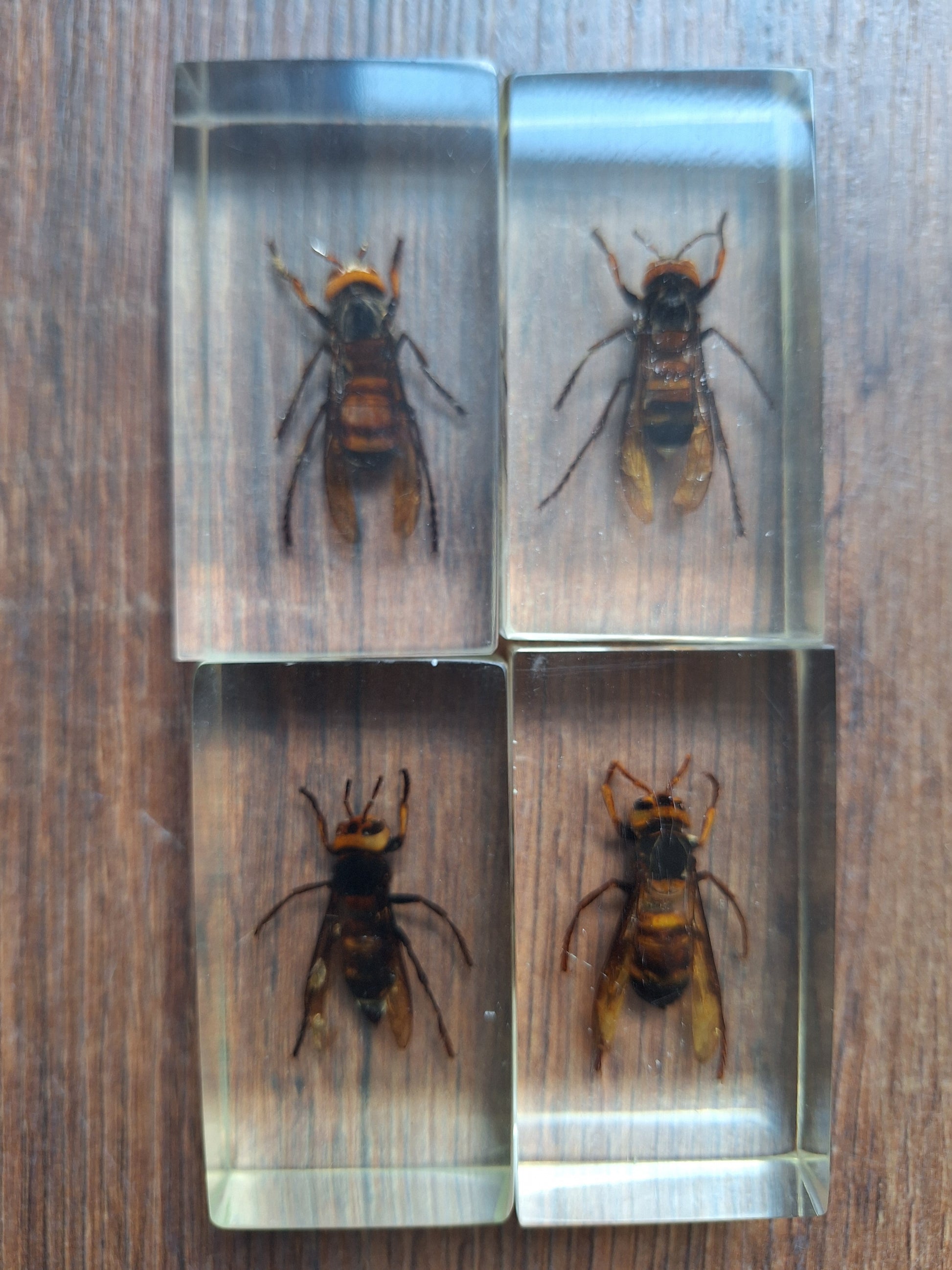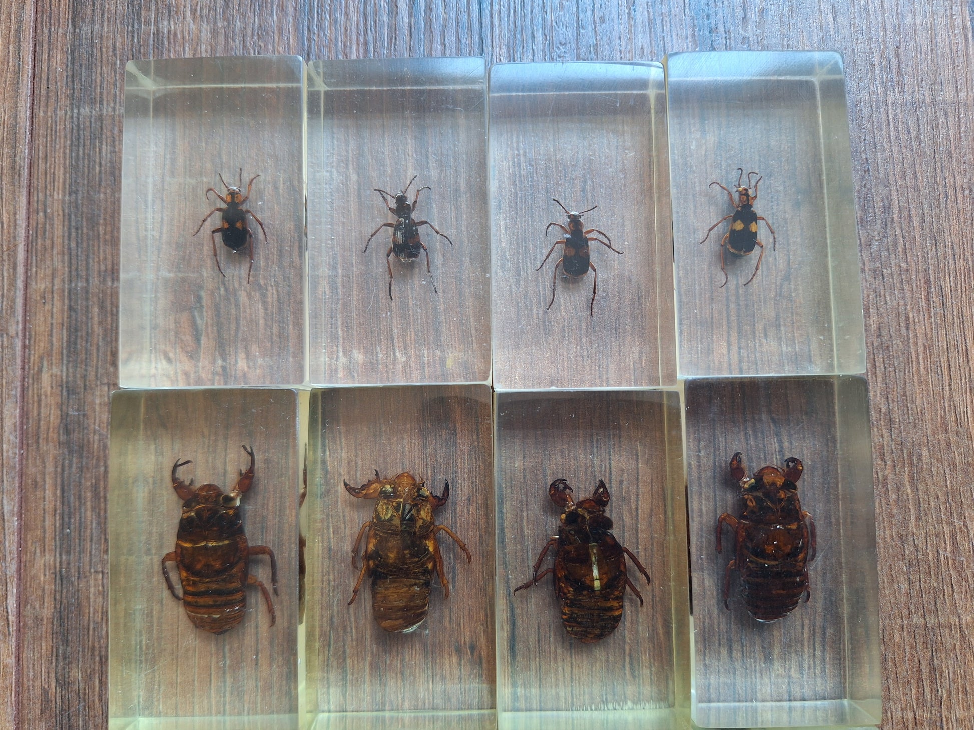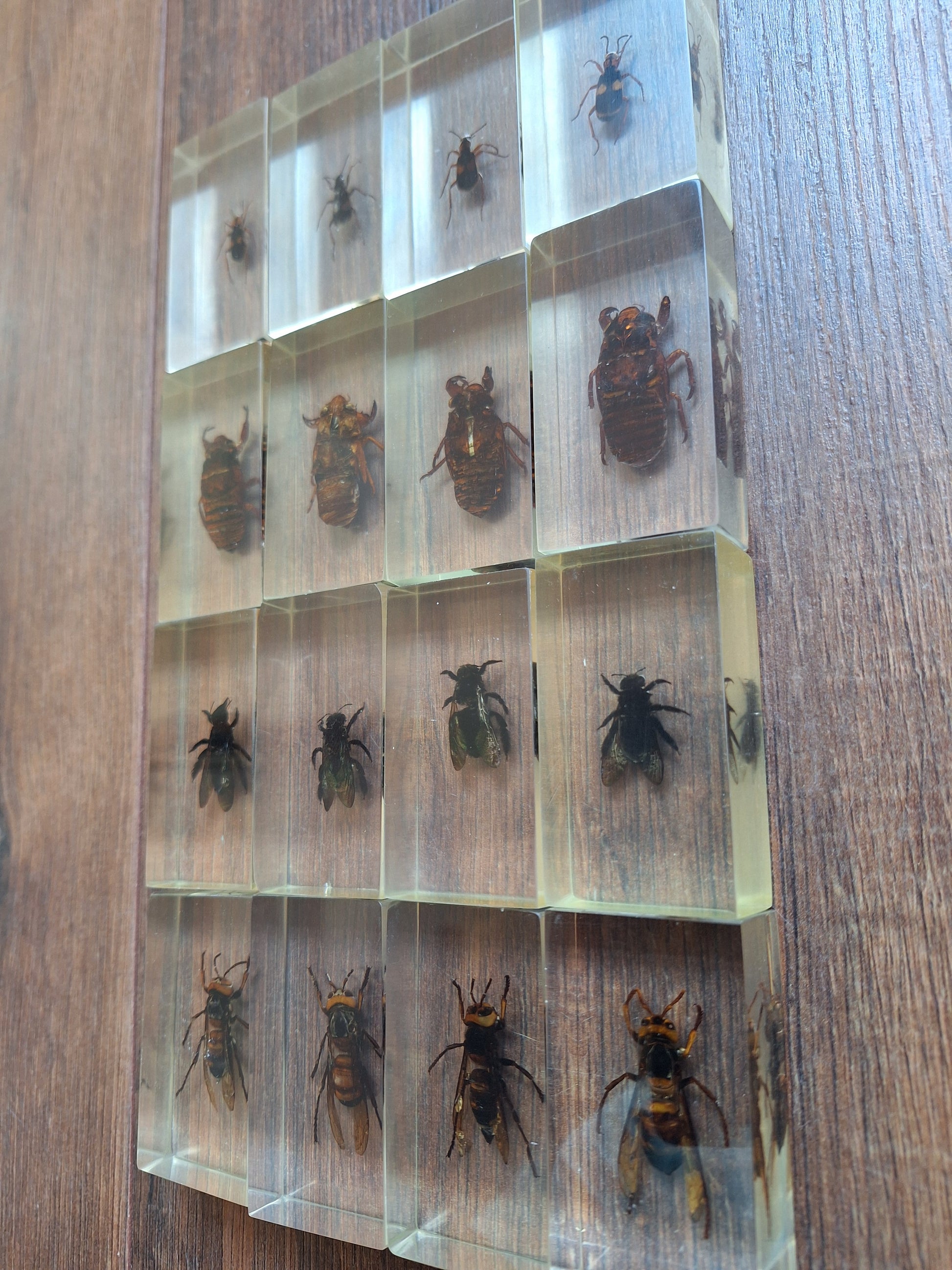 Insects encapsulated in a cube of clear resin. The cubes may have some minor scratches here and there (therefore the price is a bit lower than normal), but overall in good condition. A nice addition to your cabinet of curiosities.