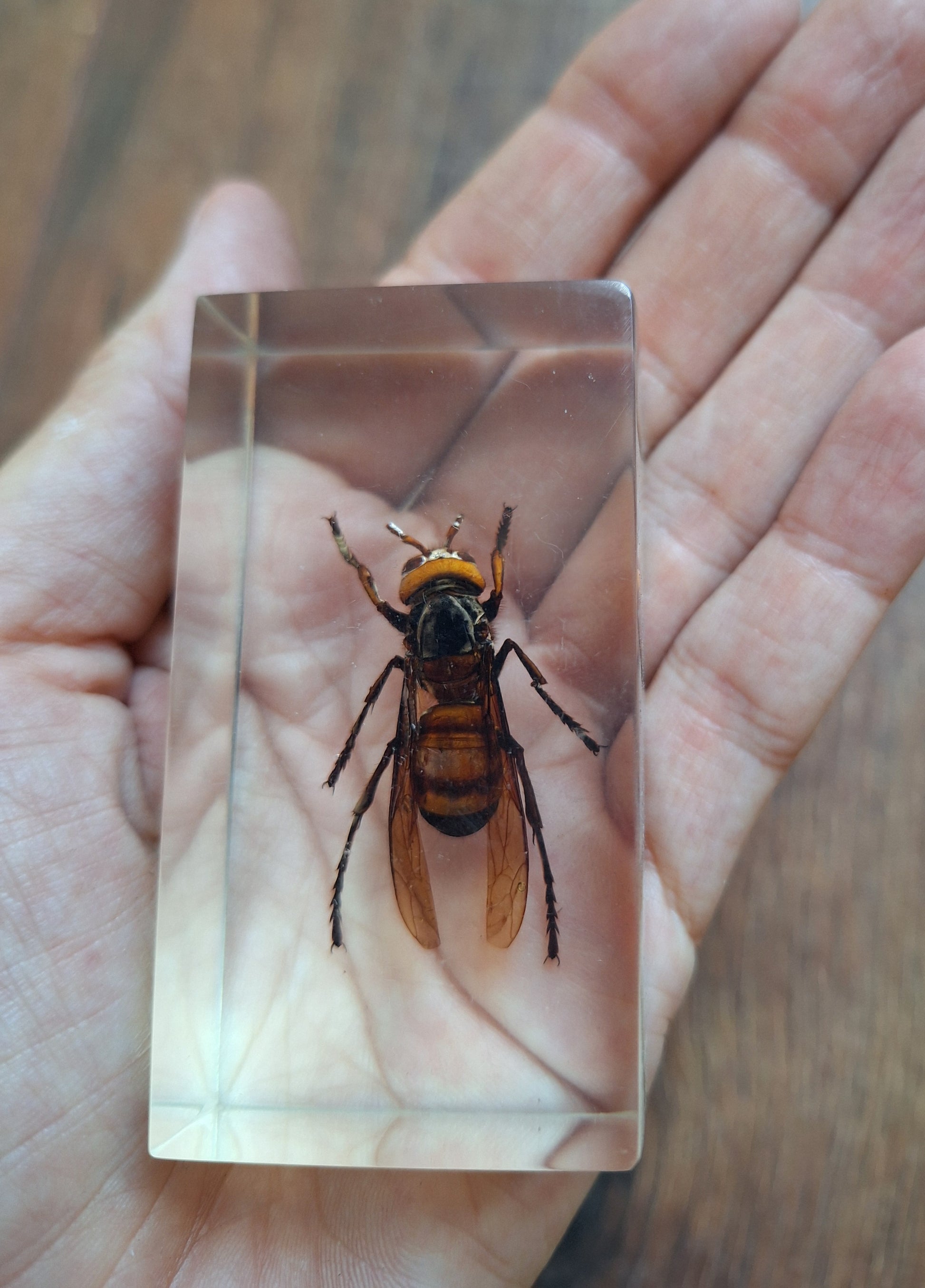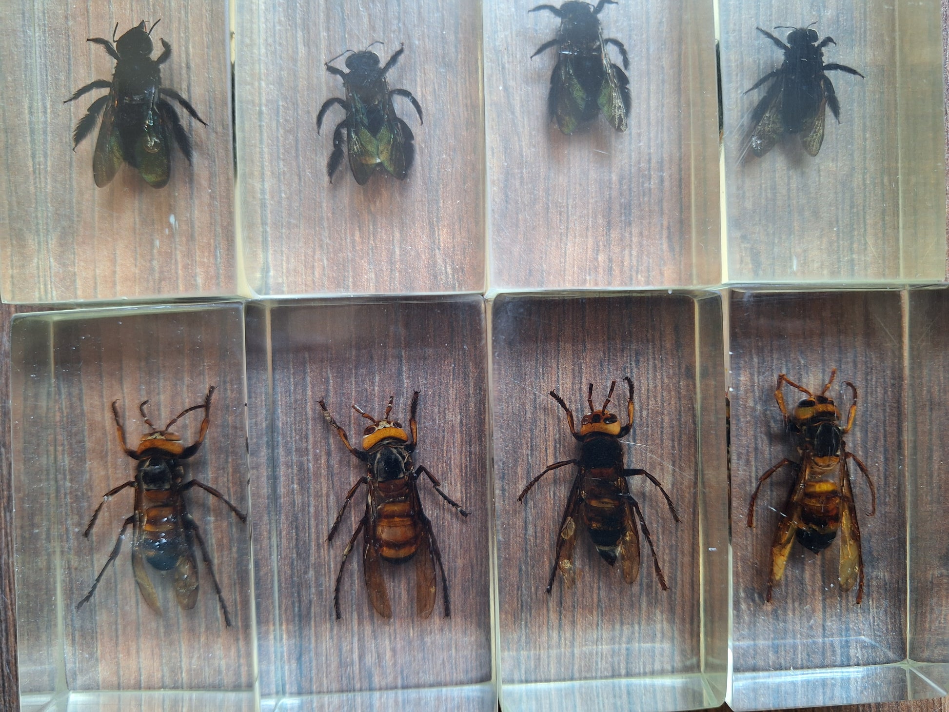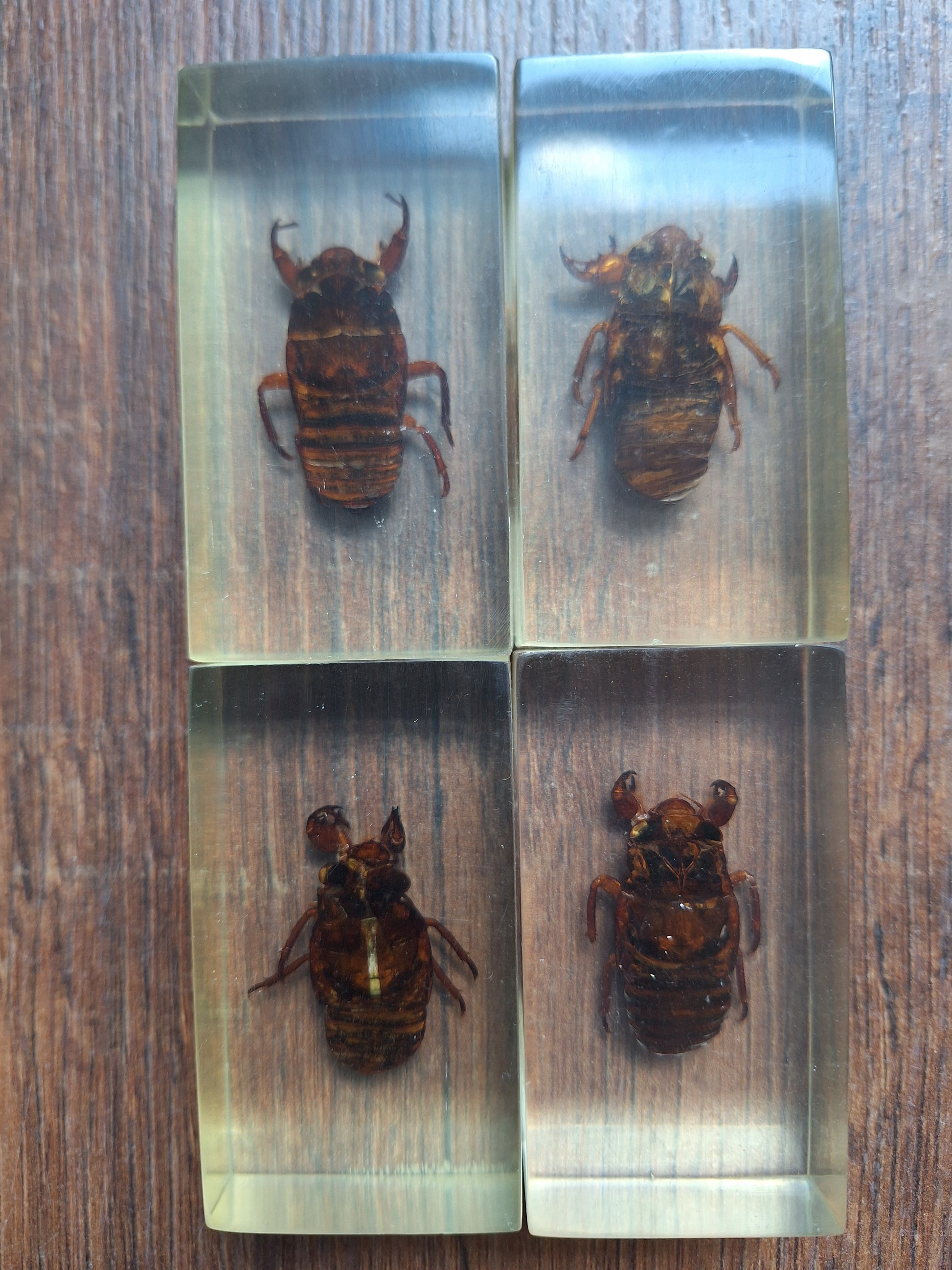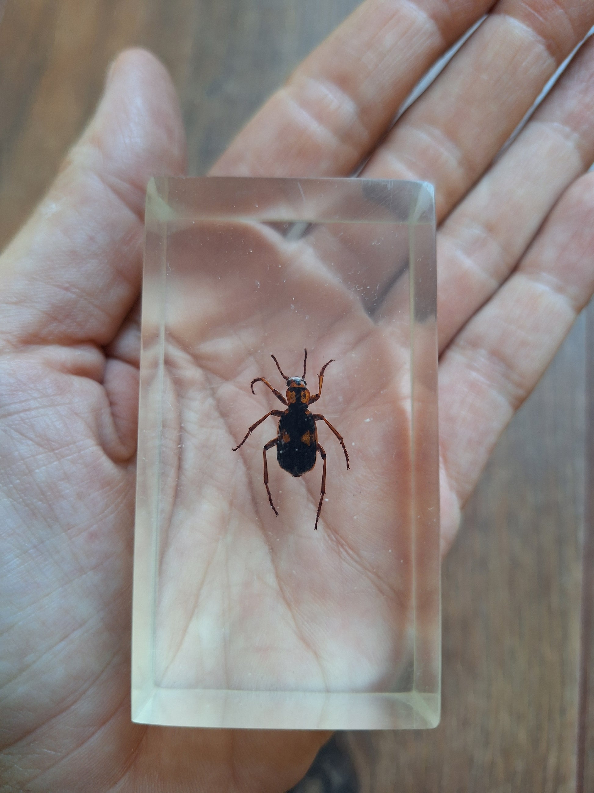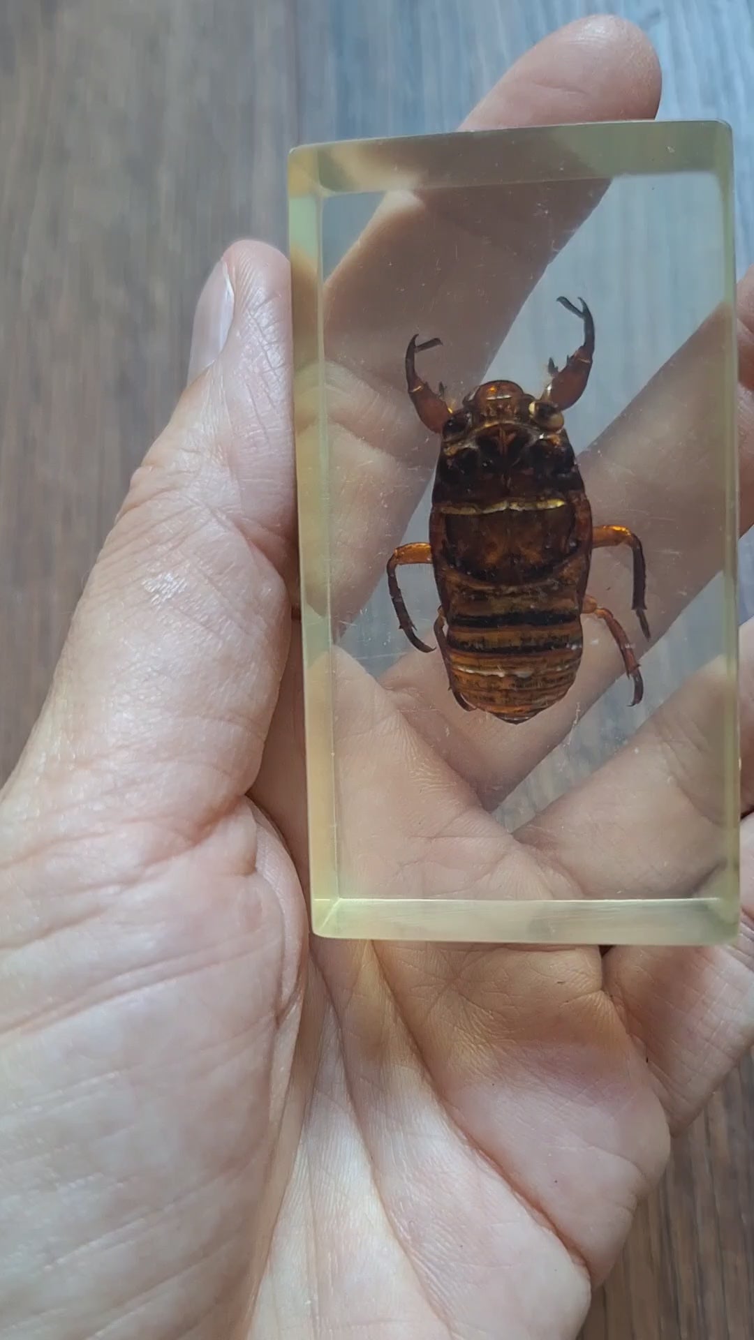 Insects encapsulated in a cube of clear resin. The cubes may have some minor scratches here and there (therefore the price is a bit lower than normal), but overall in good condition. A nice addition to your cabinet of curiosities.