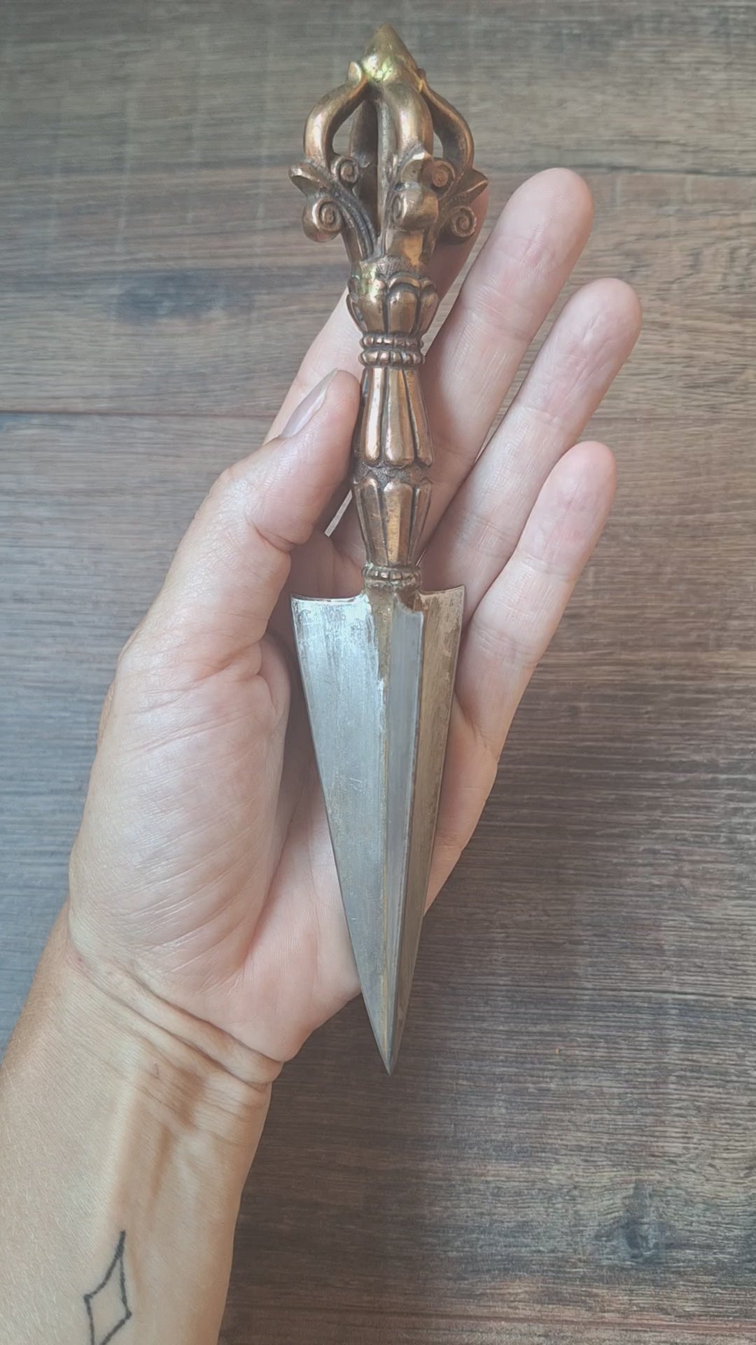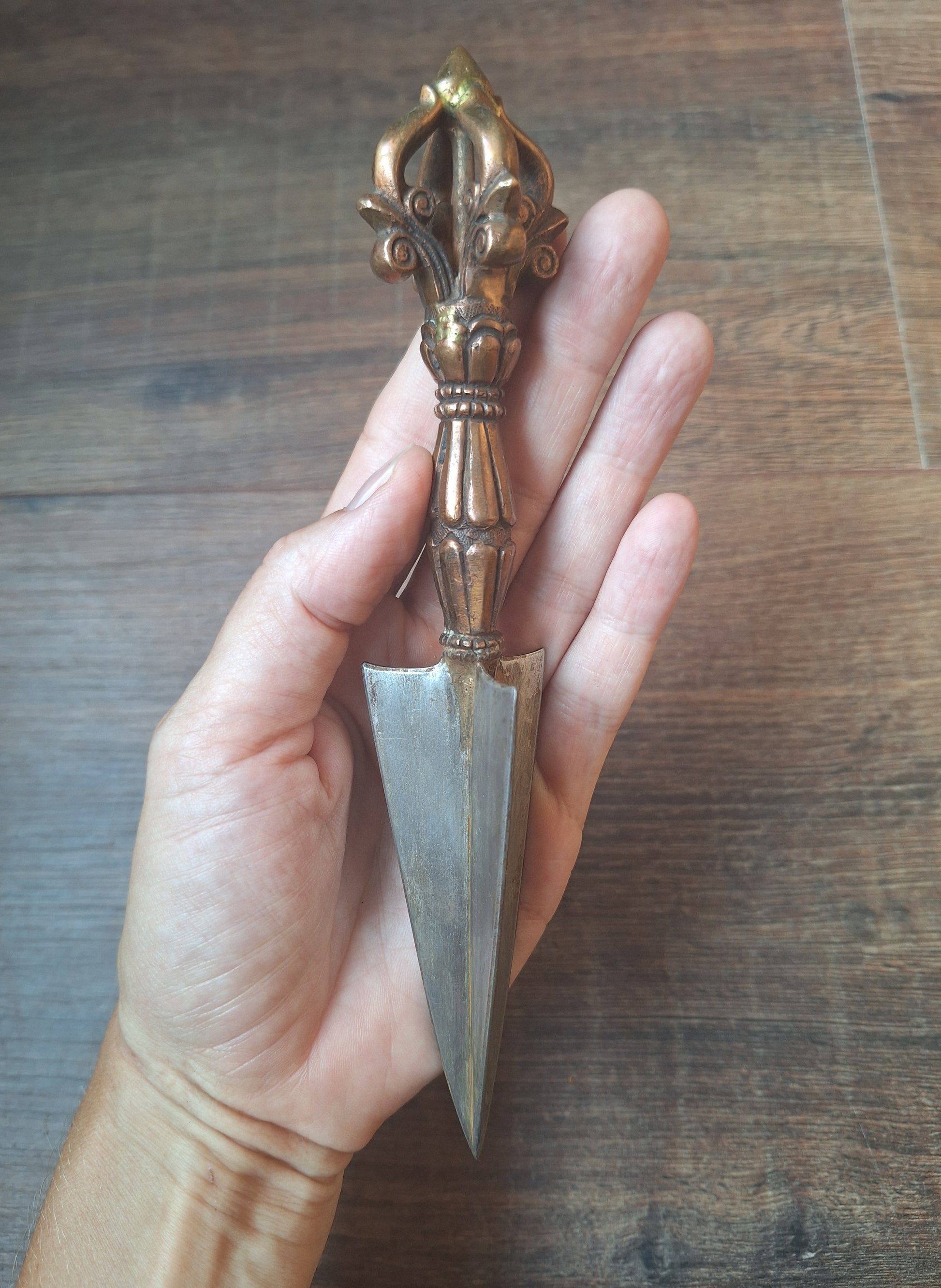 This phurba has a length of 20 centimeters and weighs 188 grams. Only one available.
