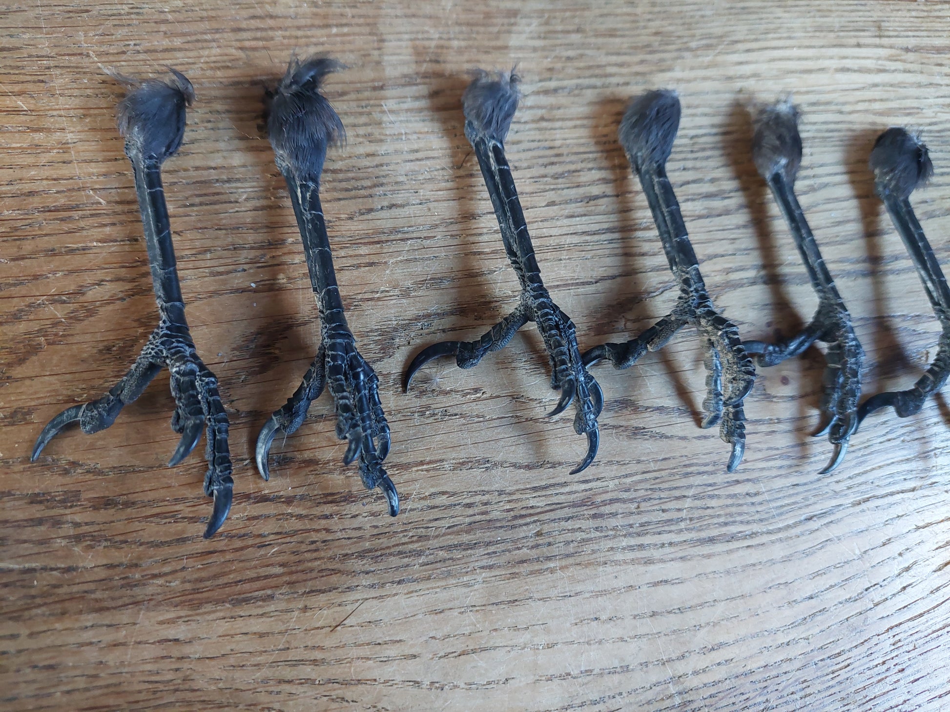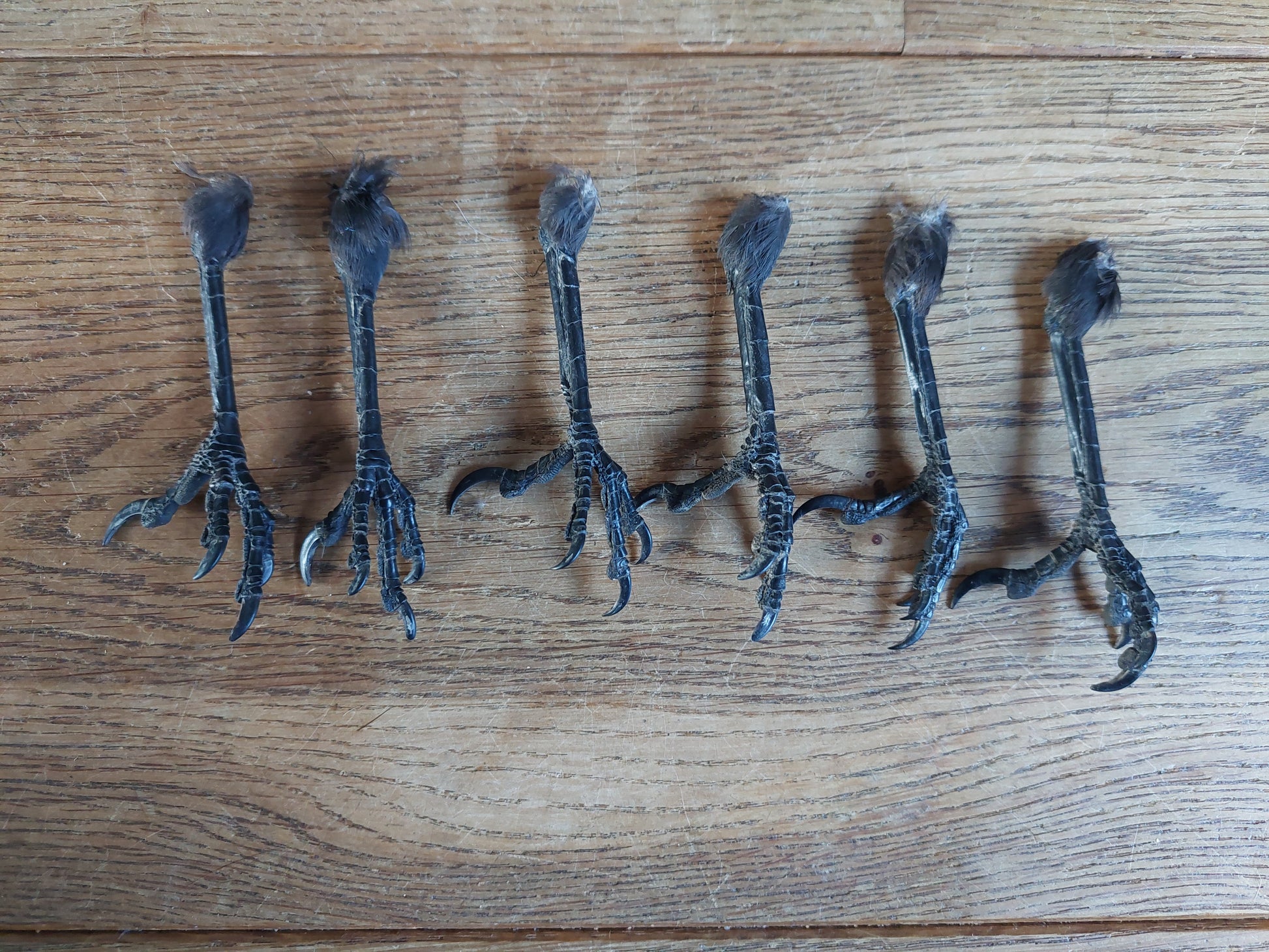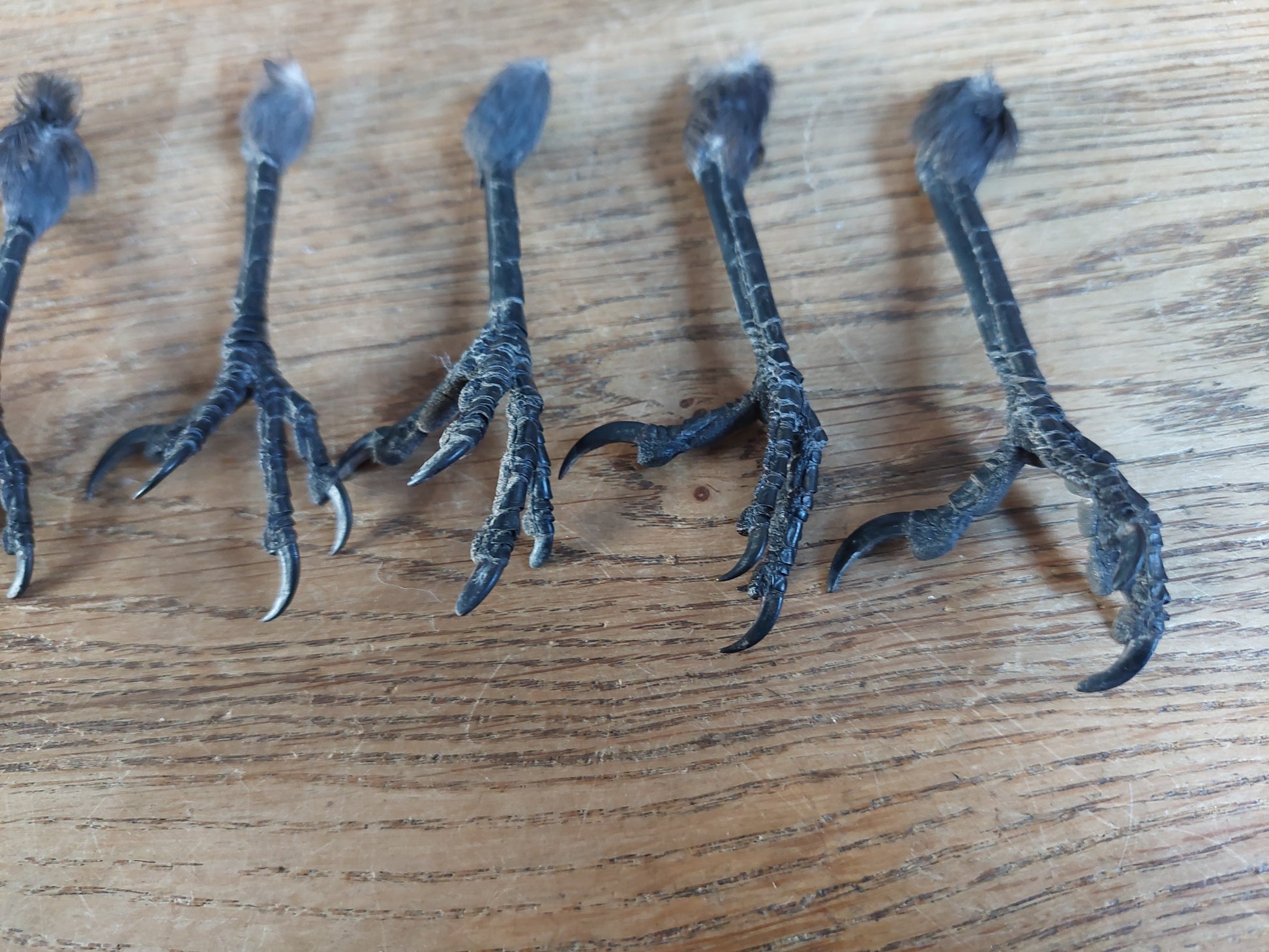 Claws from dutch jackdaws, dried and prepared in 'claw'-shape.