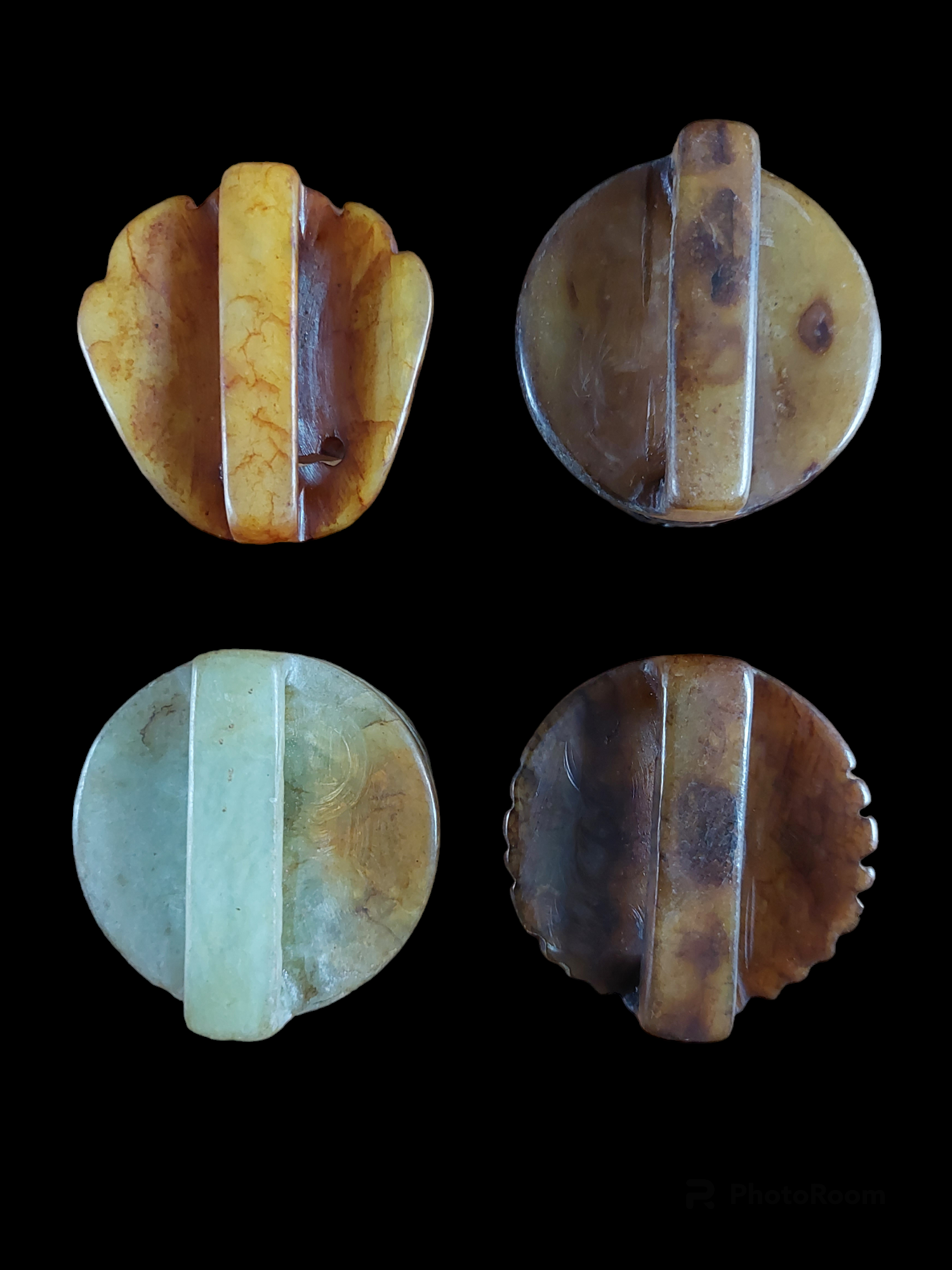Very nice jade carvings, made into belt buckles. From vintage origin, but in very good condition.