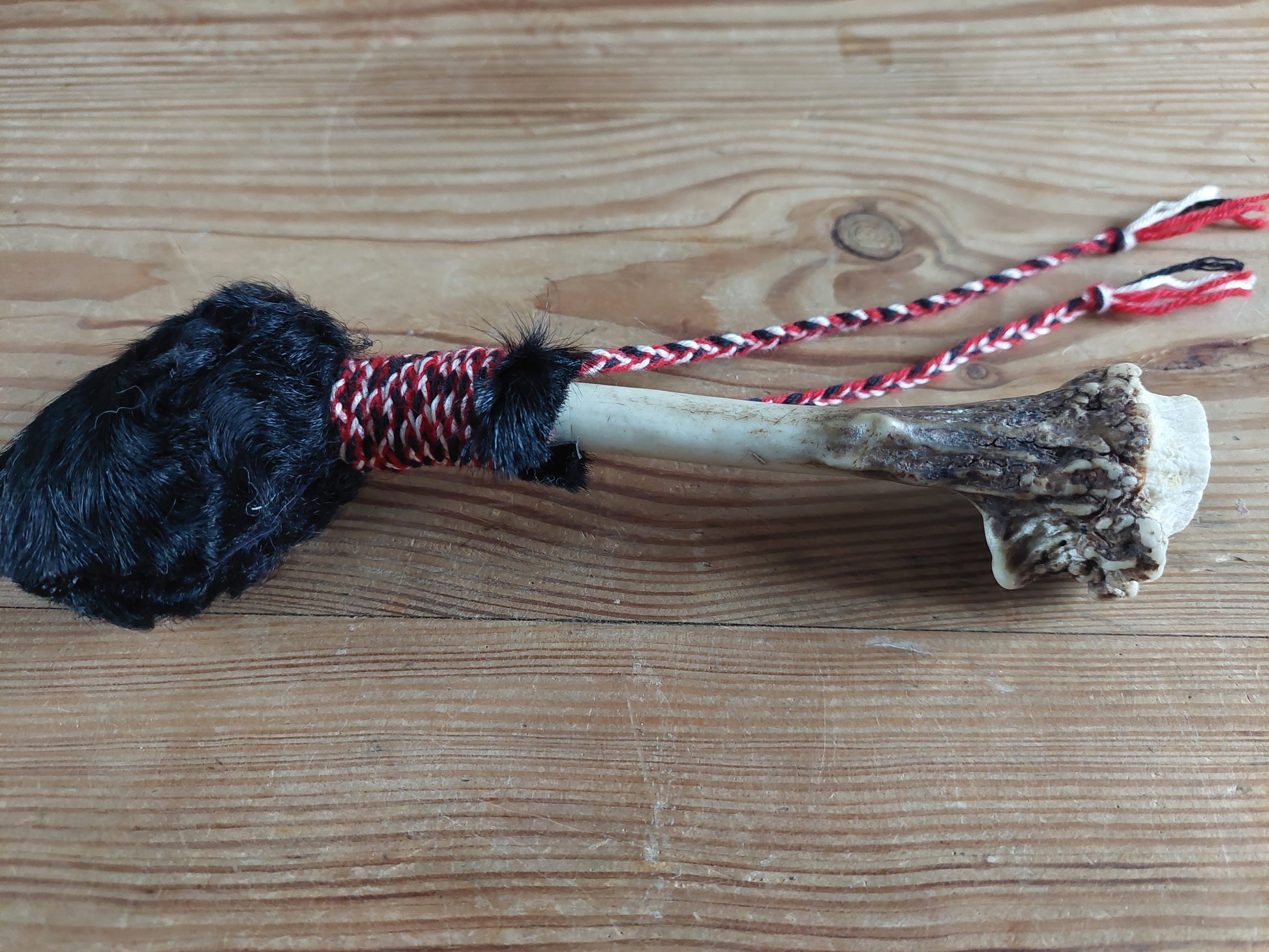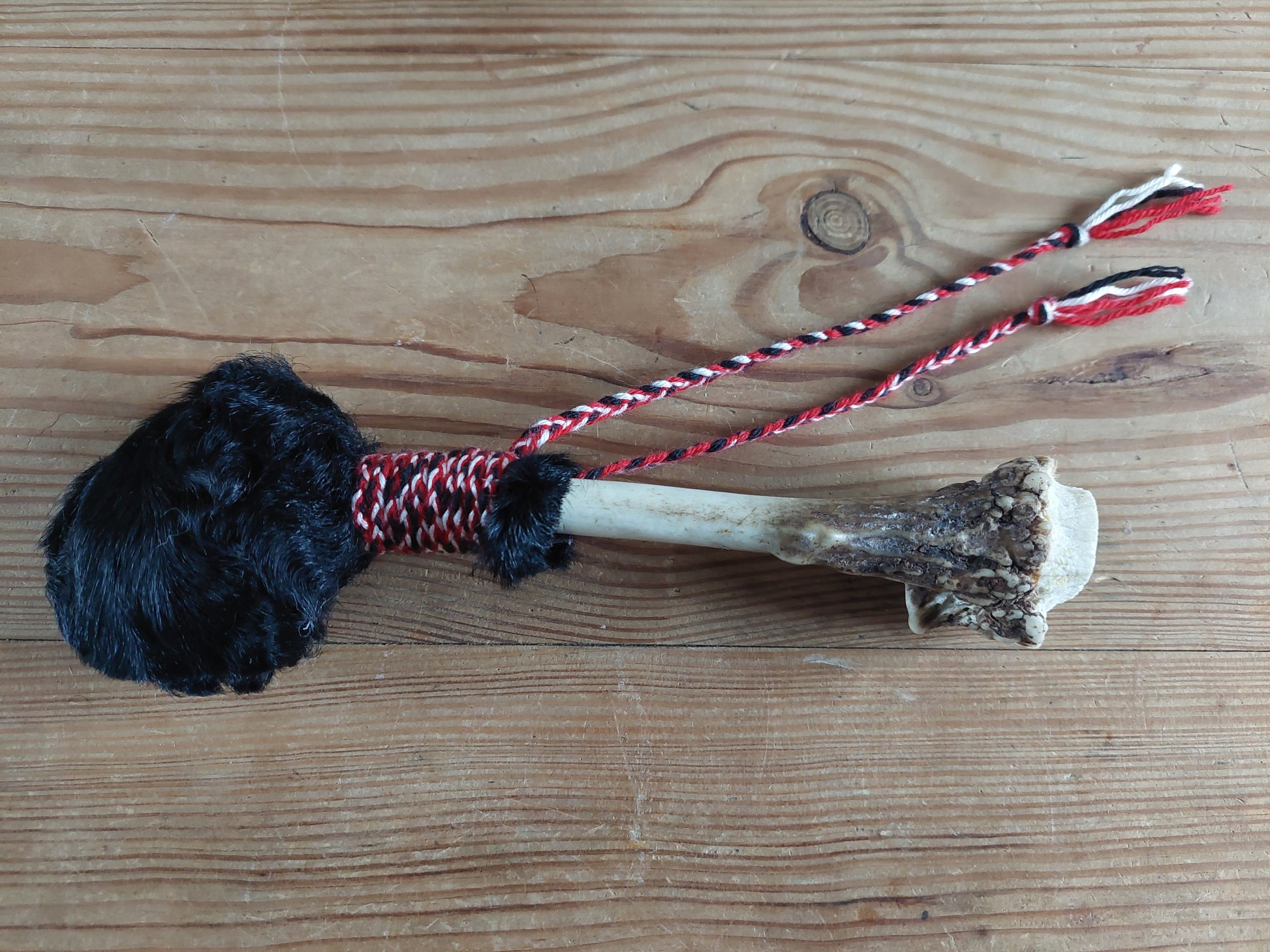 The rattle is constructed with an antler from a dutch fallow deer as handle.