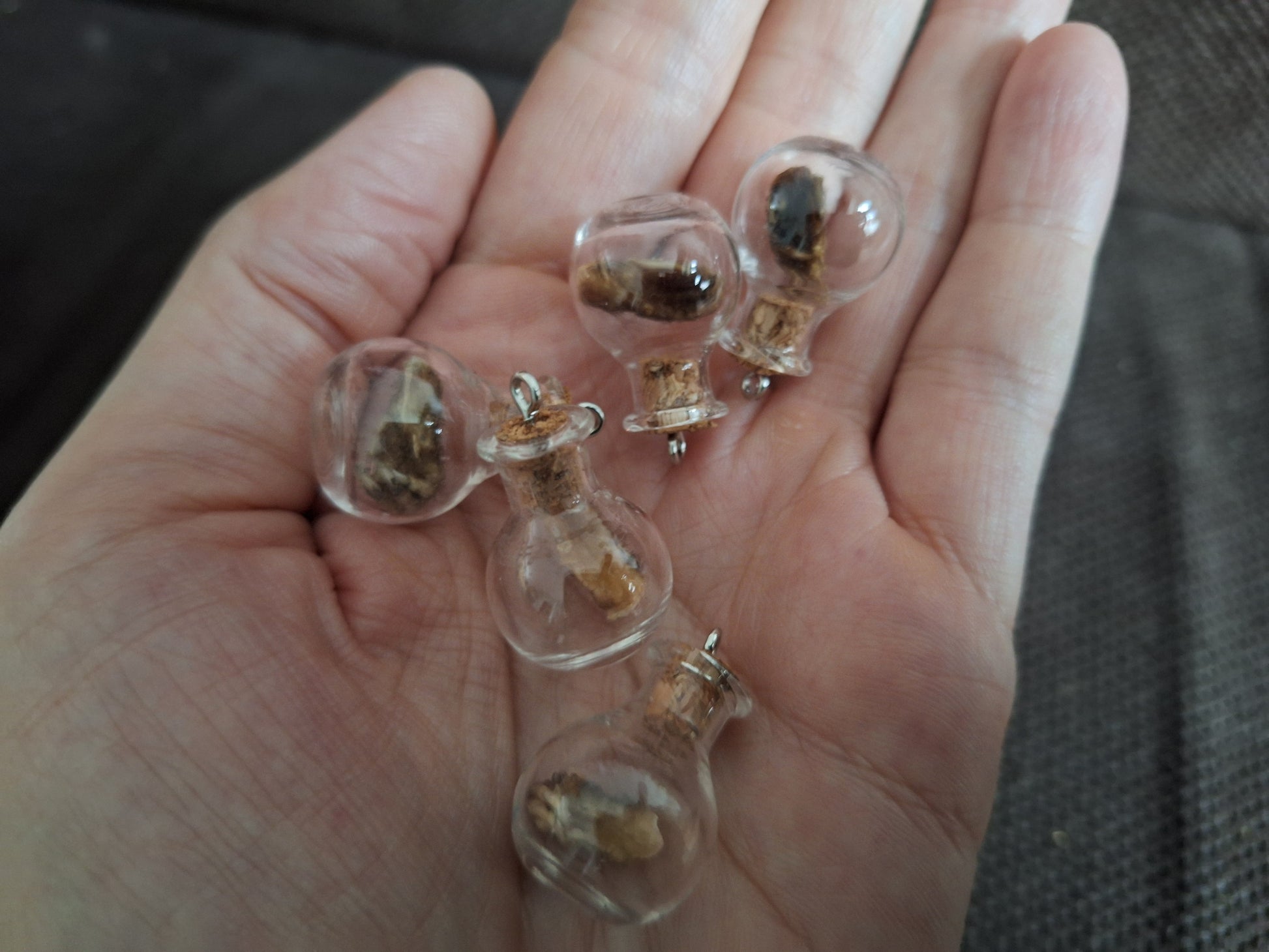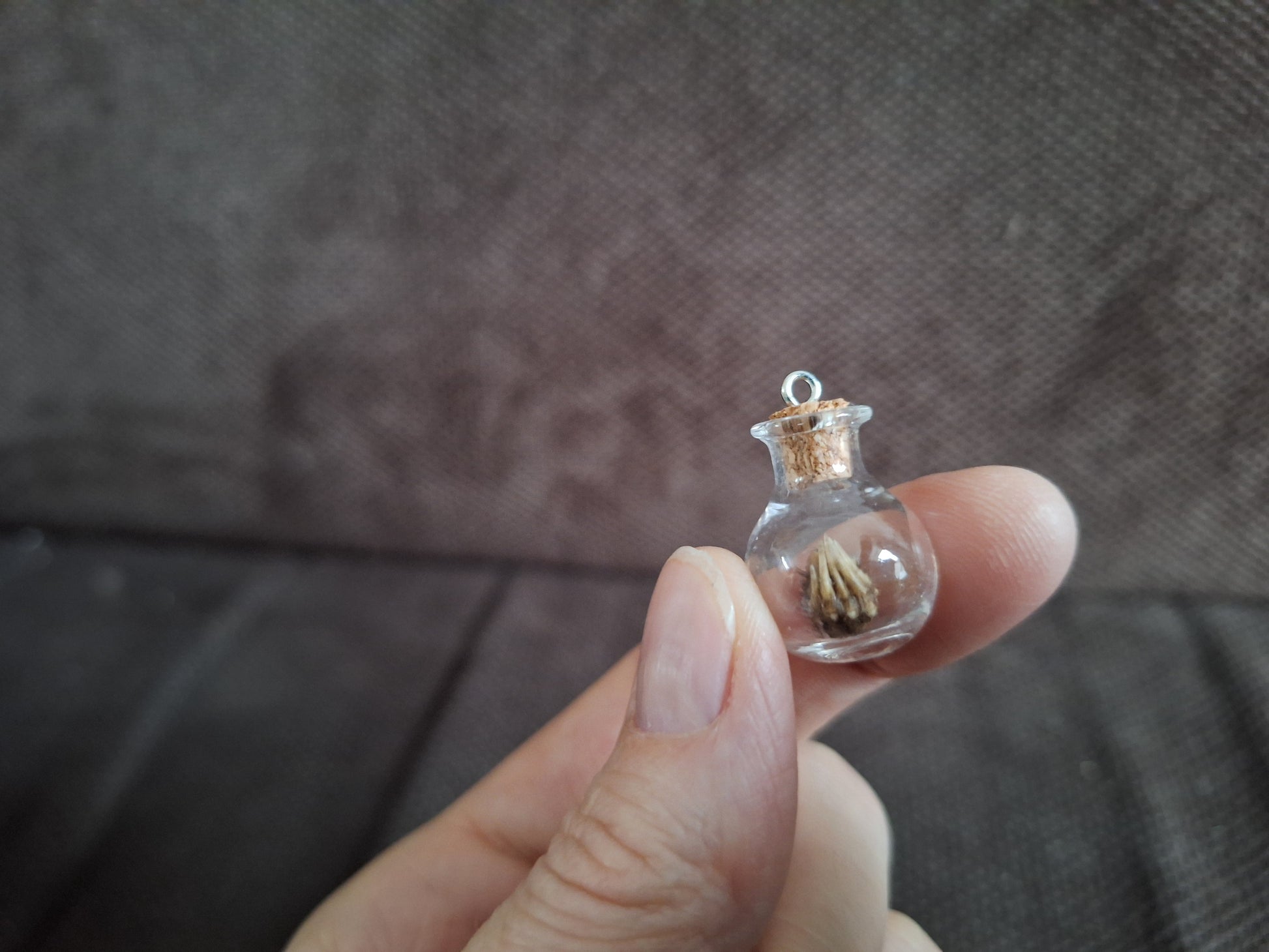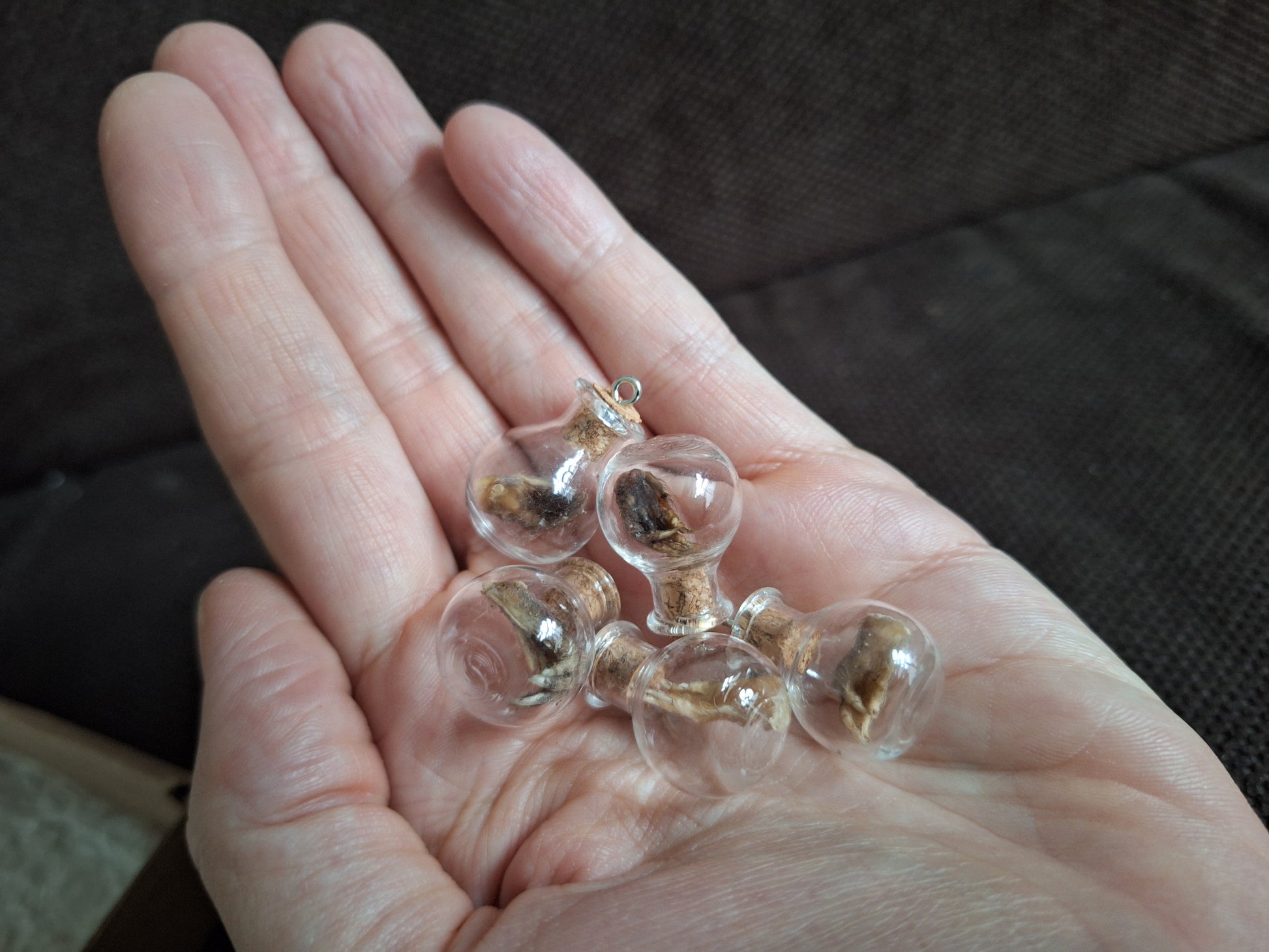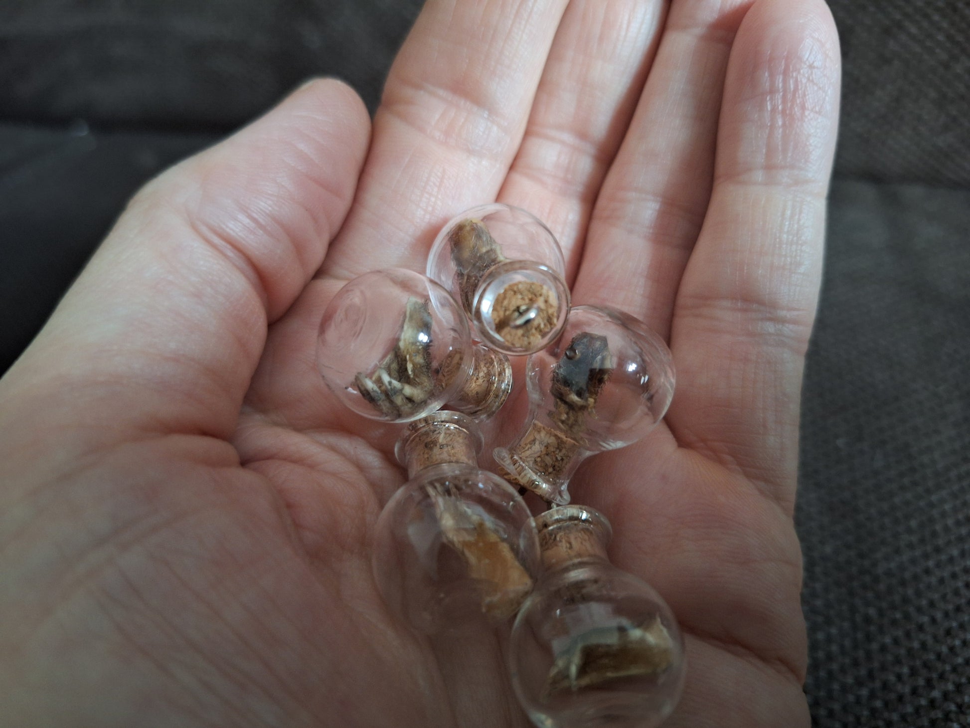 Miniature glass bottle with a dried paw from a mole inside.
