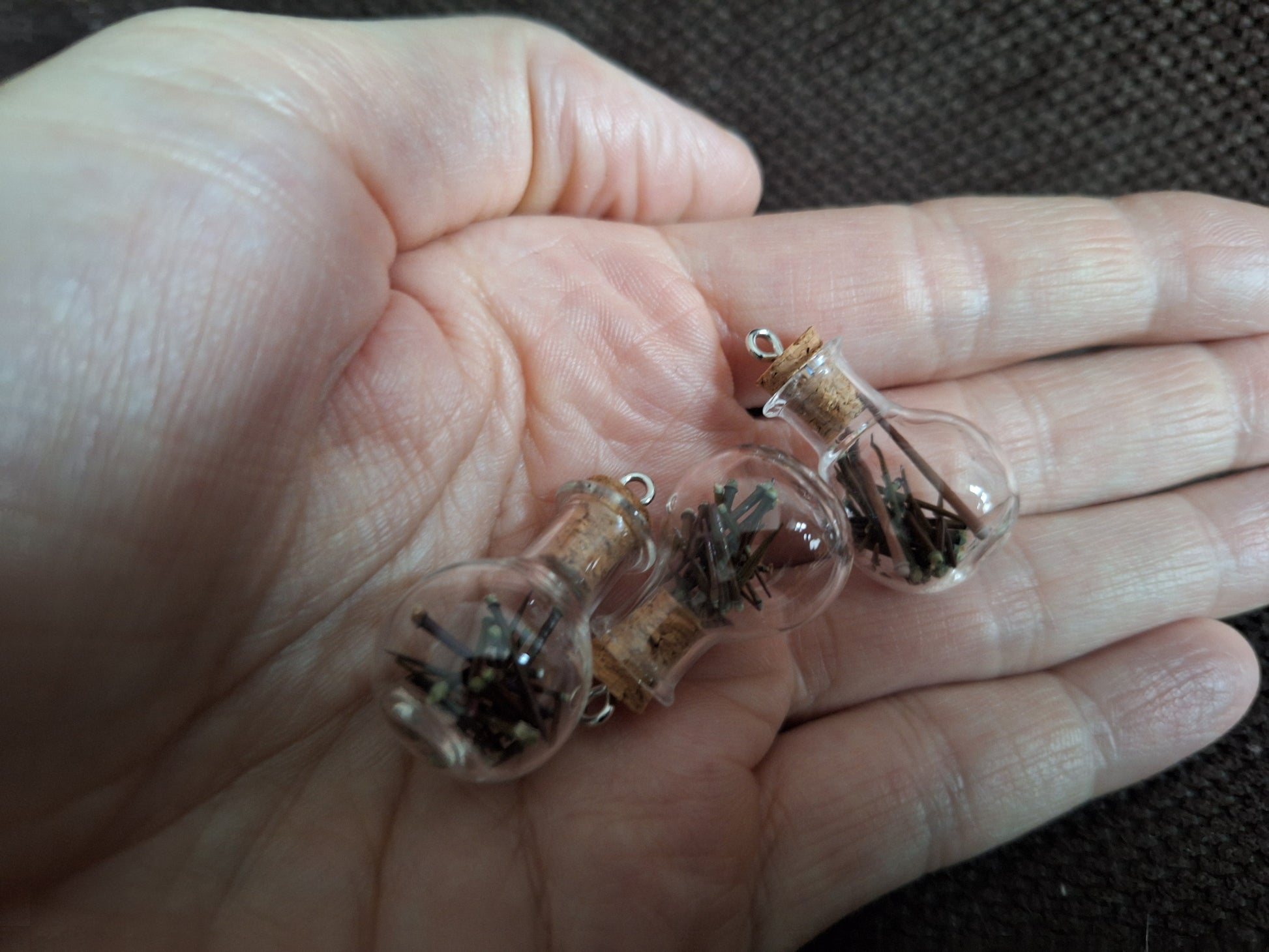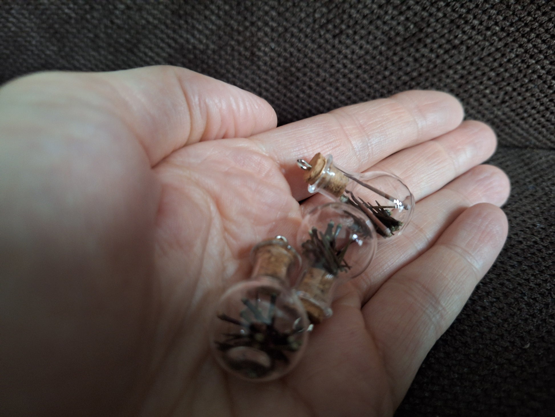 A little eyelet has been screwed into the cork, so they can easily be hung on a cord to be used as a necklace for example.