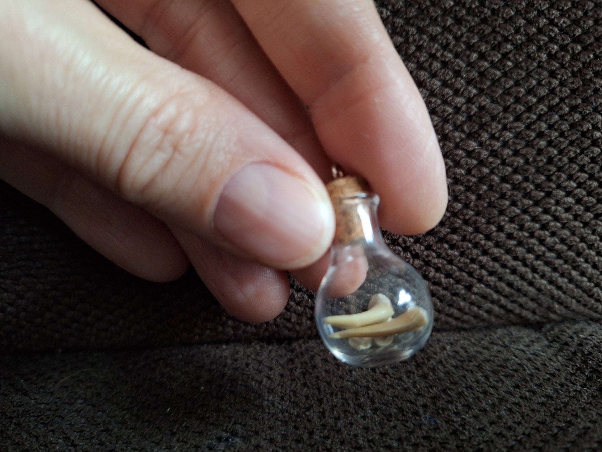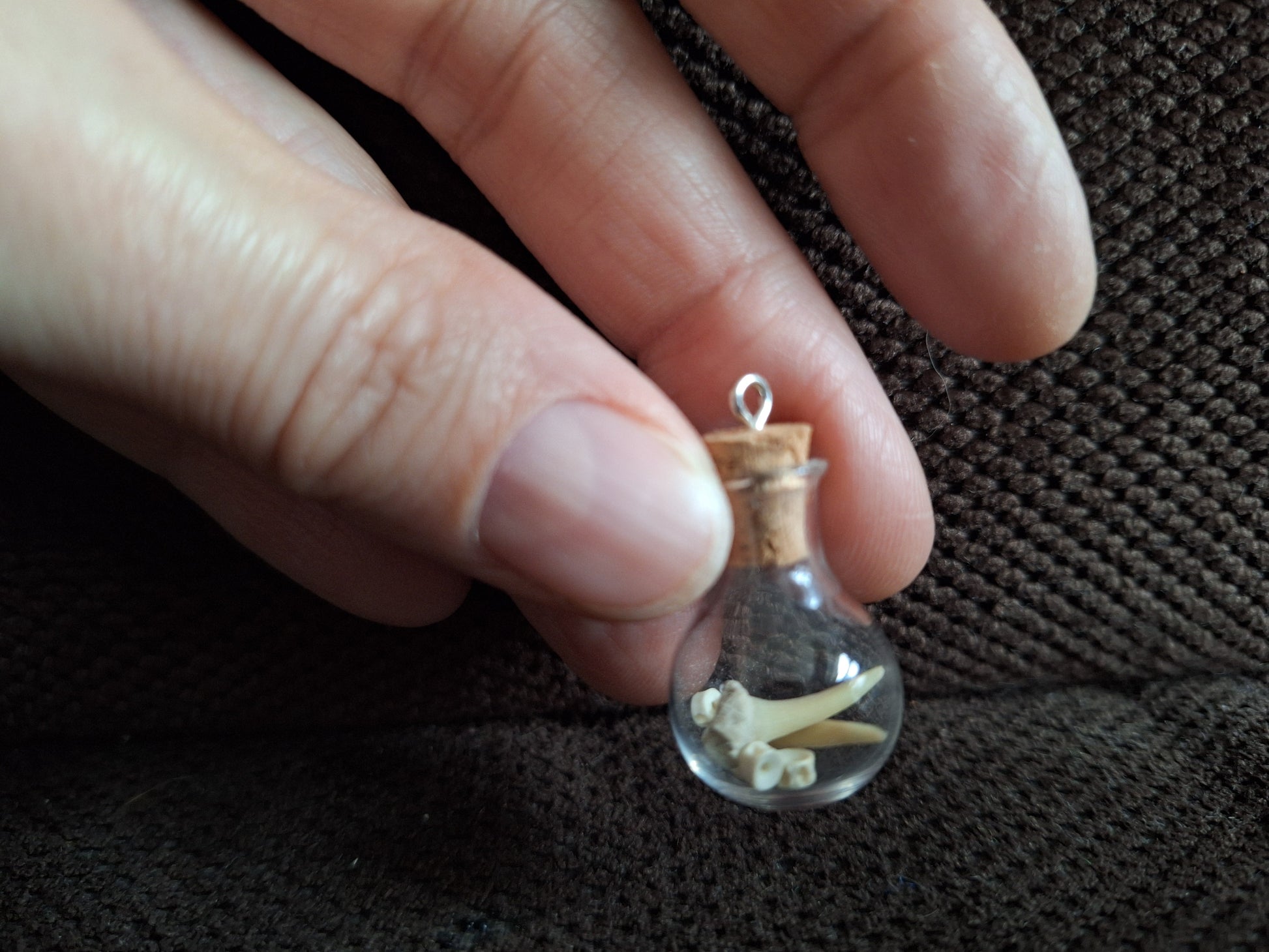 A little eyelet has already been added, so this bottle is ready to be hung on a simple cord or necklace to be used as a personal amulet, connecting you with the spirit of Shark. Or of course to be used further in all your personal ritual or crafting purposes.