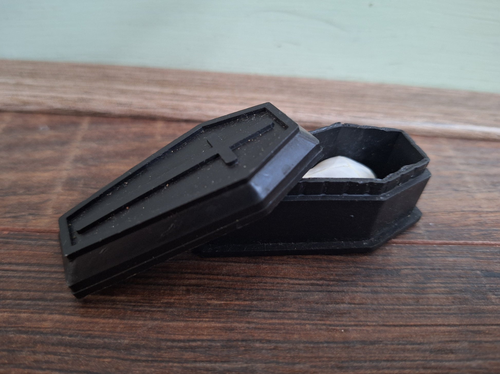 Sizes; the coffin is approximately 5 centimeters long, 2,5 centimeters wide and 2 centimeters high.