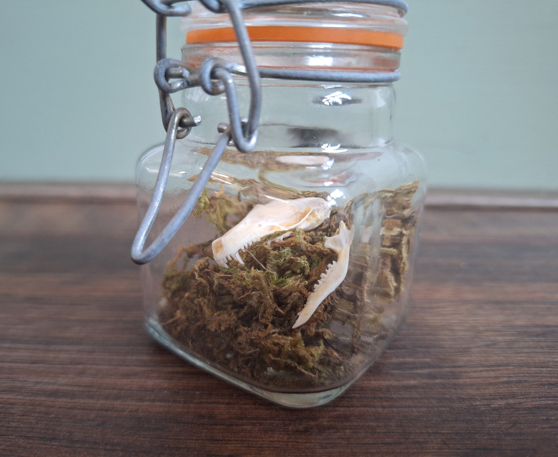 Mole skull in glass jar