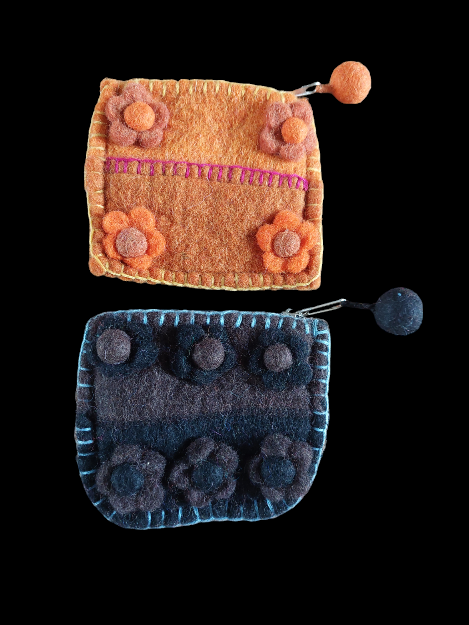 Nice pouches made from 100% yak wool felt. These pouches close with a zipper and can be used both as a wallet or of course for safekeeping your amulets, jewelry or magical items when you don't wear or use them.