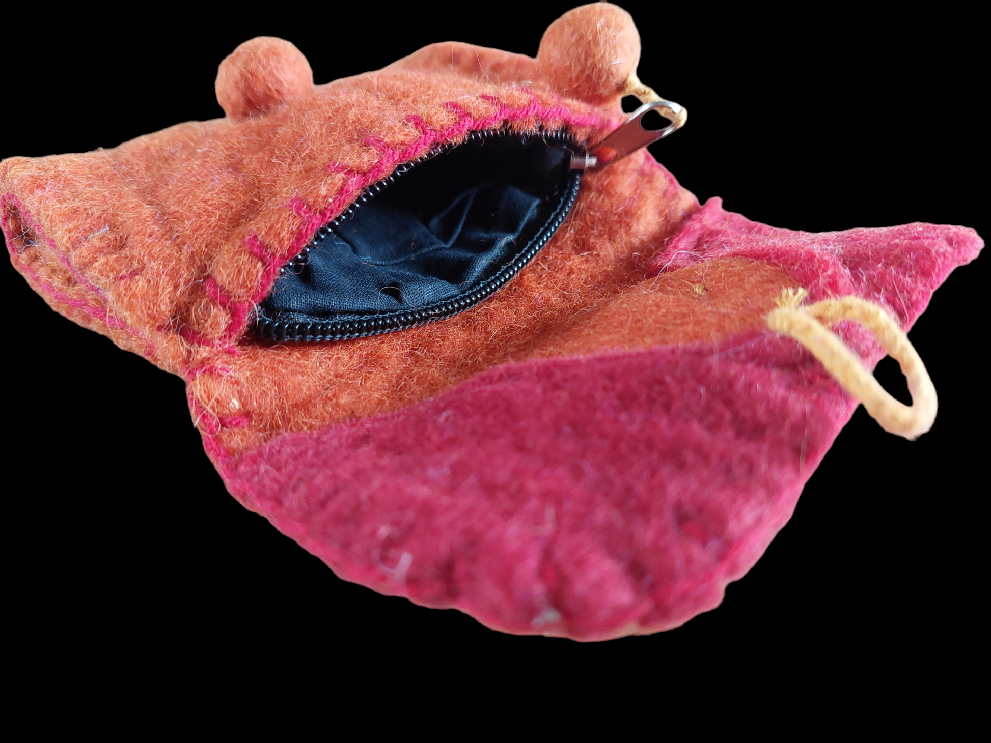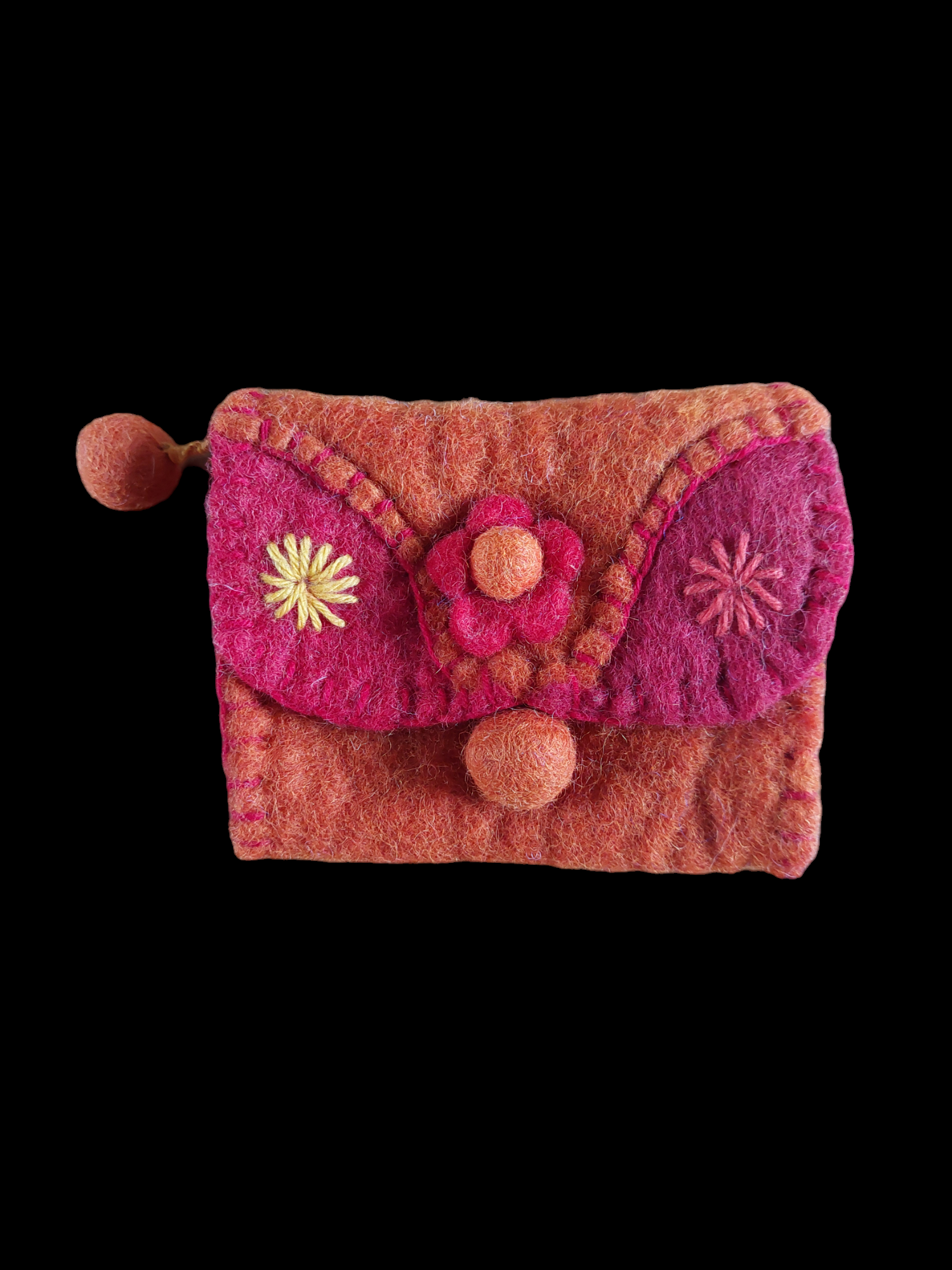 Nice wallet made from 100% yak wool felt in orange and red colors, handmade in Nepal