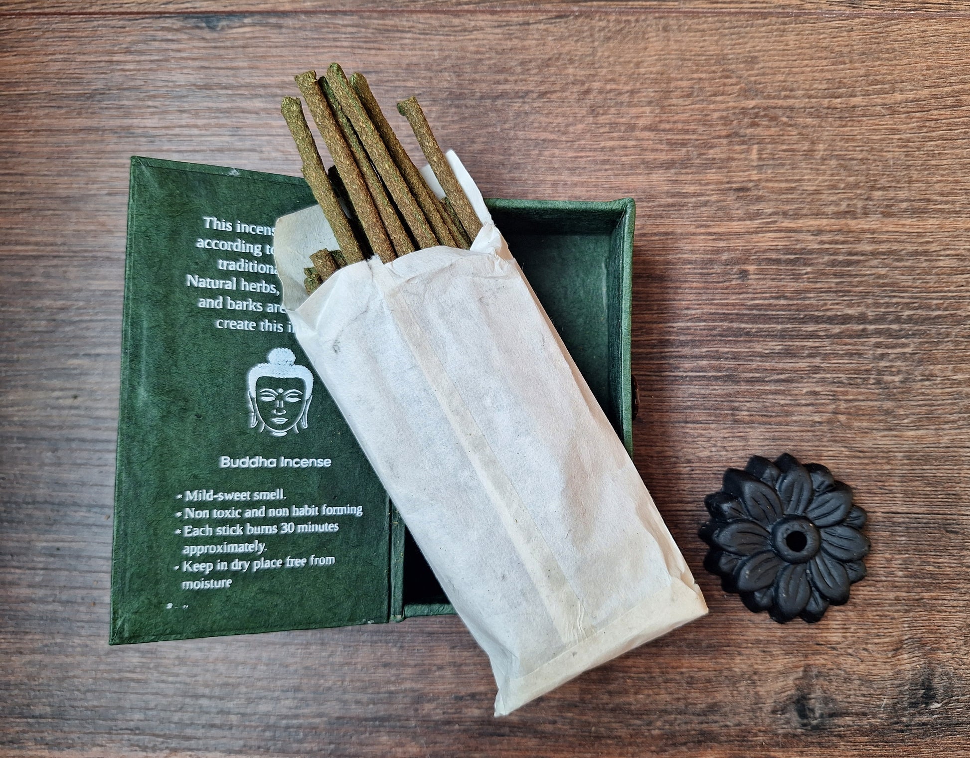 Handmade incense from Nepal. Made with all natural ingredients, without chemical constituents. Safe for the environment and for inhalation. This incense has been made in a traditional Buddhist way (hence the adjective 'Tibetan' in the name).