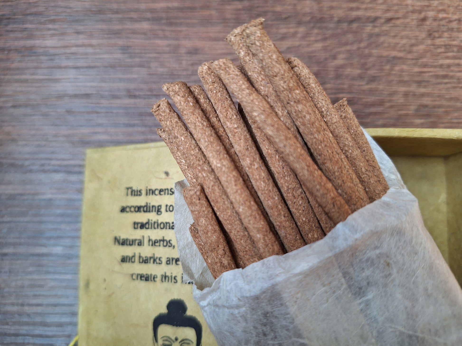 Handmade incense from Nepal. Made with all natural ingredients, without chemical constituents. Safe for the environment and for inhalation. This incense has been made in a traditional Buddhist way (hence the adjective 'Tibetan' in the name).