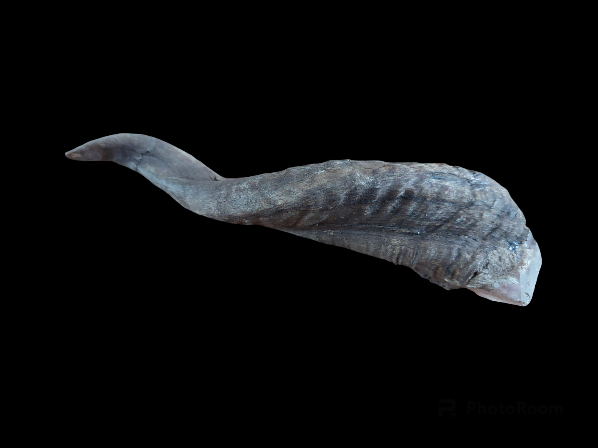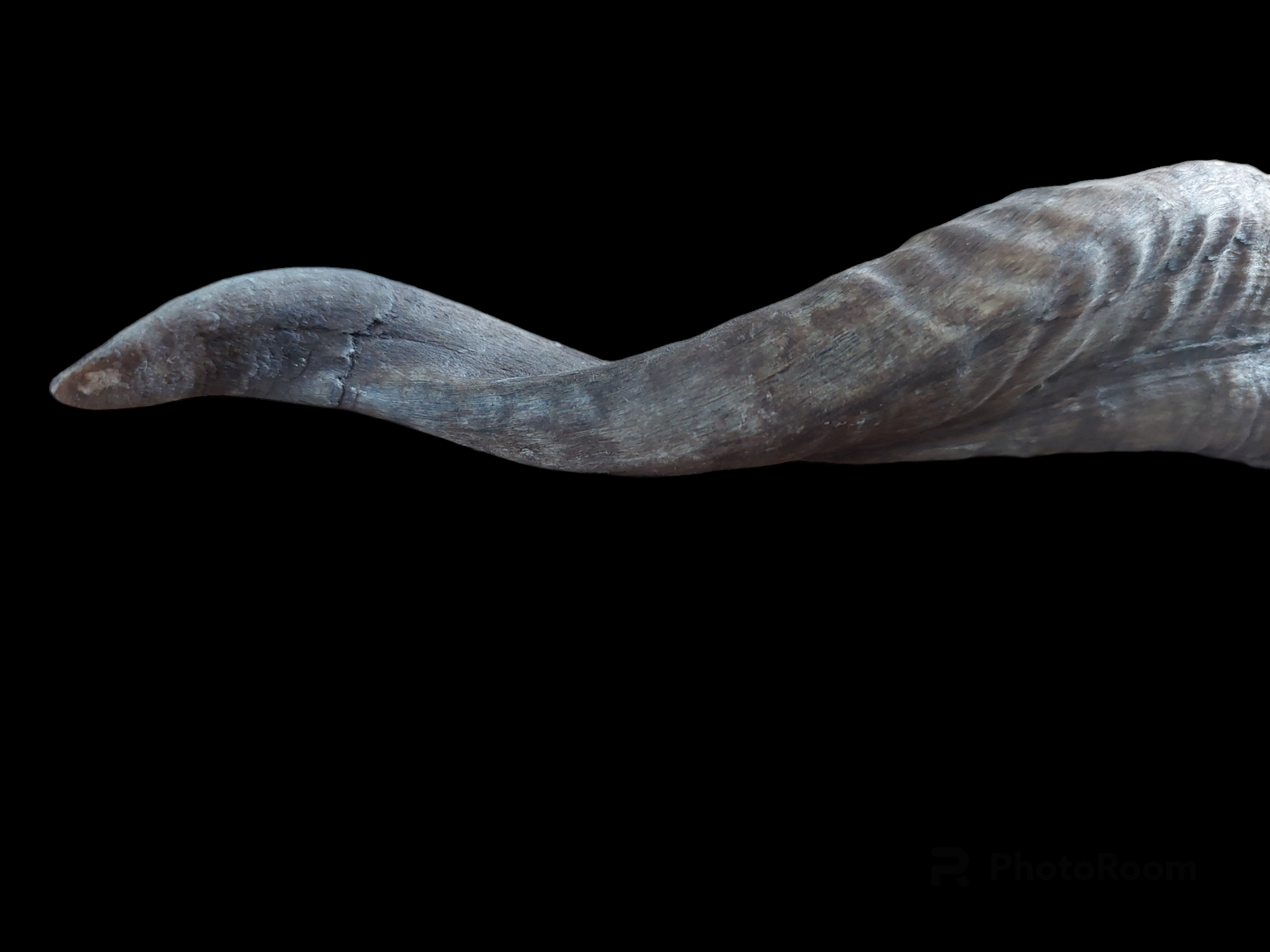 Horns such as these were (and sometimes still are) quite commonly used by shamans in Nepal. They serve mostly quite similar purposes as the three-sided ritual dagger known as phurba or kila. They are used in ritual and healing sessions to expel heavy energies and dark spirits, to transform and direct energies and to give blessings.