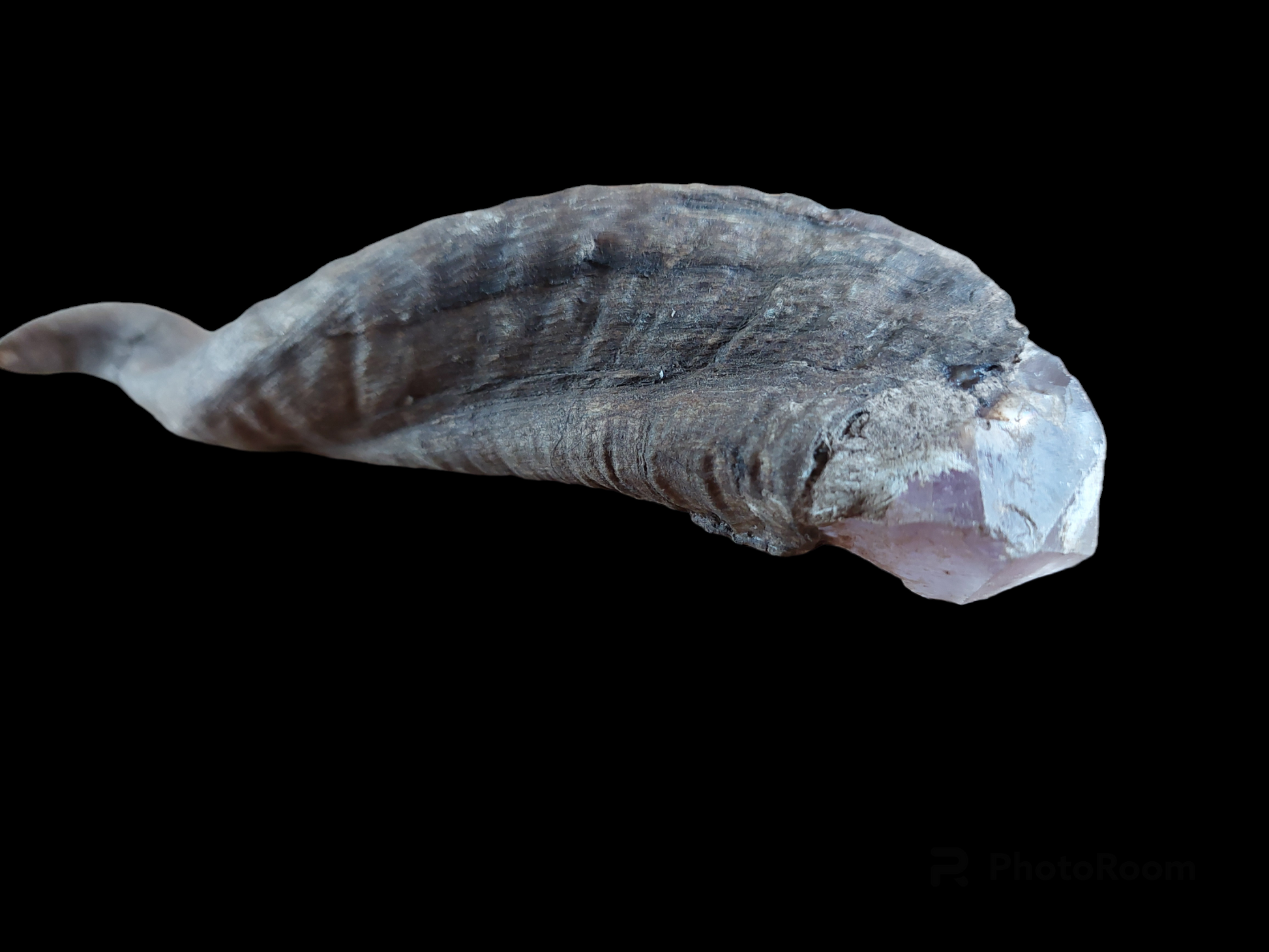 Old sheep horn with an amethyst gemstone attached into it, used as a ritual attribute by a Nepalese shaman.