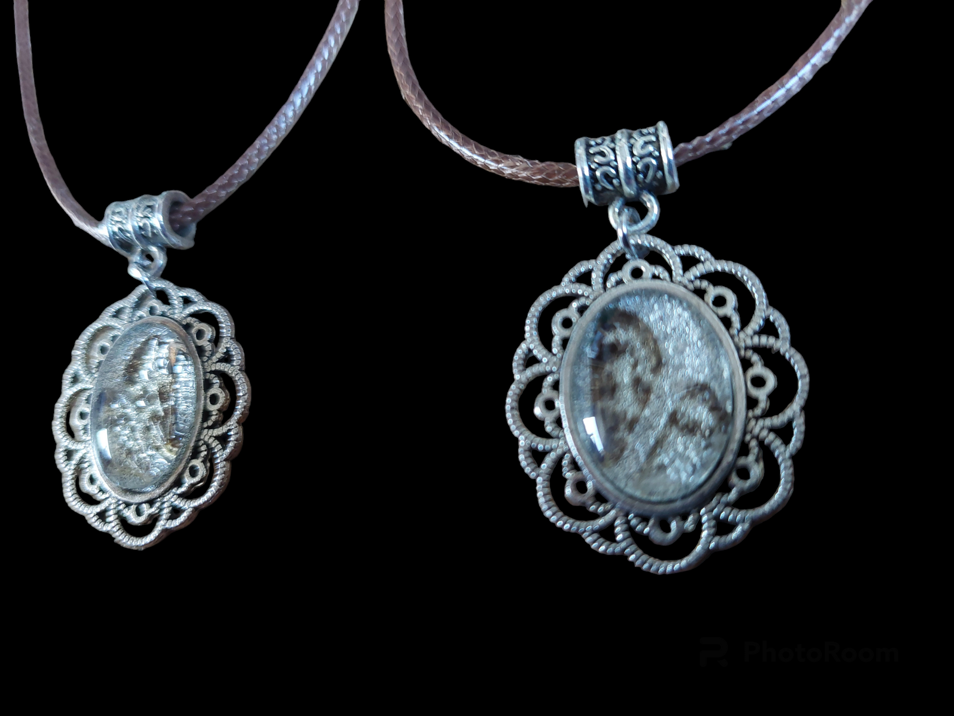 The brown waxcord necklaces are closed with a simple lobster-style jewelry clasp.