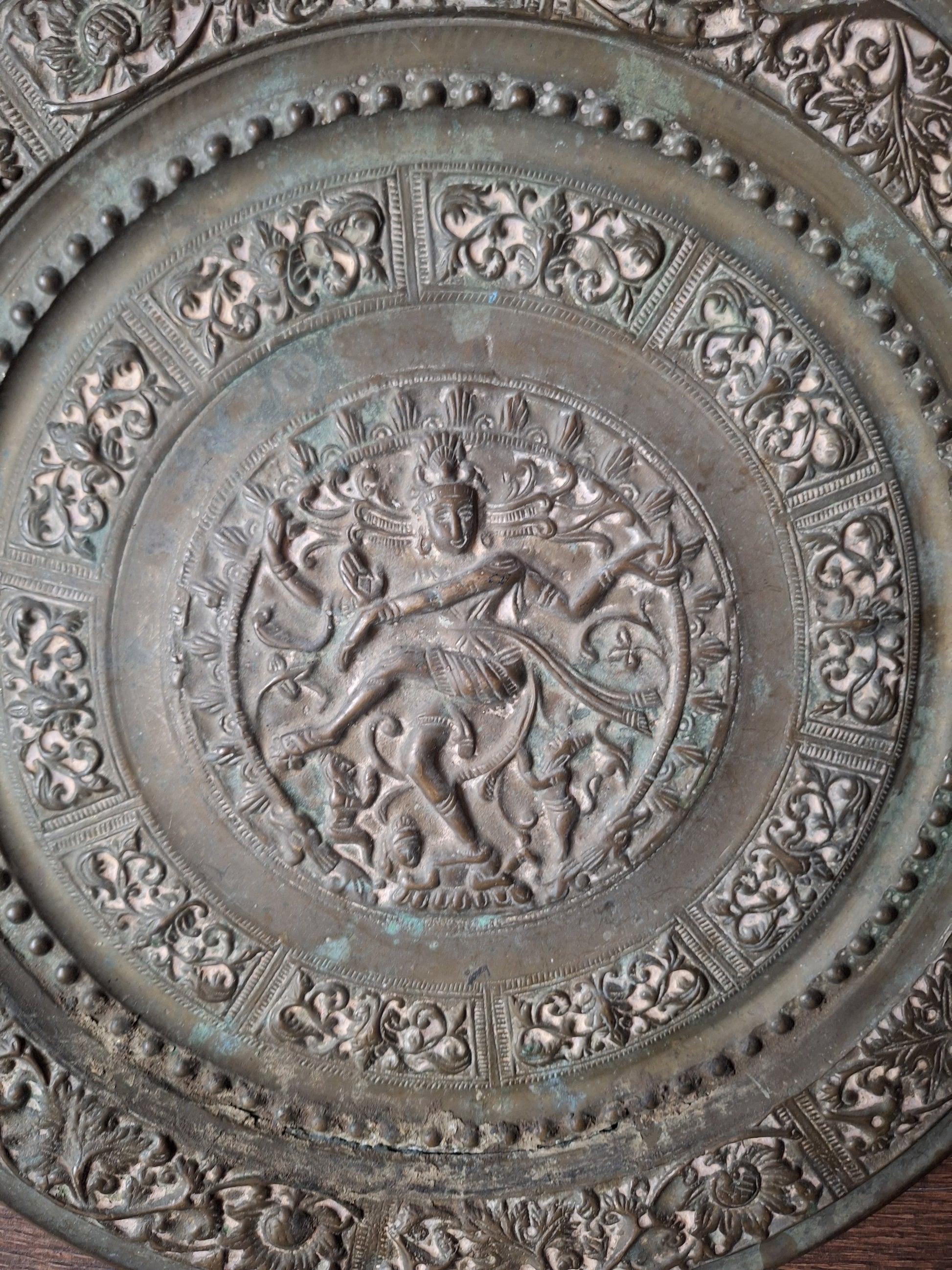 Old copper wallhanger depicting the Hindu deity Shiva in one of his most famous manifestations; Nataraja, the divine cosmic dancer.