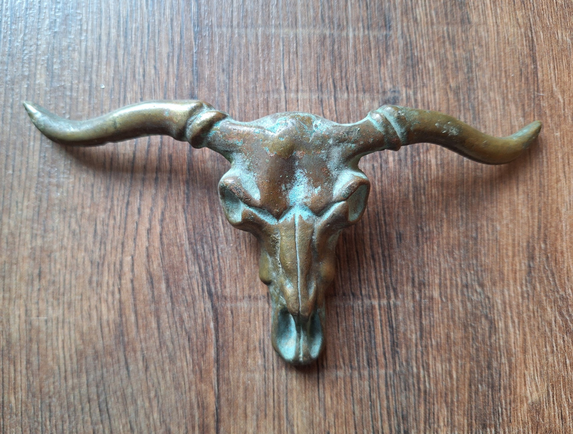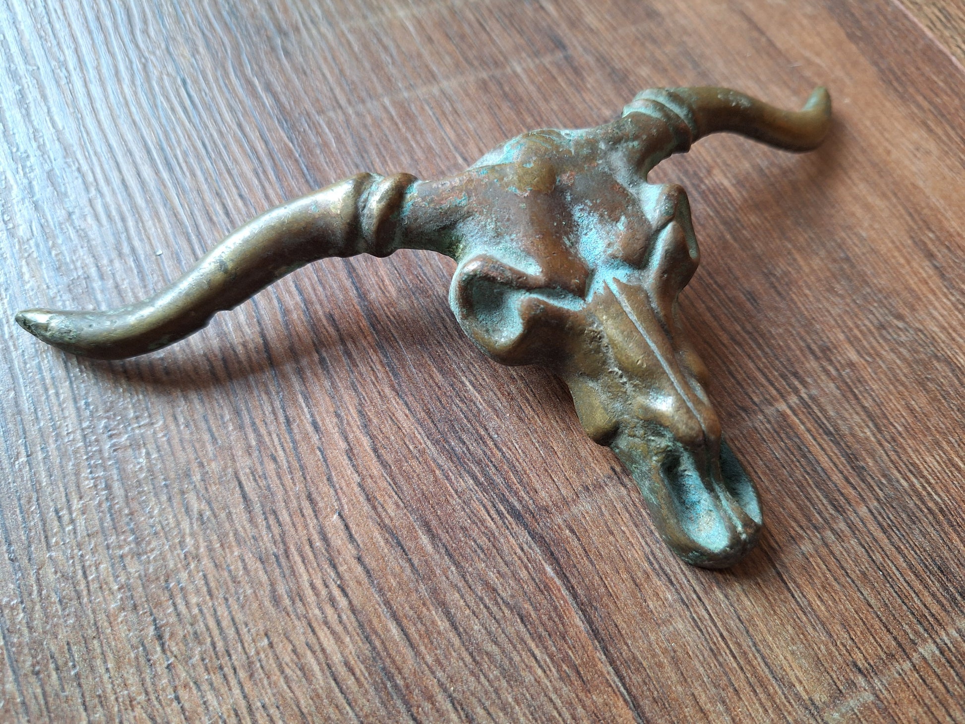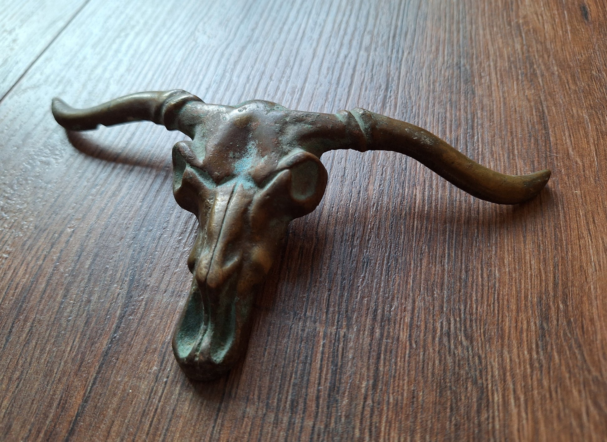 Please note; as can be seen on the pictures, the fixation pin on the backside has gone missing over time, so you will have to be a little creative if you want to turn it into an attachable buckle again. But of course this bull head can also be used for example as an altar piece or as an item for your personal crafting purposes.