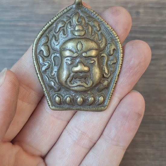 This bronze pendant comes from Nepal. It has been made of bronze, which has gained a beautiful patina of ageing. This pendant has lived a long life already, but is overall in very good condition.