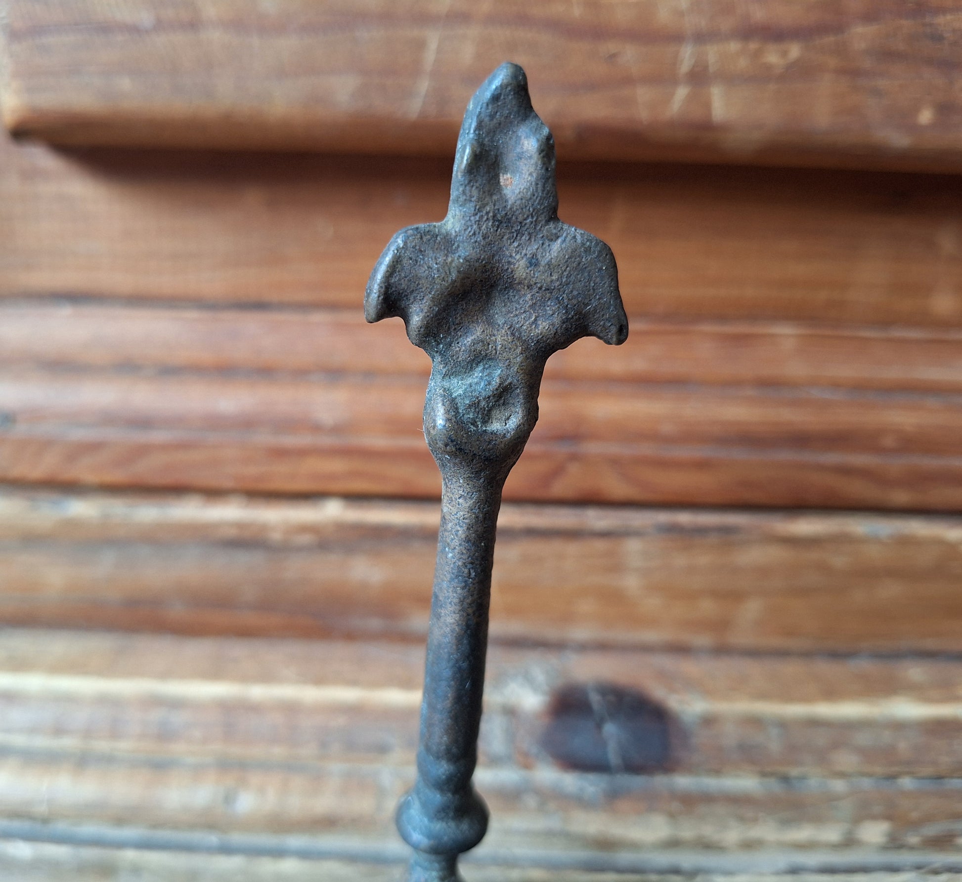 This bronze altar bell is a very old one already and clearly shows the (charming) signs of its age. The exact age is very hard to tell, but looking at its appearance, beautiful patina and wear and tear, there is no doubt that it is of very respectable age. But its high pitch sound is still really good and it will make a great ritual attribute once again.