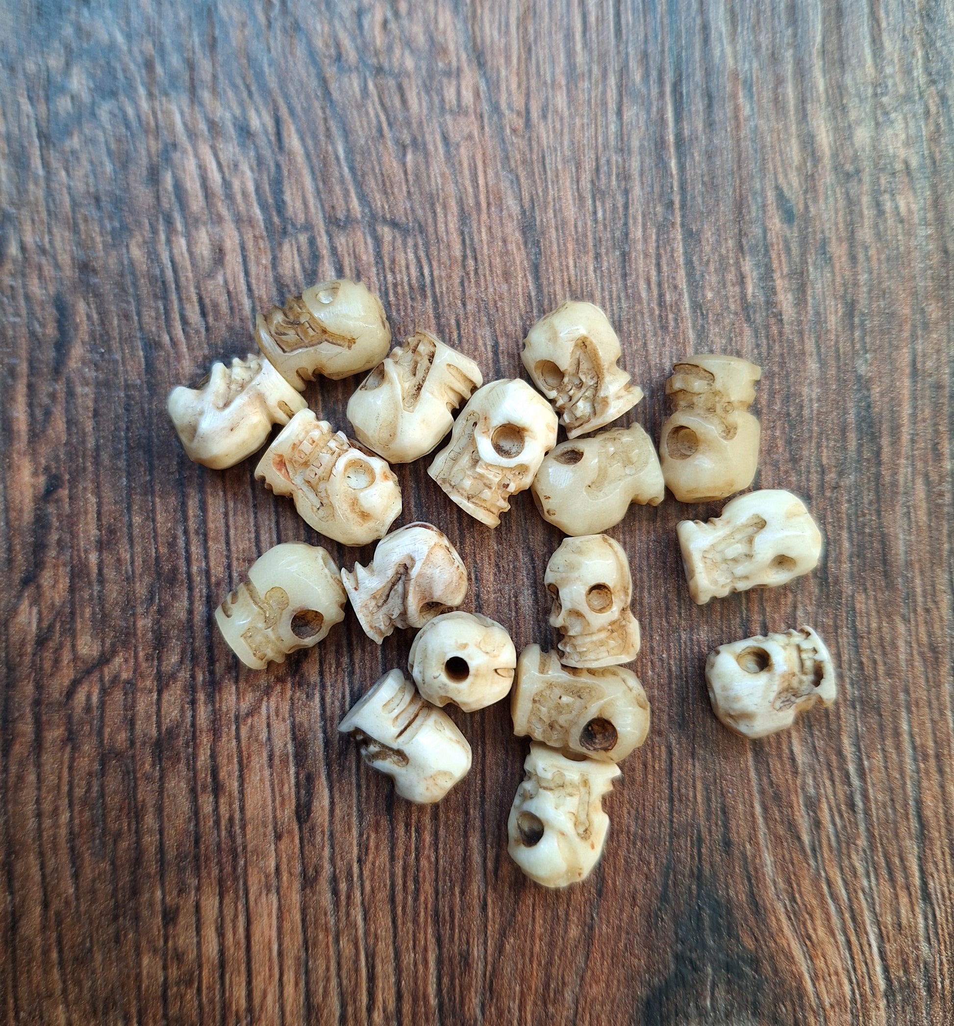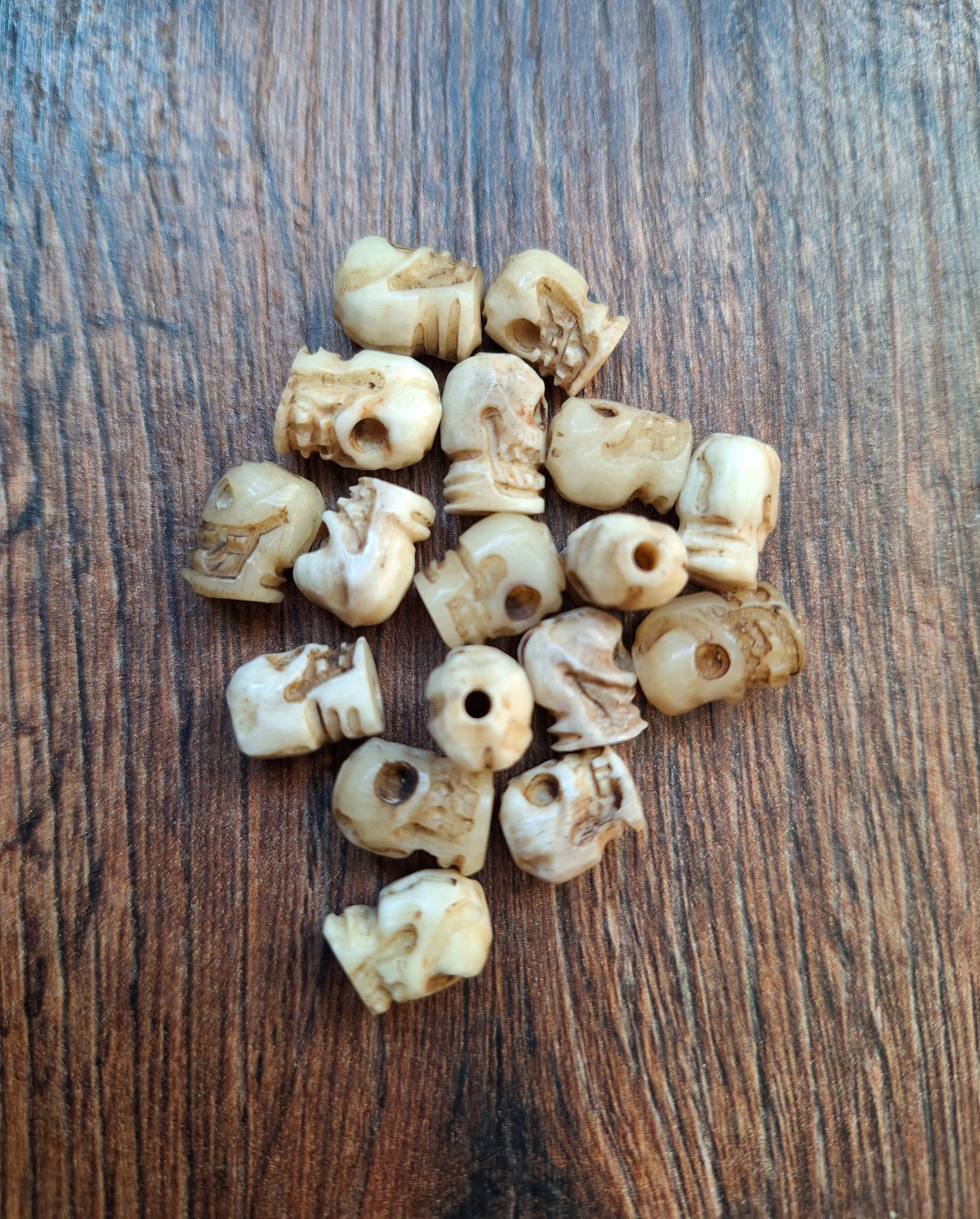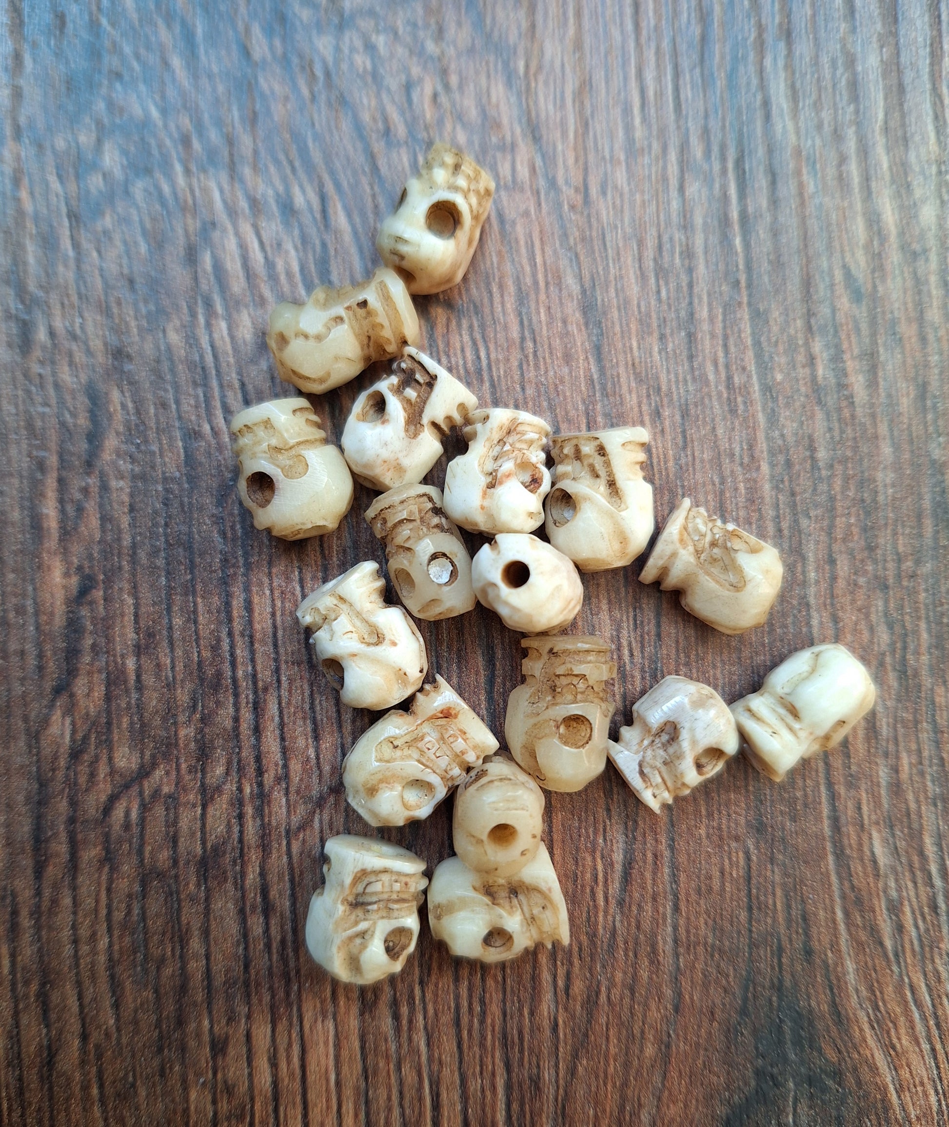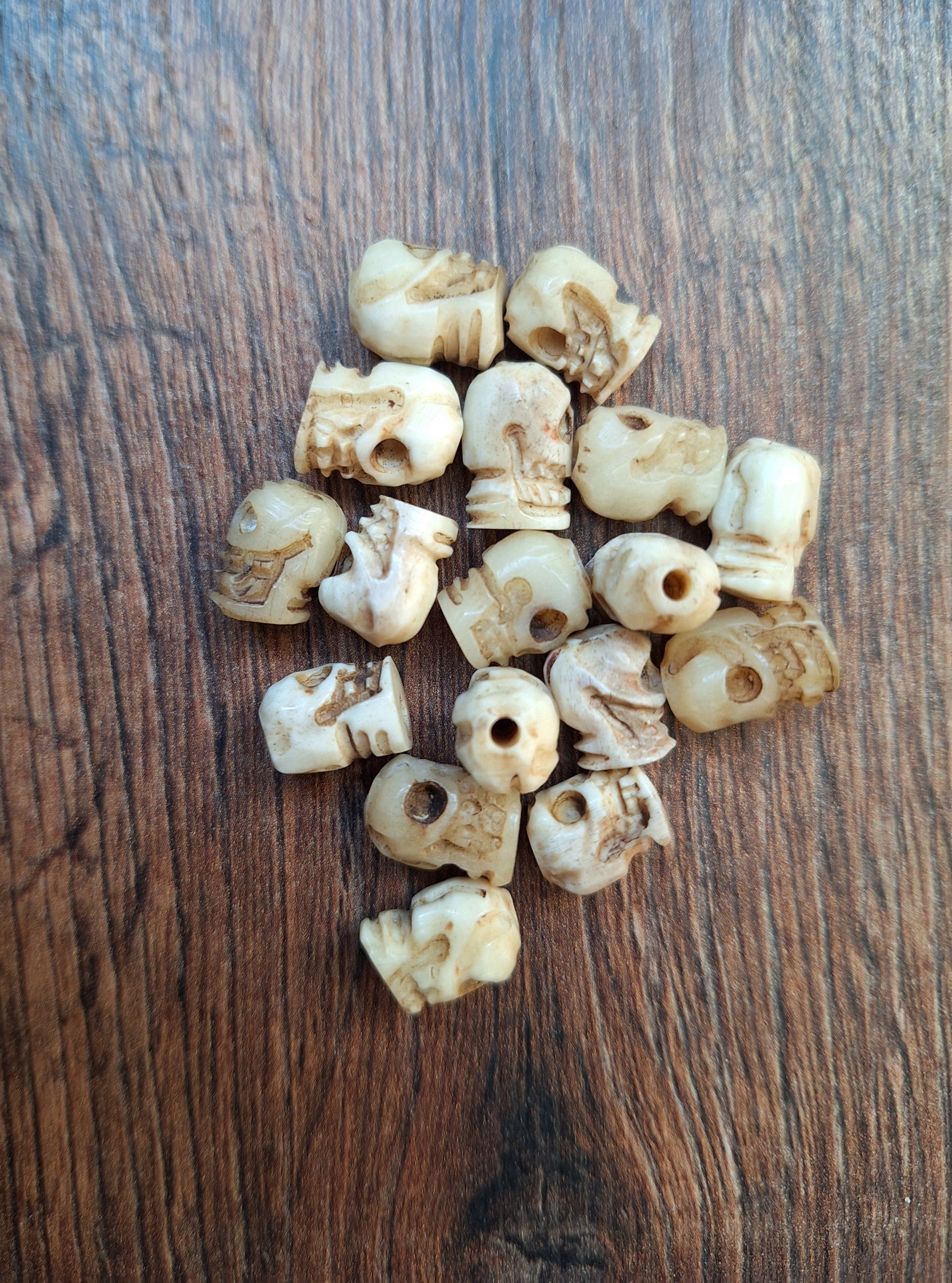 Old bone carved skull beads, set of 17