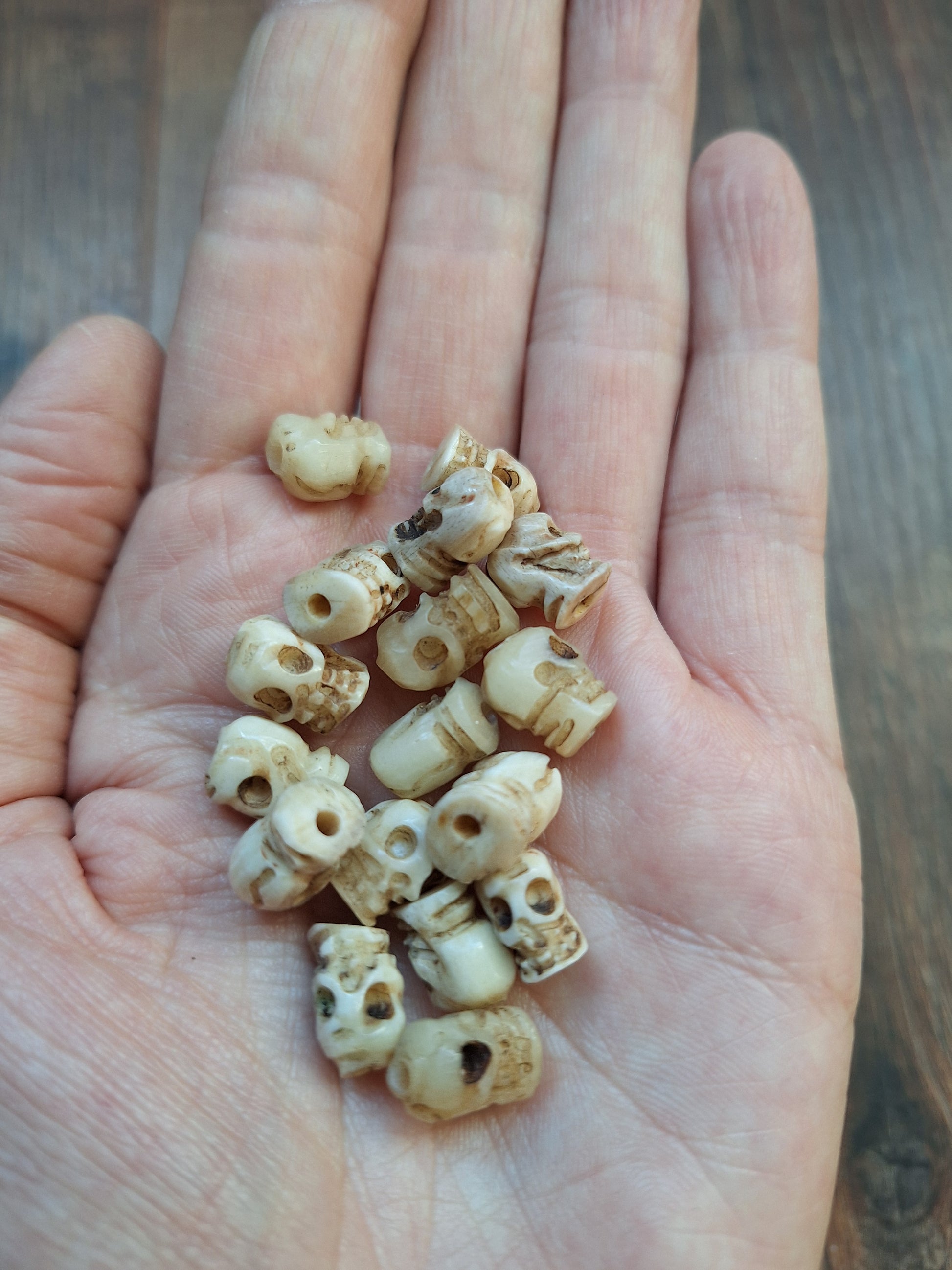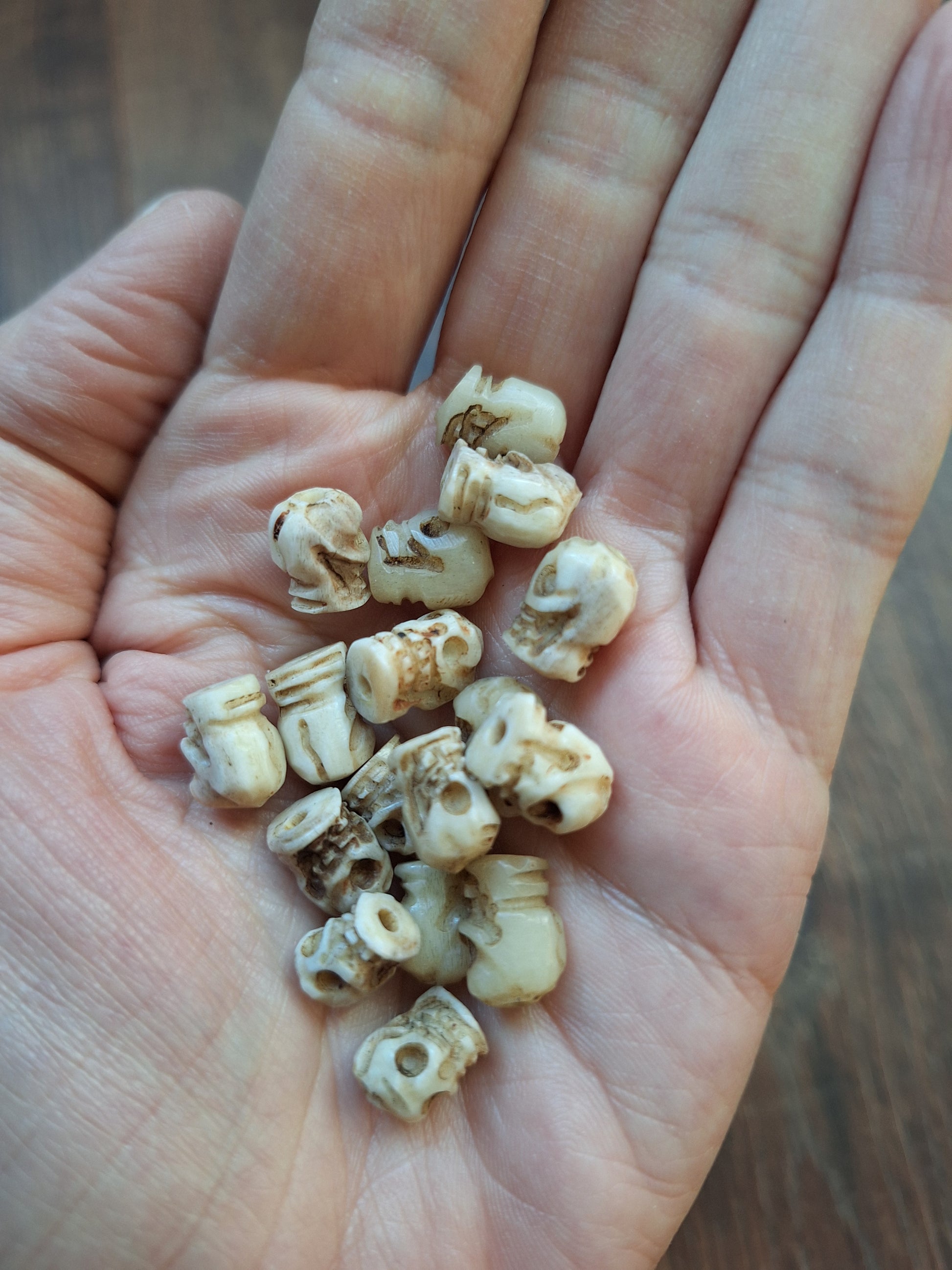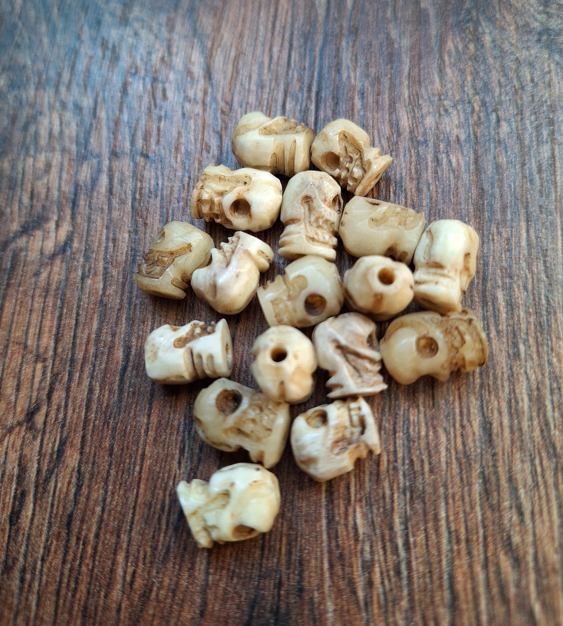 Old bone carved skull beads, set of 17