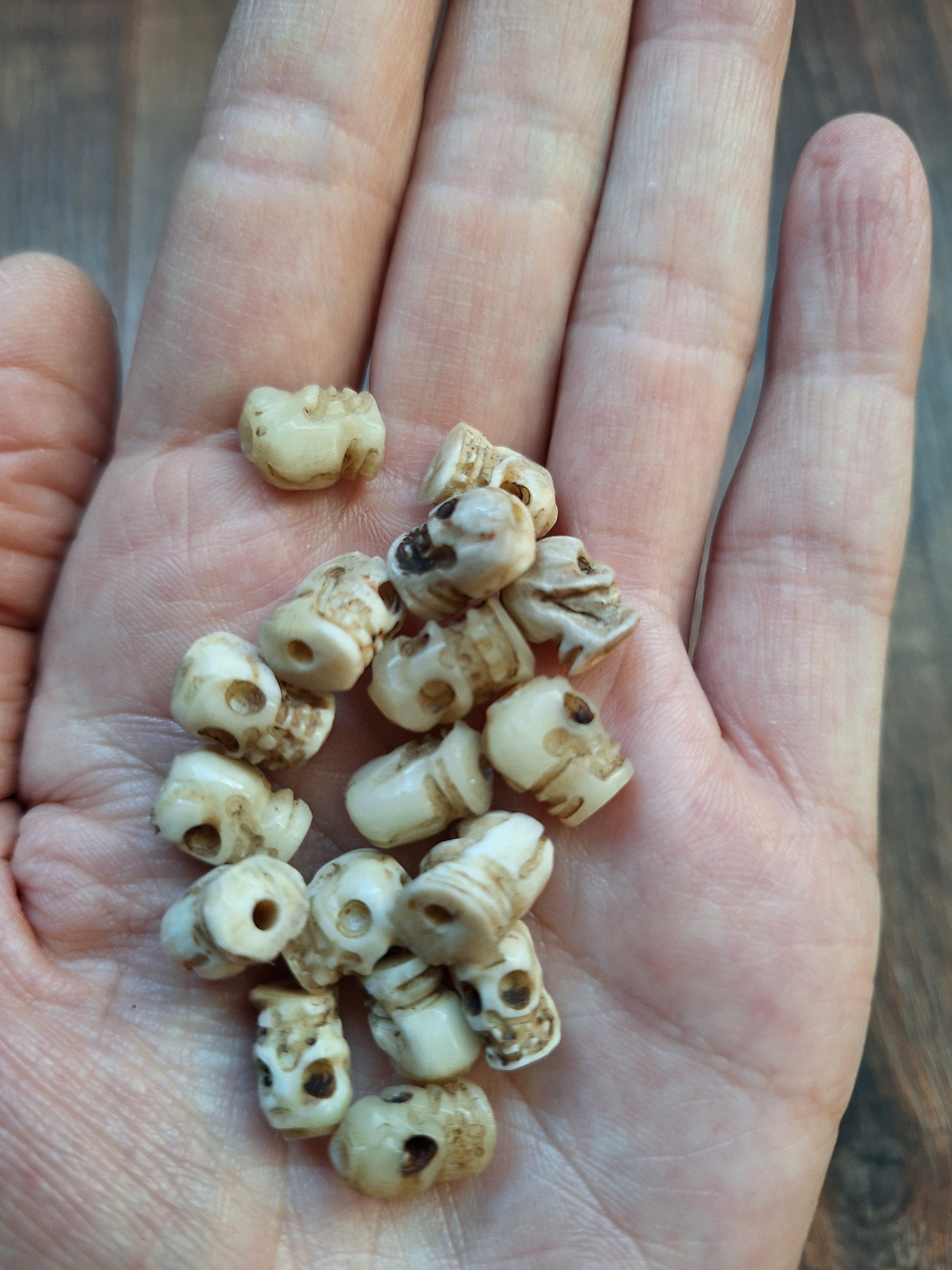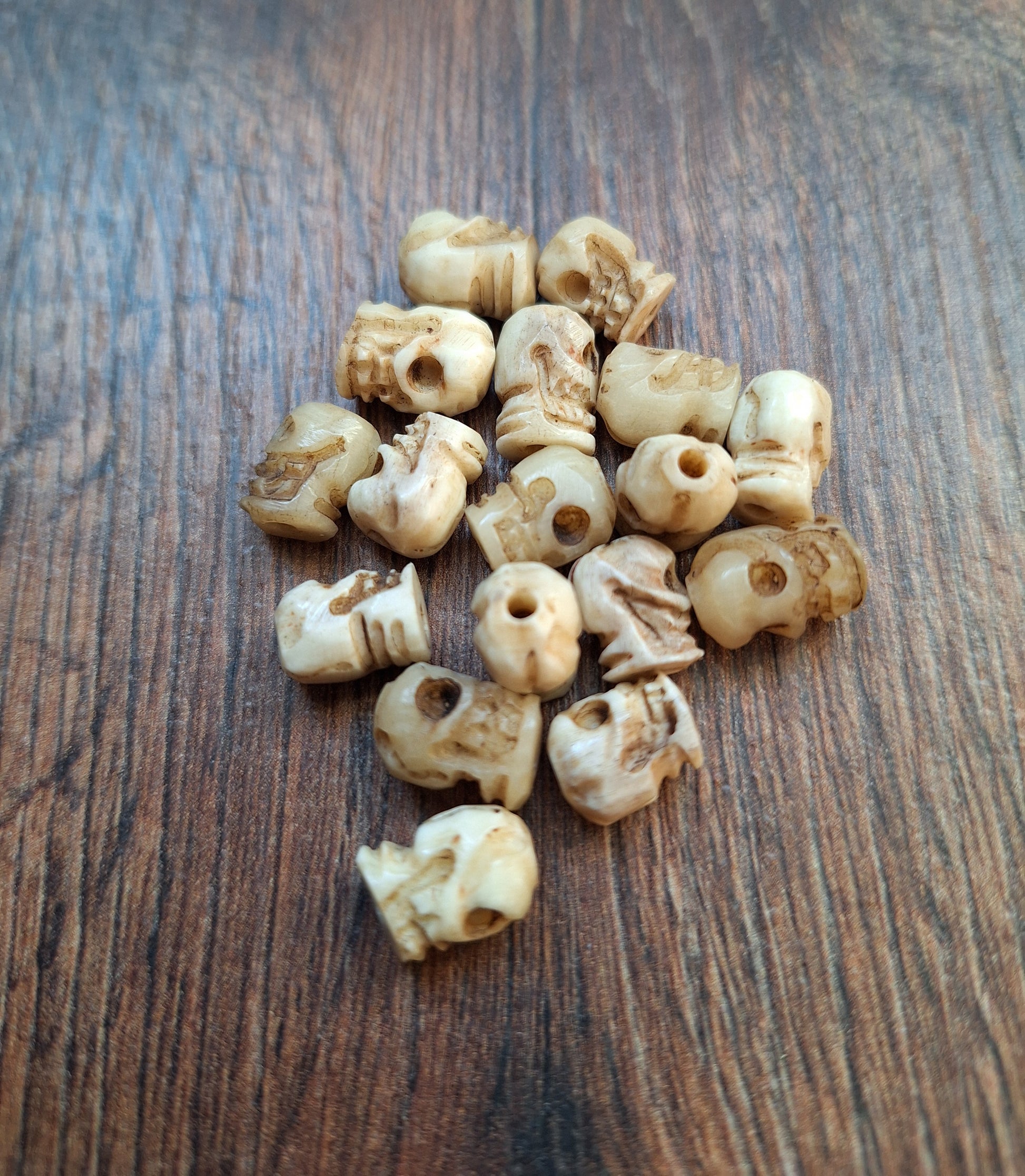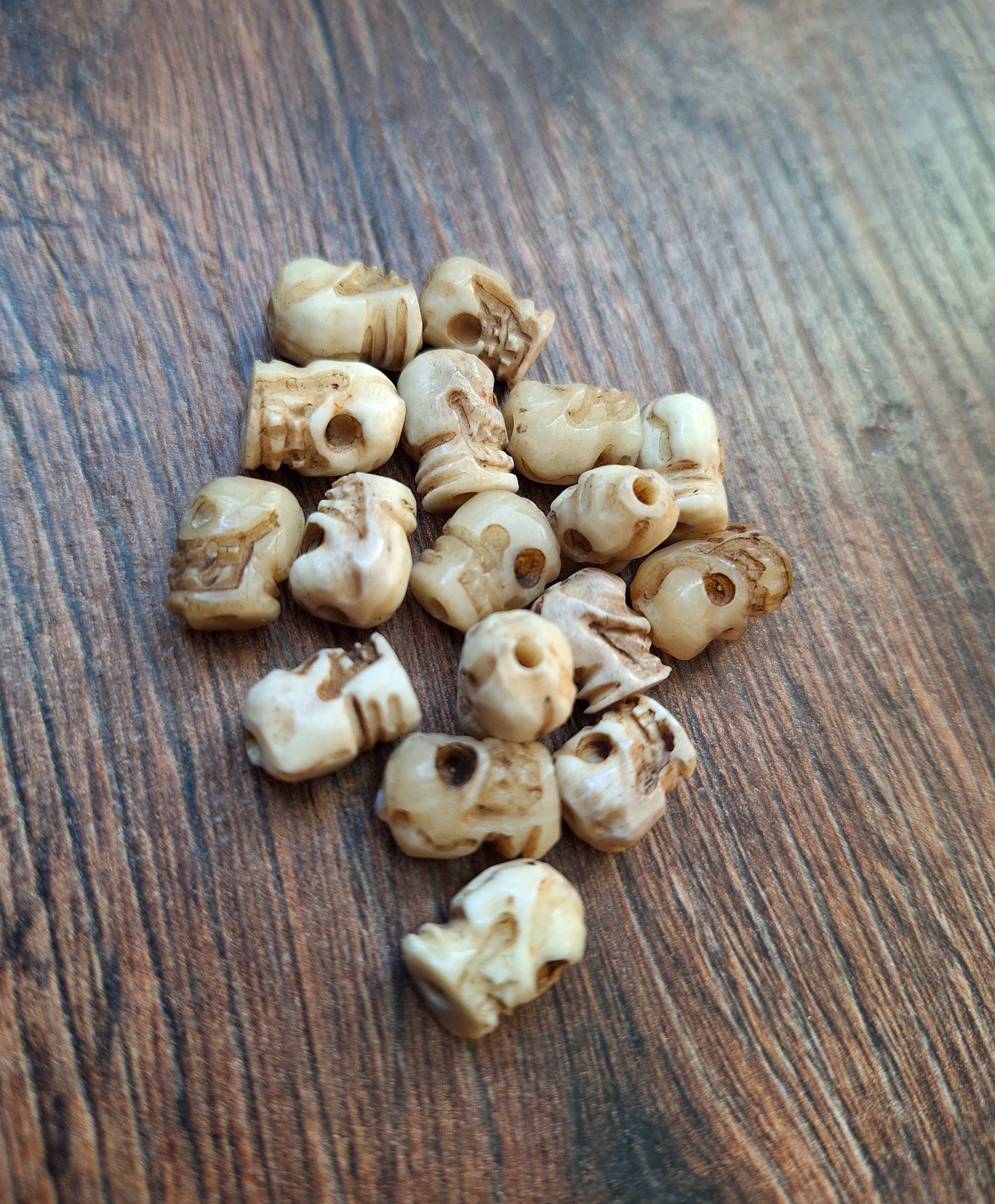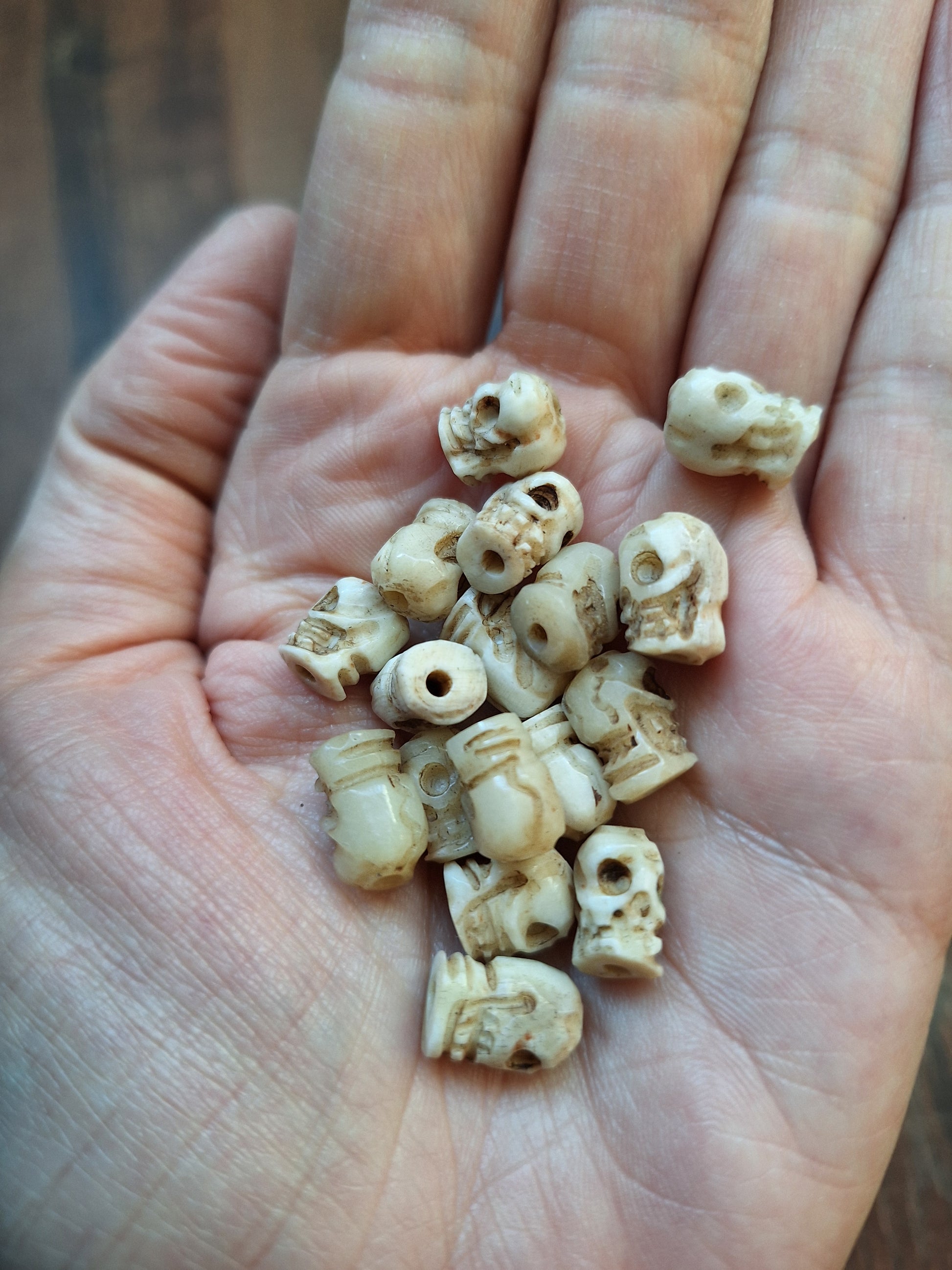 Old bone carved skull beads, set of 17