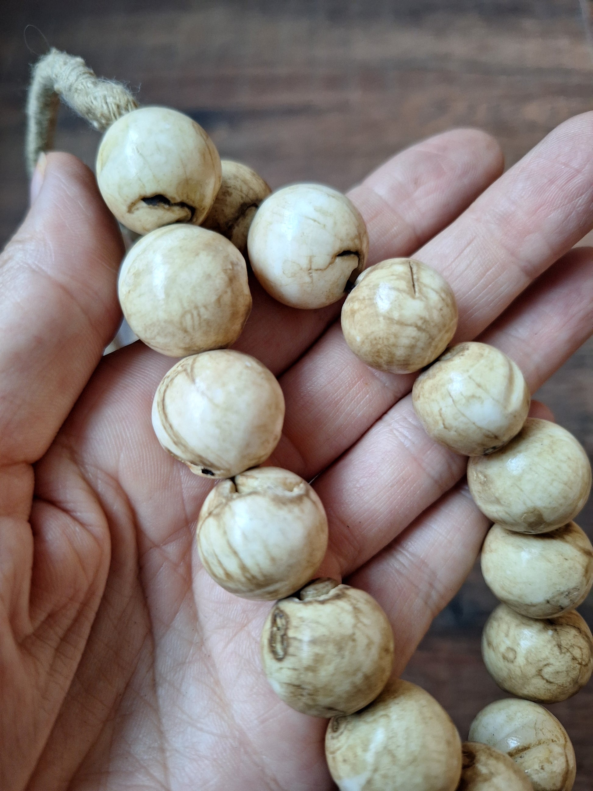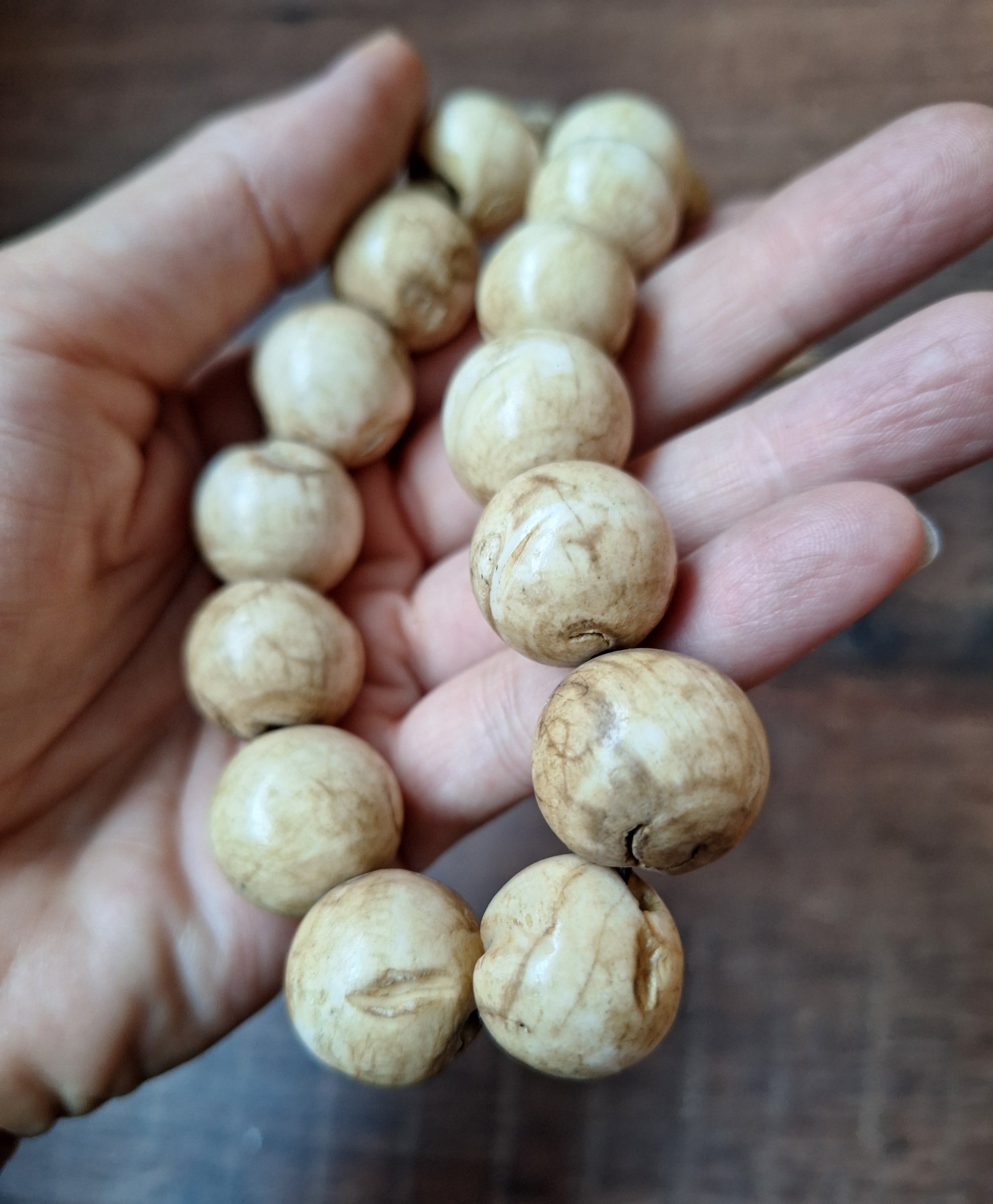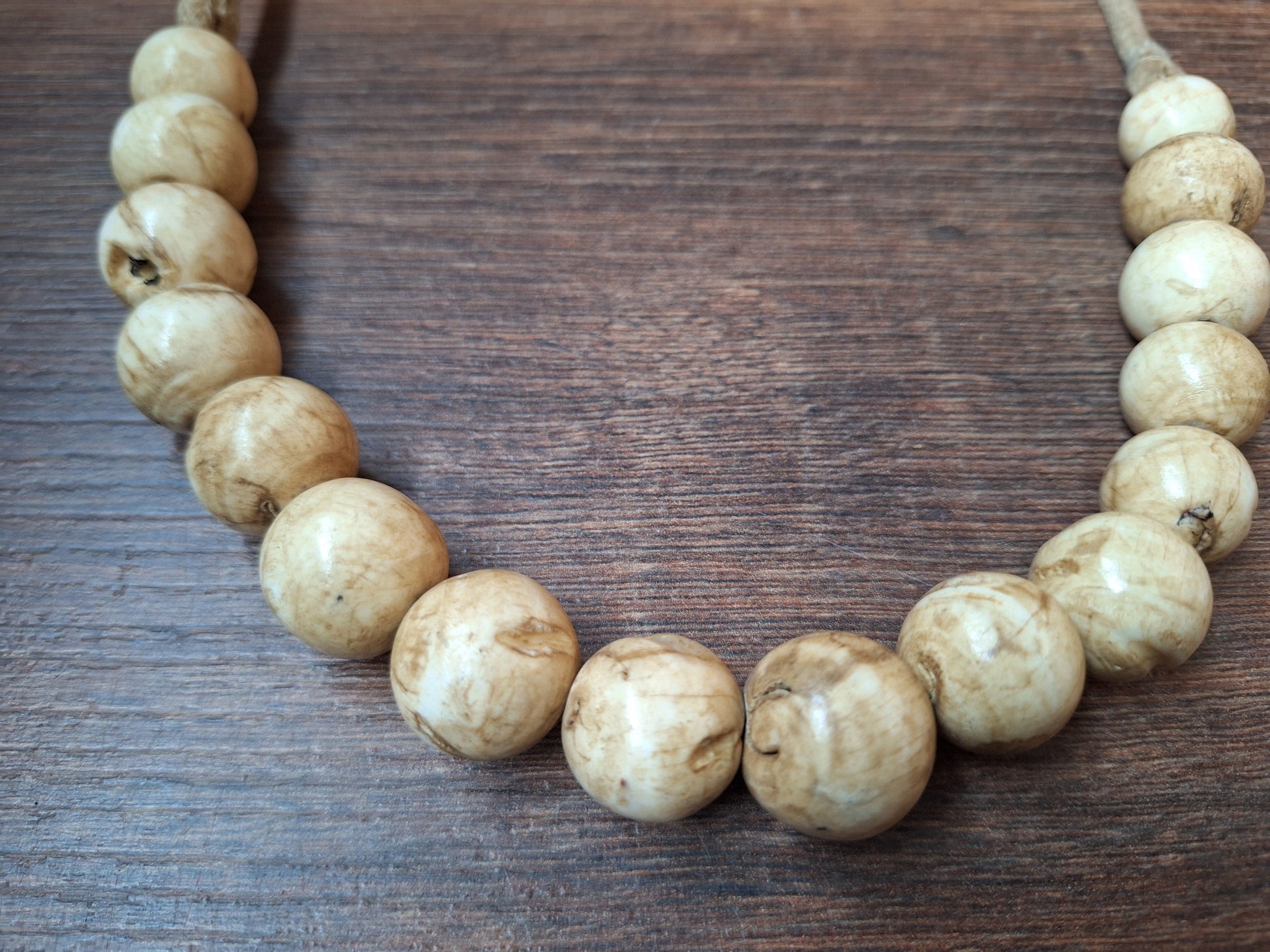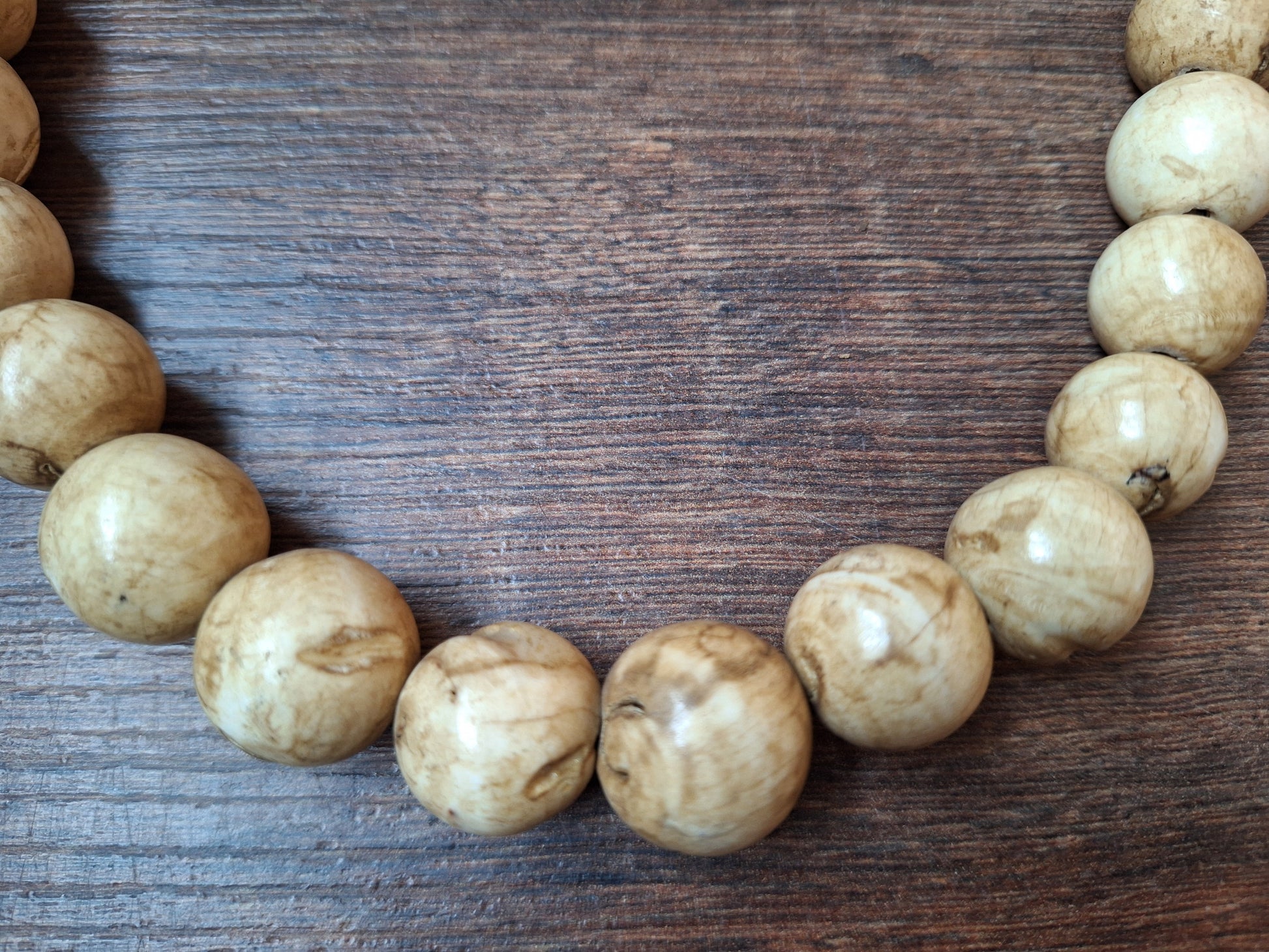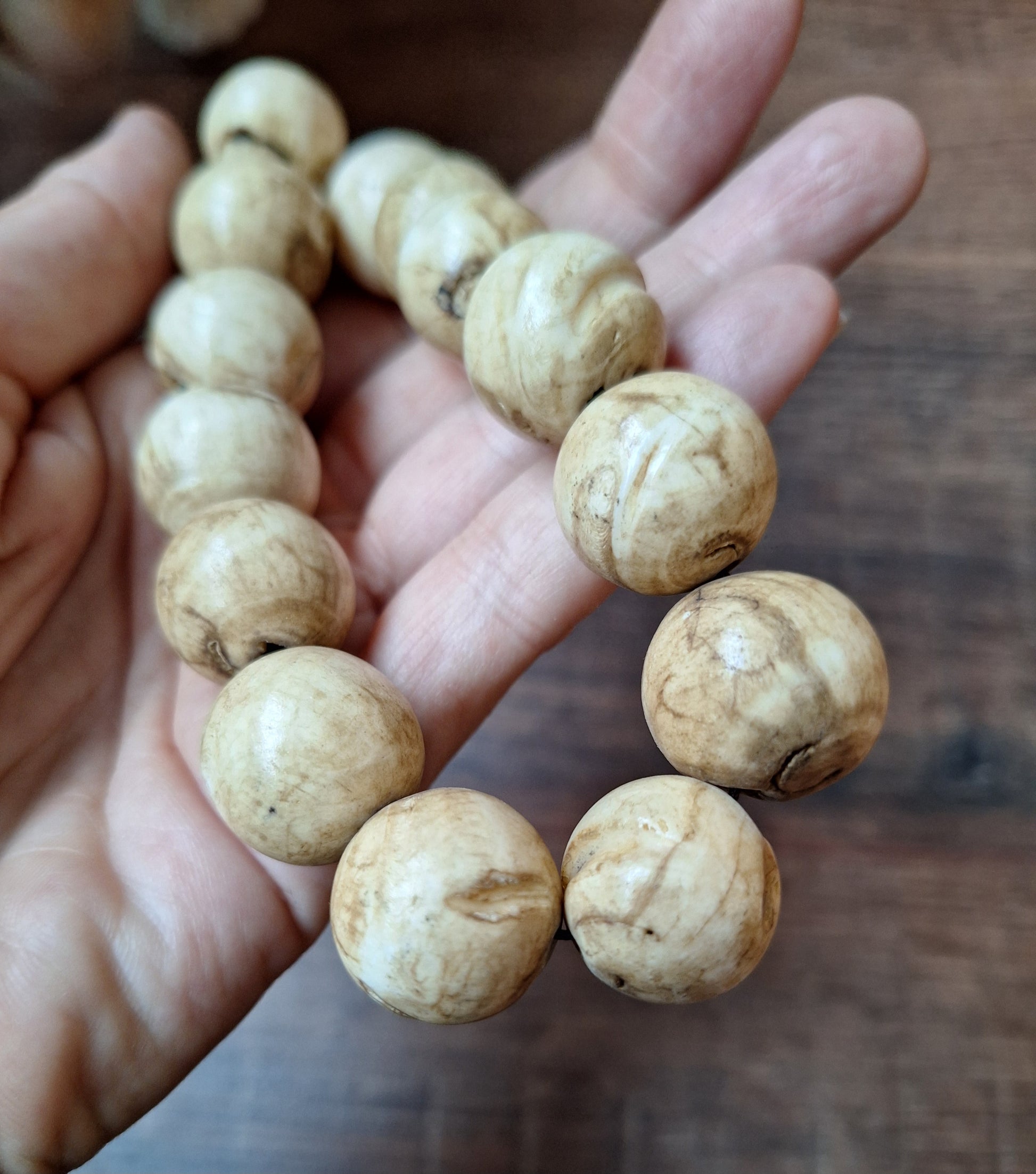 The large shell beads add to quite a heavy total weight of 160 grams. Each bead is approximately 17-19 millimeters diameter.