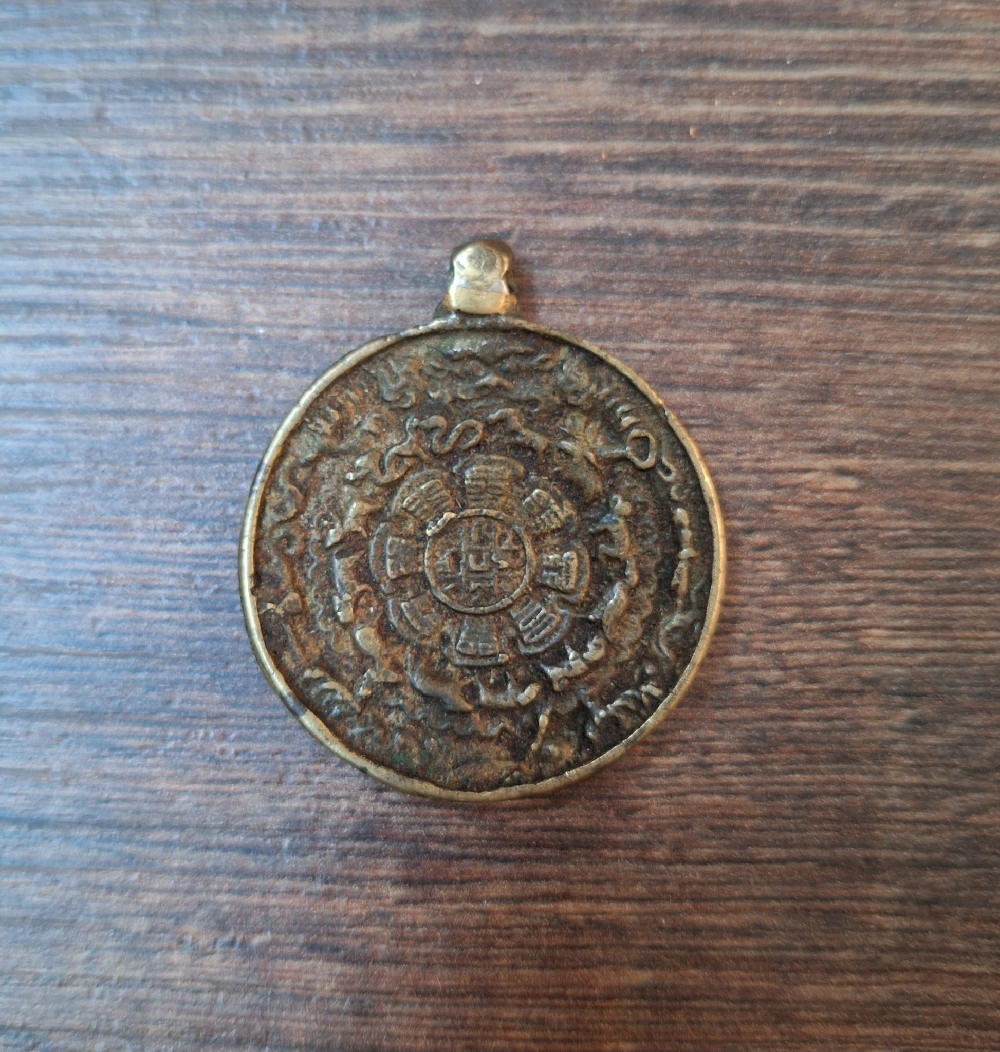 3) In the outer ring the 12 animals of the eastern zodiac can be seen. Just like the circular arrangement of the trigrams, also this motive adds to the idea of heavenly order. But also its presence, when used on shamanic mirrors, symbolizes control over time and space, an important core principle in the practice of shamanism.