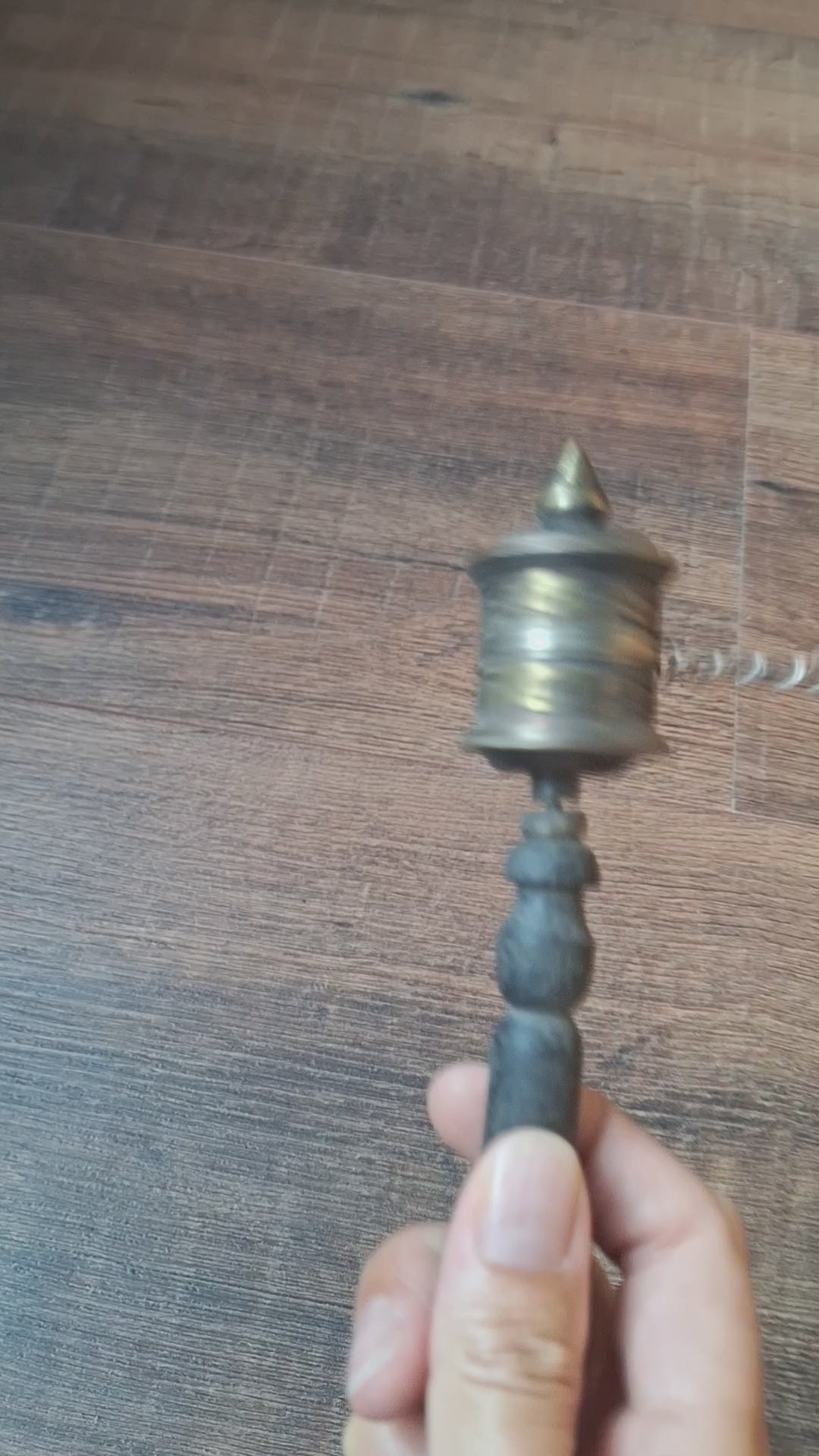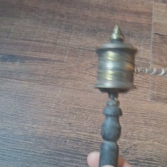 According to Tibetan Buddhist tradition, spinning a prayer wheel has much the same meritorious effect as orally reciting the mantra or prayer. The wheel is best rotated in a gentle and smooth rhythm (clockwise, how the mantra’s are written in the direction of the movement of the sun across the sky), meanwhile keeping a steady focus on the motivation and intent for the practice and being mindful about the inner state of compassion and bodhicitta. To increase the benefits of the practice as much as possible, one can also recite the mantra out loud or silently inwards. That being said, a prayer wheel is said to even work at times when no such mindful practice is engaged; even spinning it with a distracted mind or stroking it absently when passing-by will already accumulate benefits and merits.