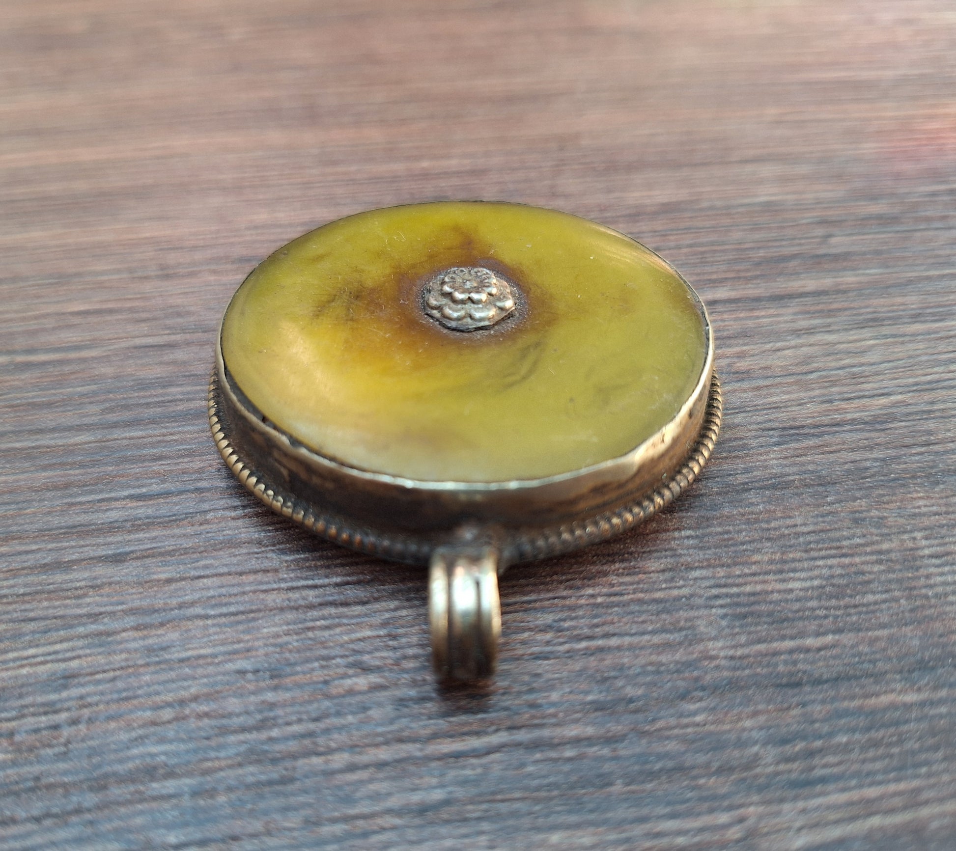 Vintage Tibetan pendant made with a piece of beautiful copal. Handmade into a pendant with a Tibetan silver setting.