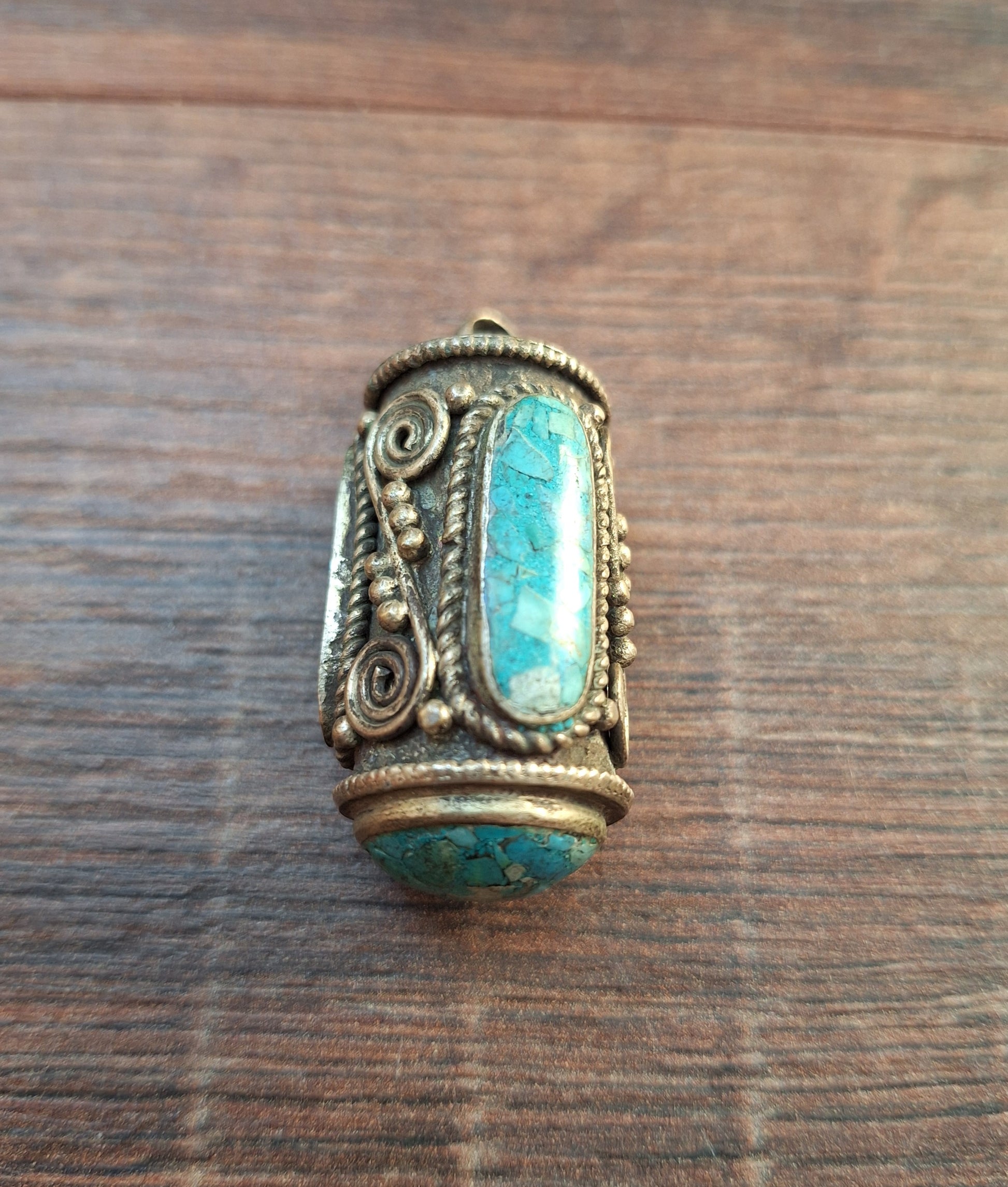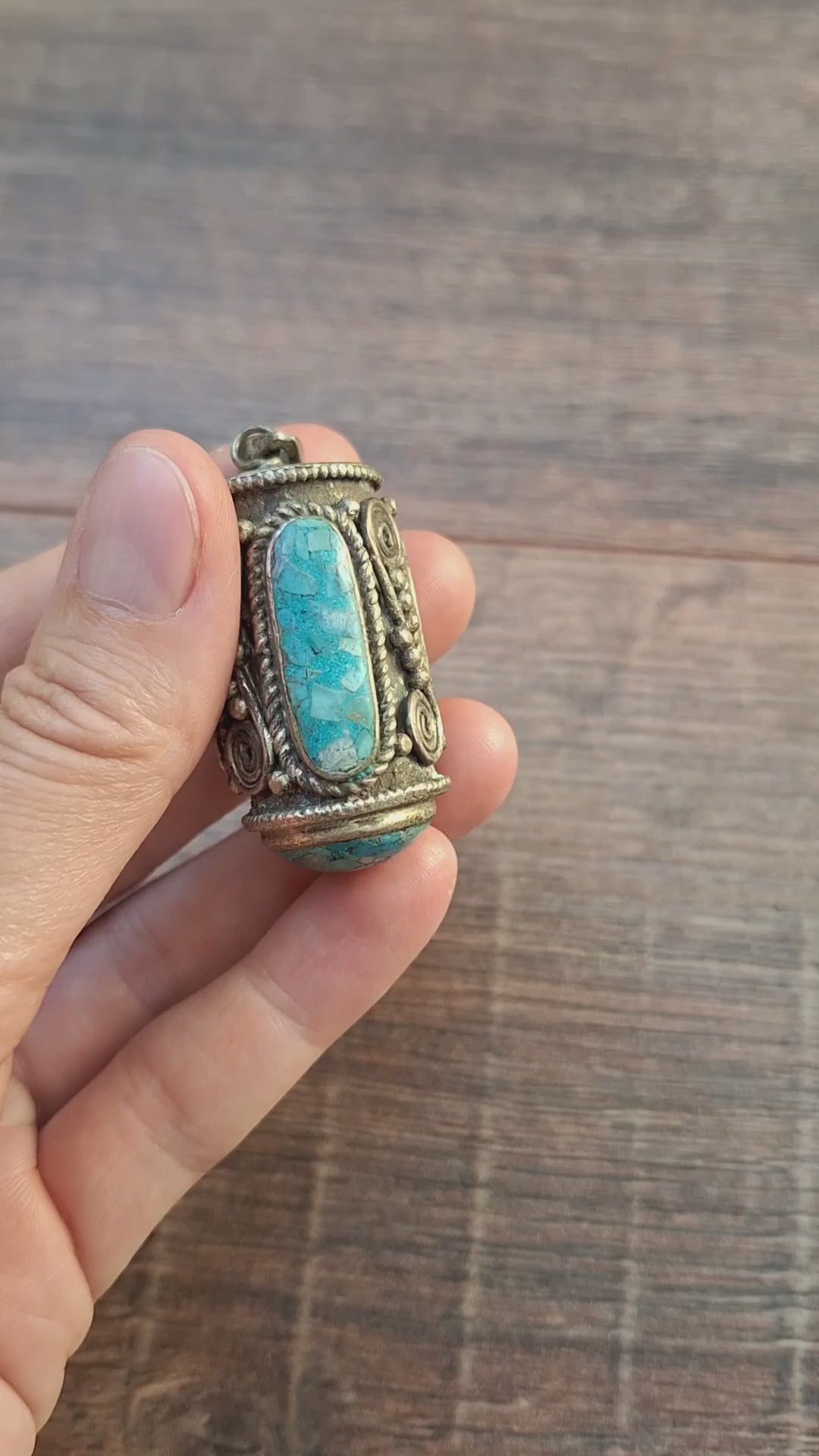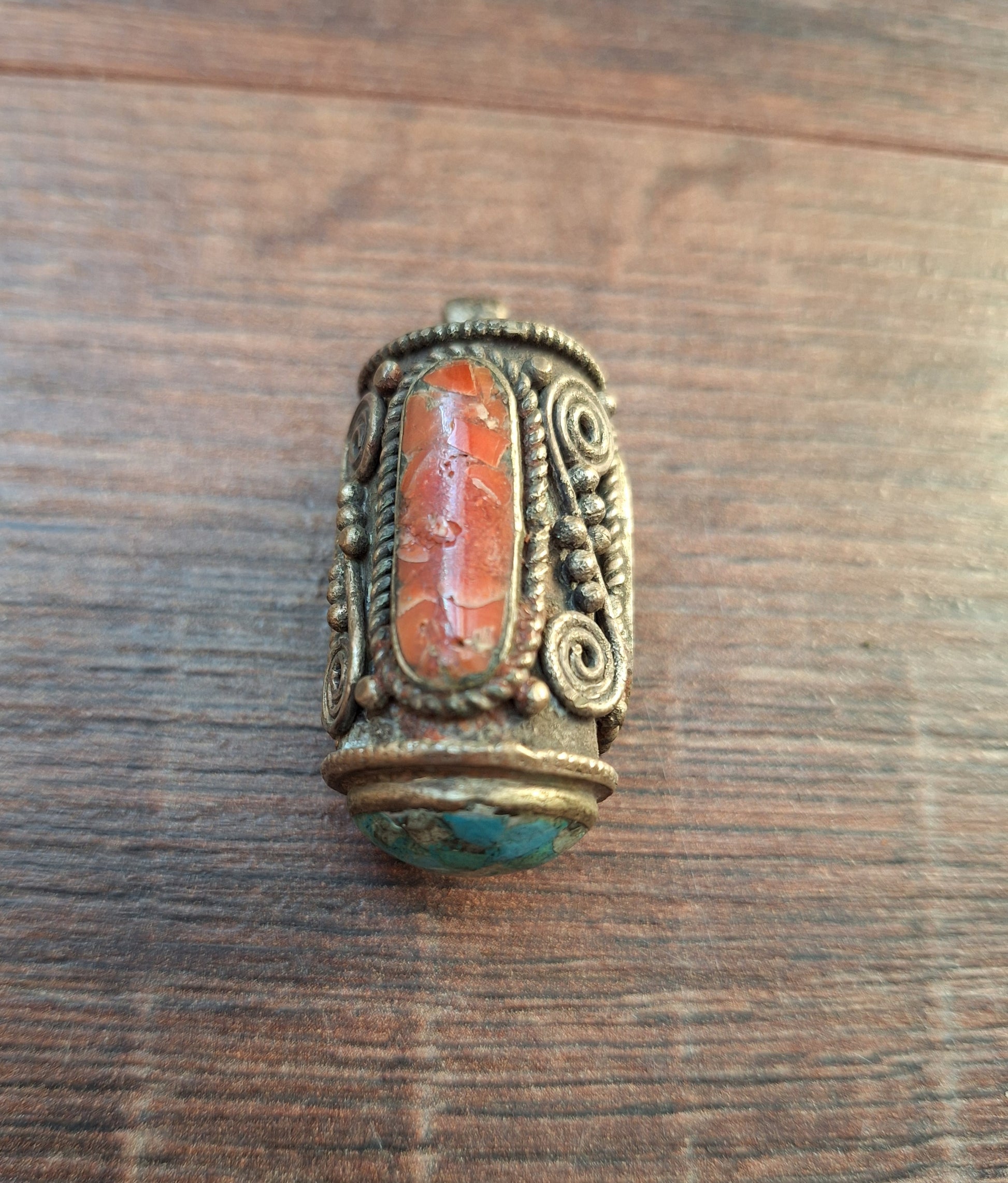 Vintage Tibetan silver pendant with gemstone inlay