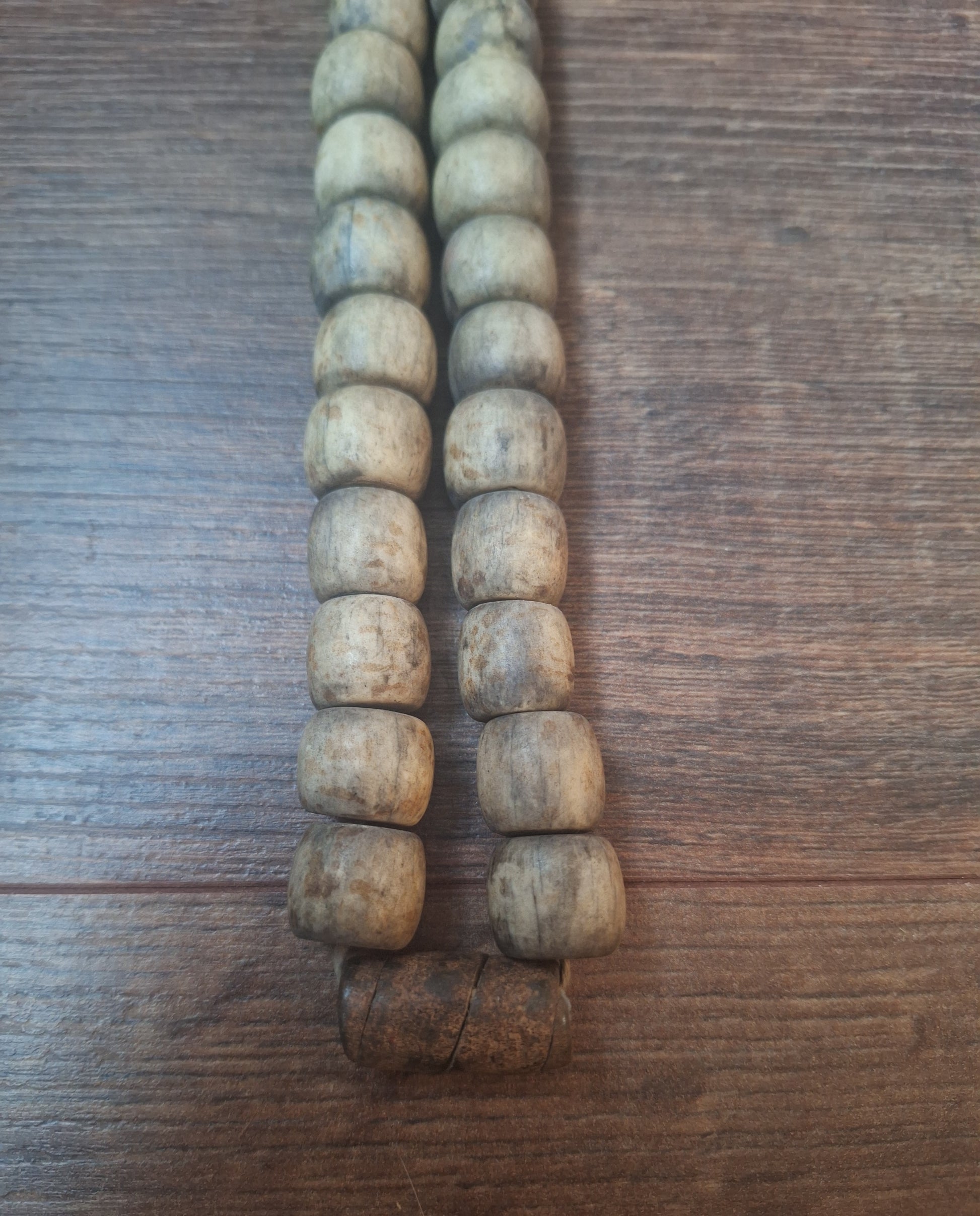 Being all handmade, and of course from all natural material, they all look slightly different, with sizes varying between 15-17 millimeters high and 15-17 millimeters diameter. These beads have quite some years of age to them already and have gained a nice rustique look and smooth feel over time.