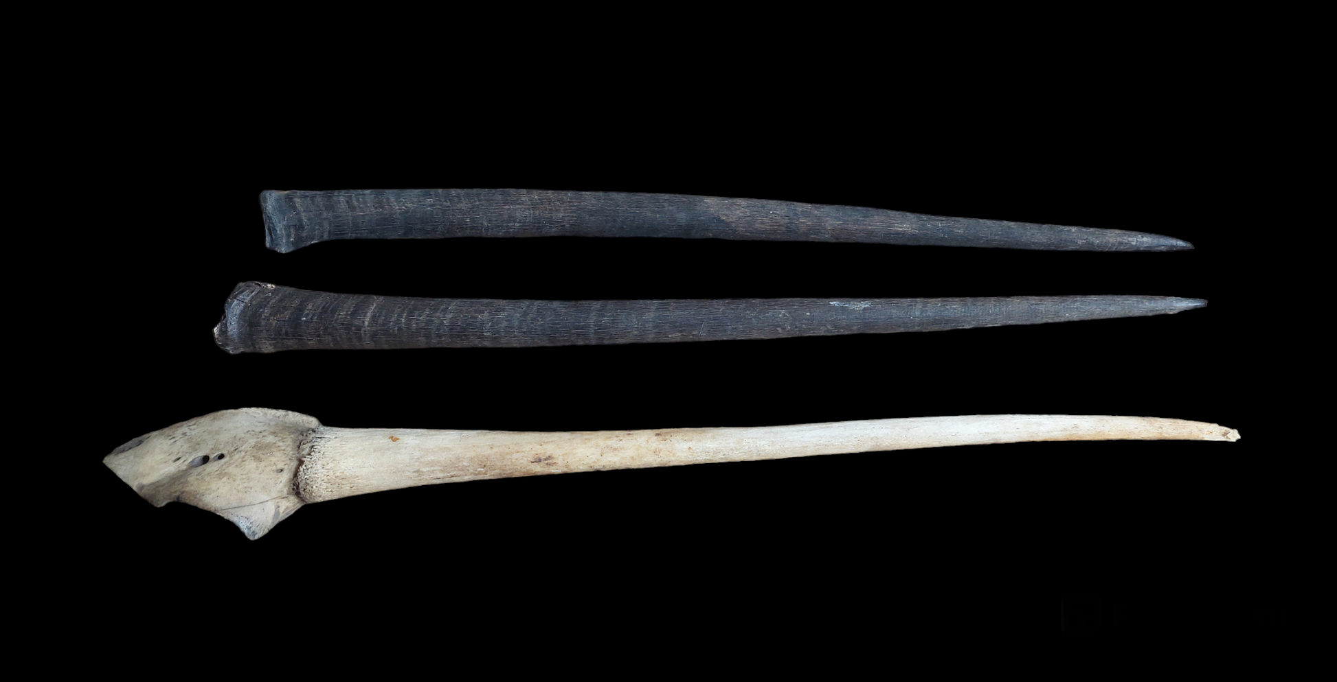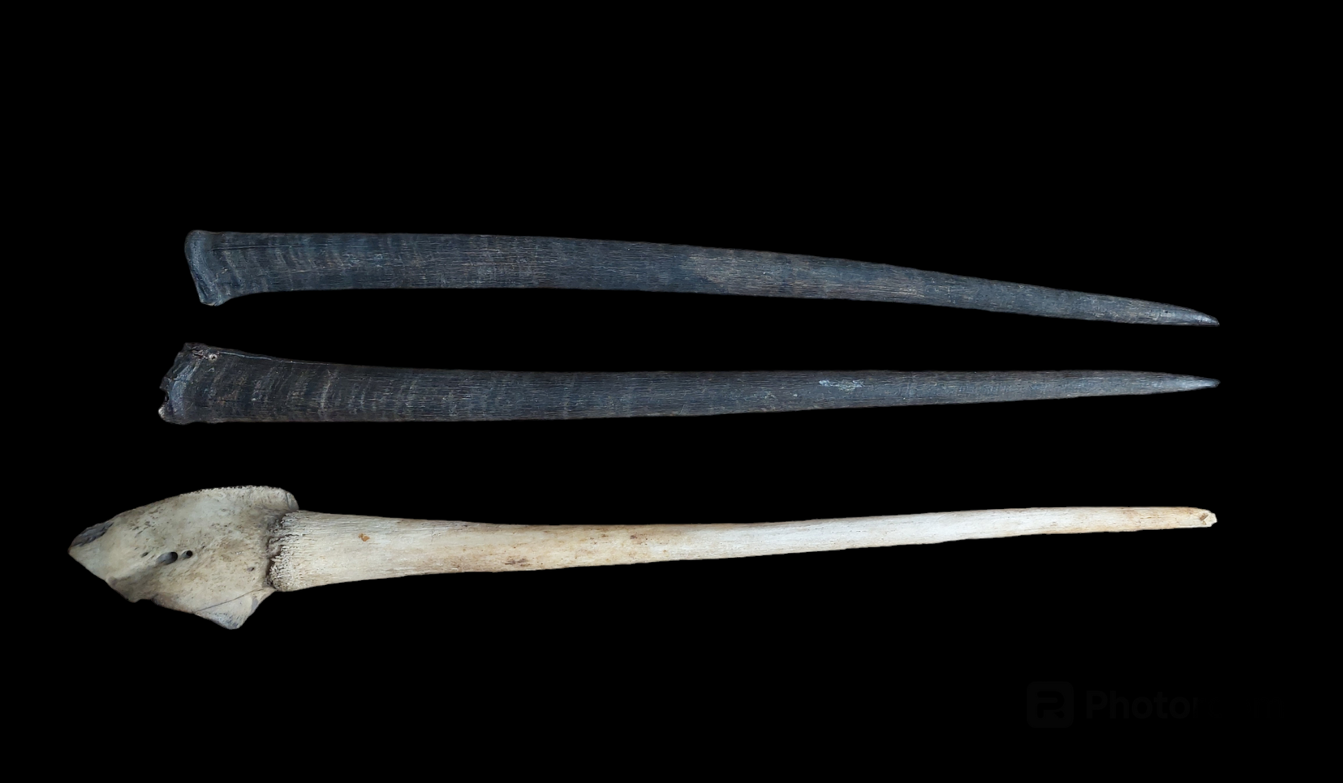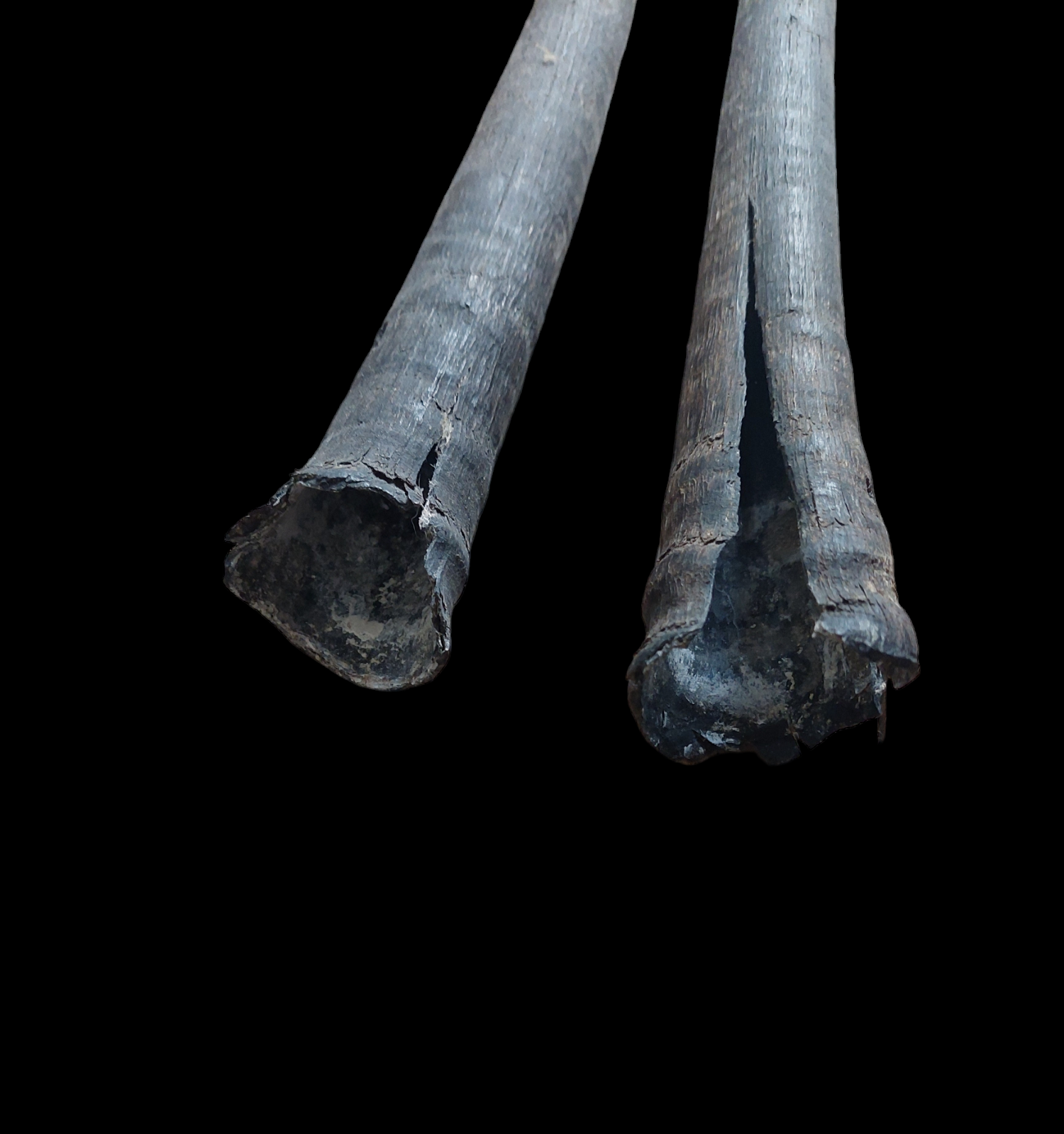 Sizes; the horns are each approximately 62 centimeters long. The horn pit (measured including the piece of skullcap) is approximately 68 centimeters long.