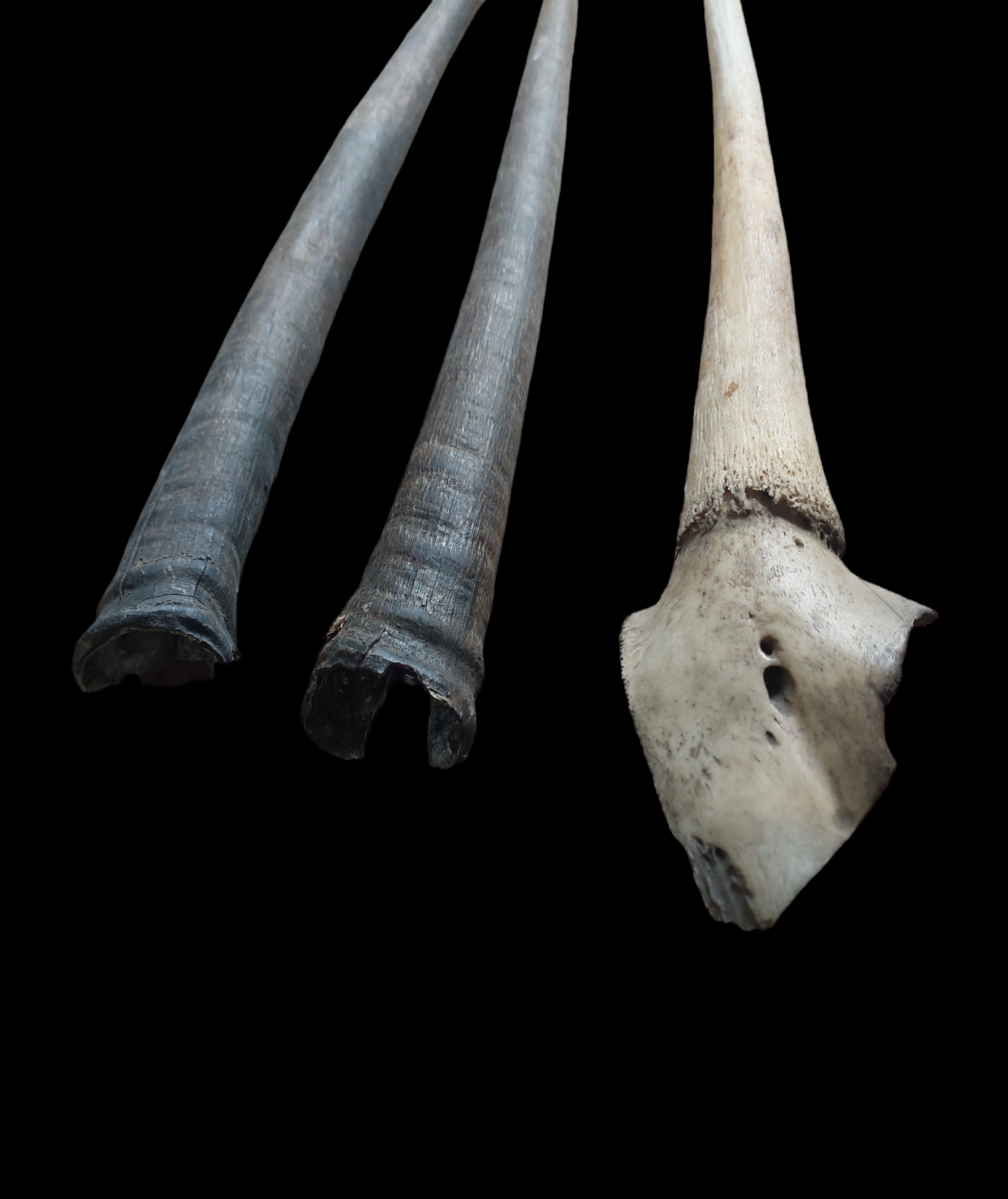 Sold per set of three items (two horns, one horn pit). Only one set available.