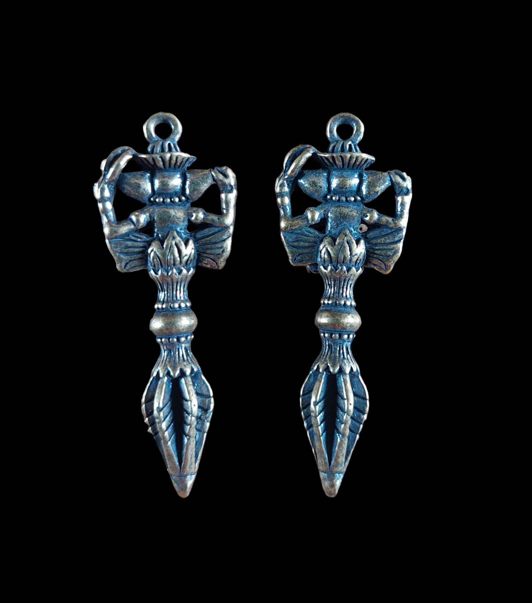 These pendants are made from qood heavy quality bronze and nicely detailed. They measure approximately 4,5 centimeters length (without the eyelet) and weigh 9 grams.