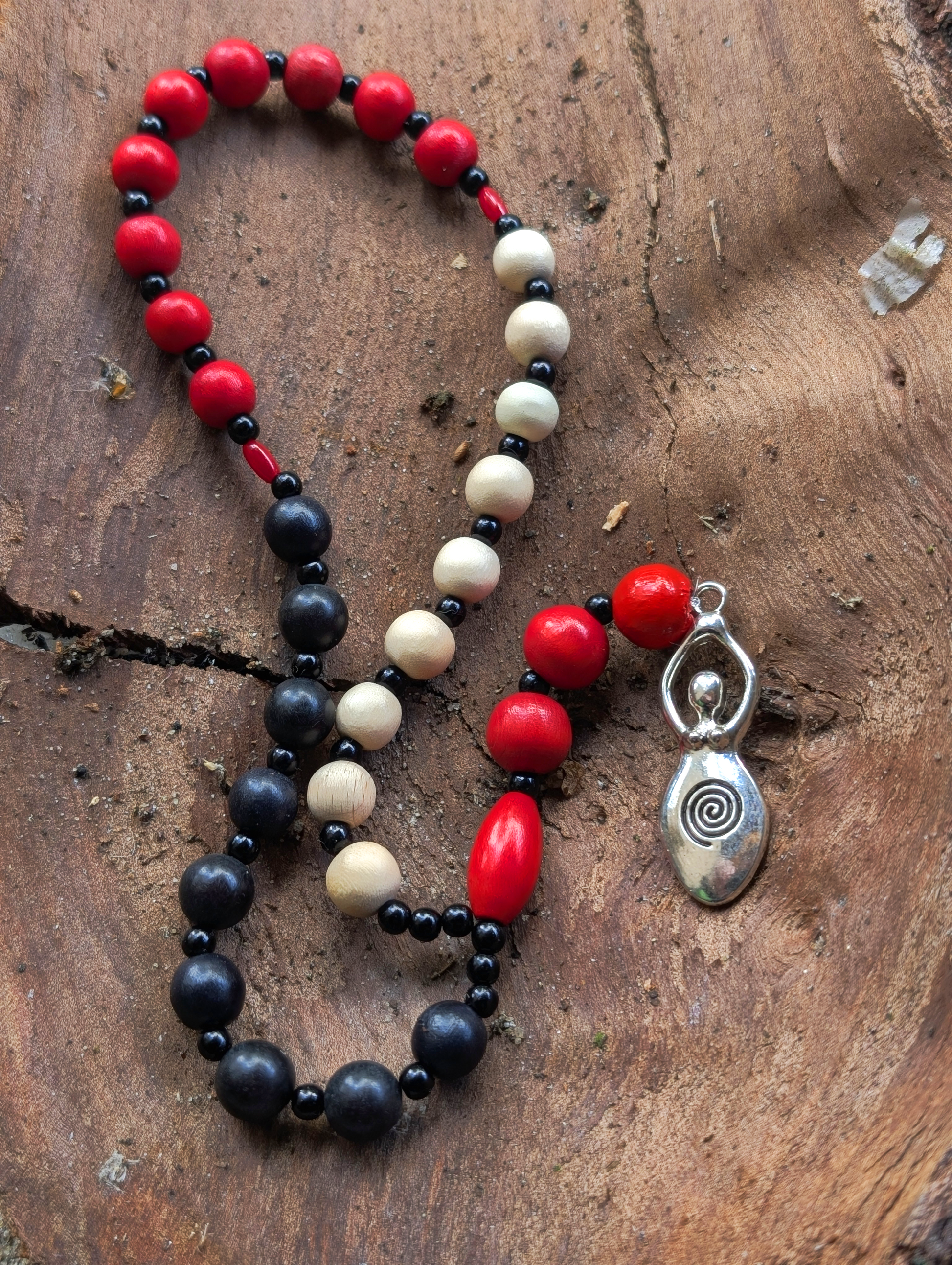 This prayer beads are made for you to connect with Mother Earth. She has in Europe often three faces, marked by three traditional colours: white, red and black. She has many names, such as Nerthuz, Tamfana, Nehalennia, Diana, Danu, Perchra, Hella, etc... You can breathe with the touching of each bead to lower yourself into her realm. It helps you to connect by each breath to the Great Mother in the deepest of ways. Qualities: fertility, grounding, death and rebirth, geborgeneid.
