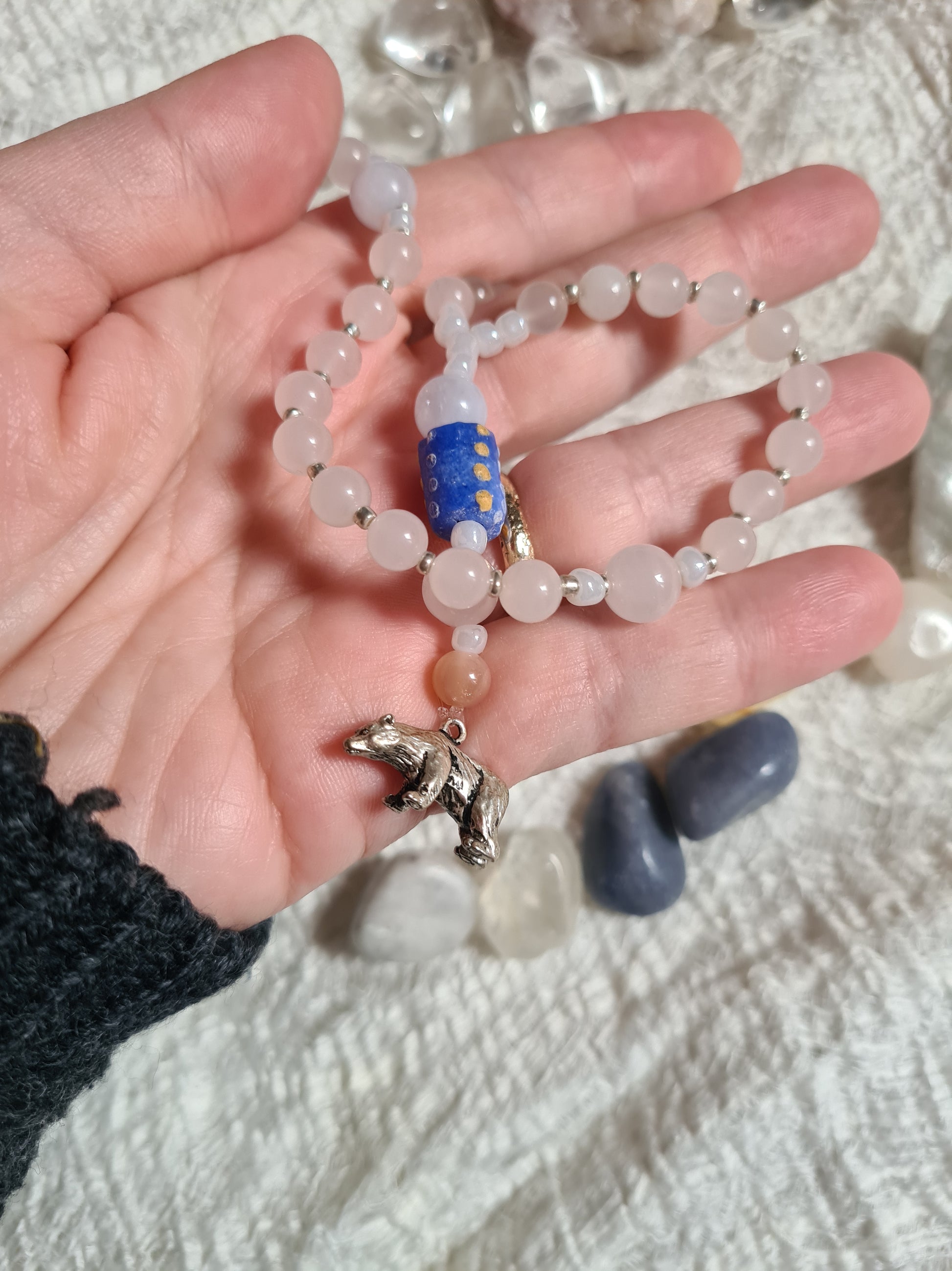 This prayer beads are about the Bear spirit. You can breathe with the touching of each bead to lower yourself into the bearcave. It helps you to connect with the bear qualities and with the moon. There is a link to the Ursus Major (constellation).