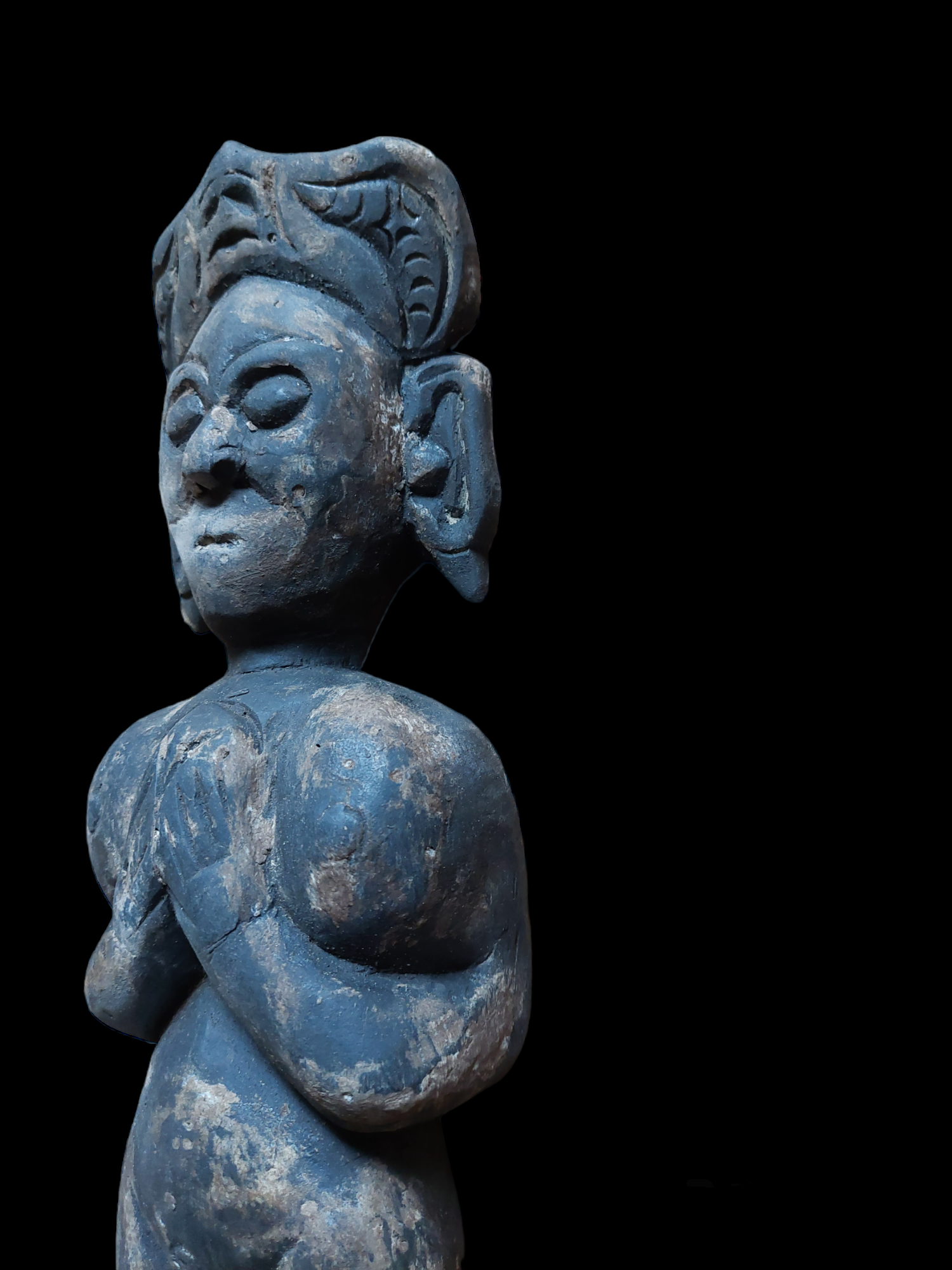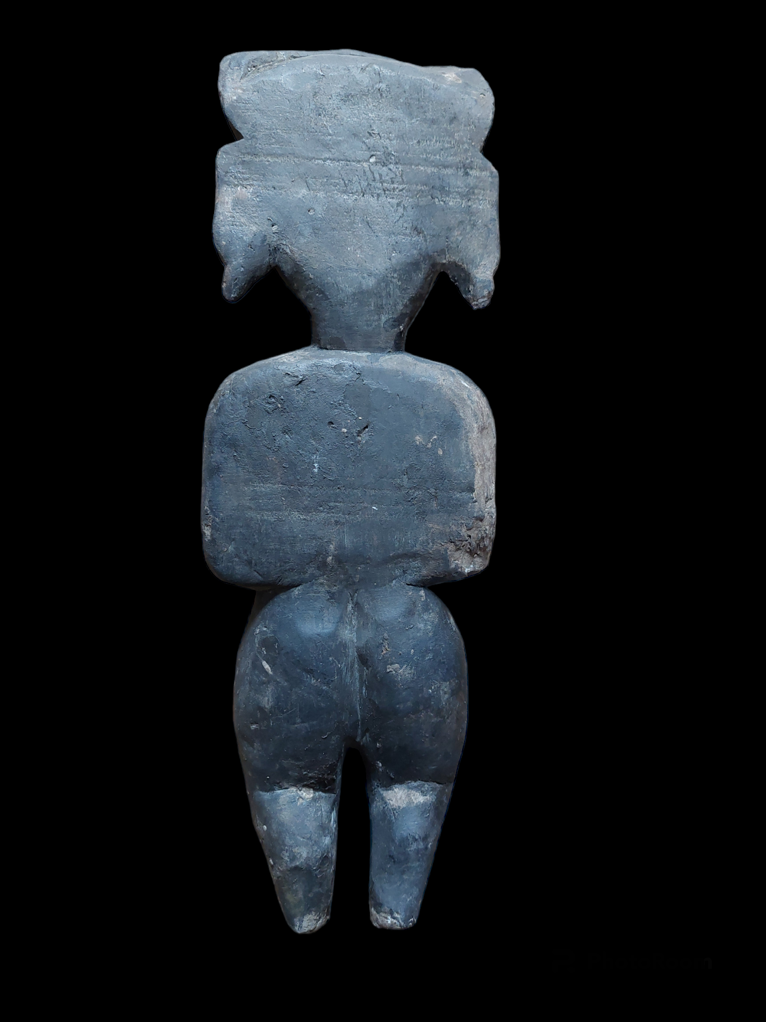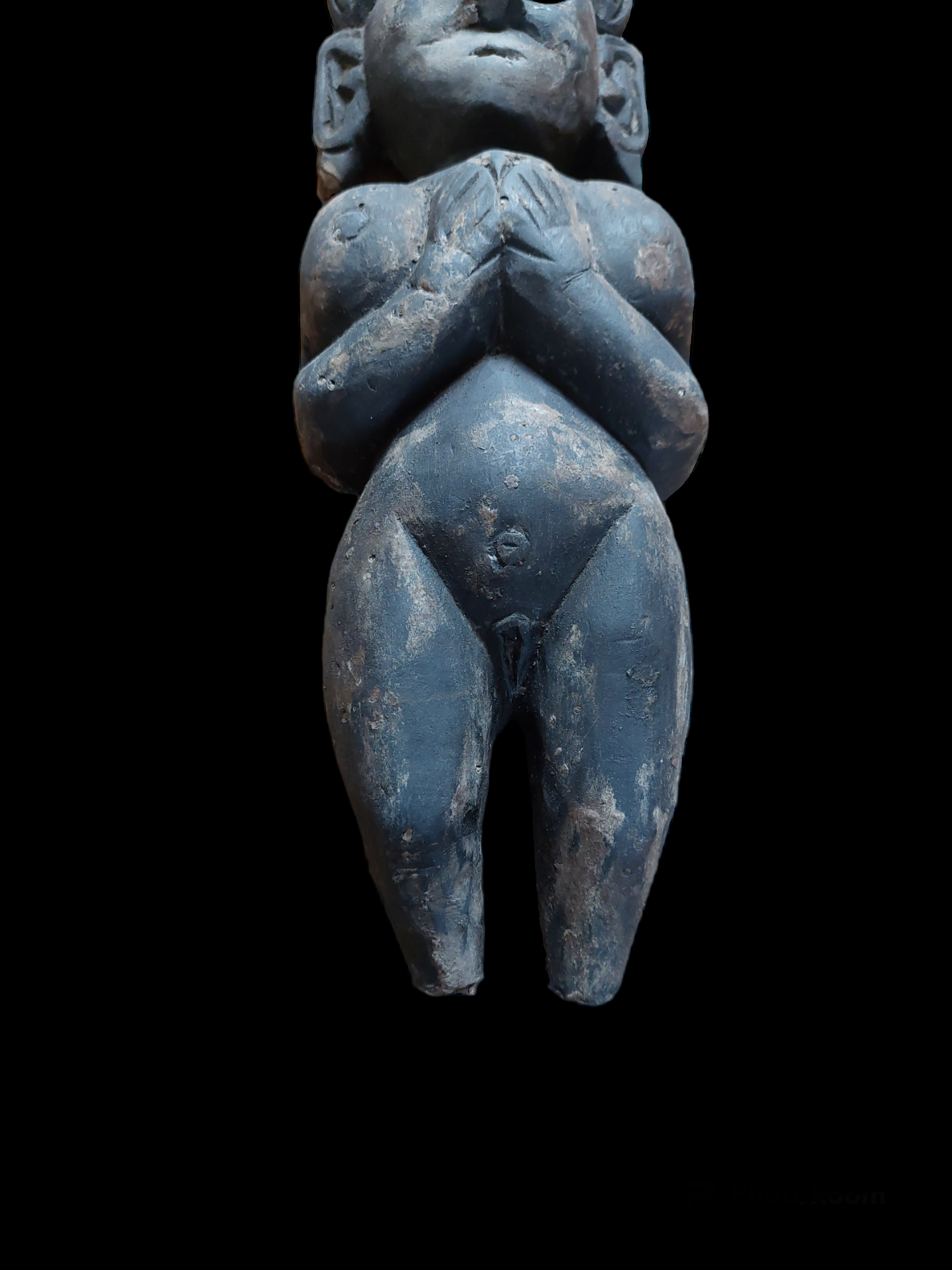 This statue is approximately 33 centimeters high. Please be aware that a statue such as this is not just a beautiful decorative piece to place in a display cabinet. It was made to be a spirit home, and still is so. Treat it with the utmost care, friendship and respect. And feel free to ask our advice if you need any on how to best take care of such as statue.