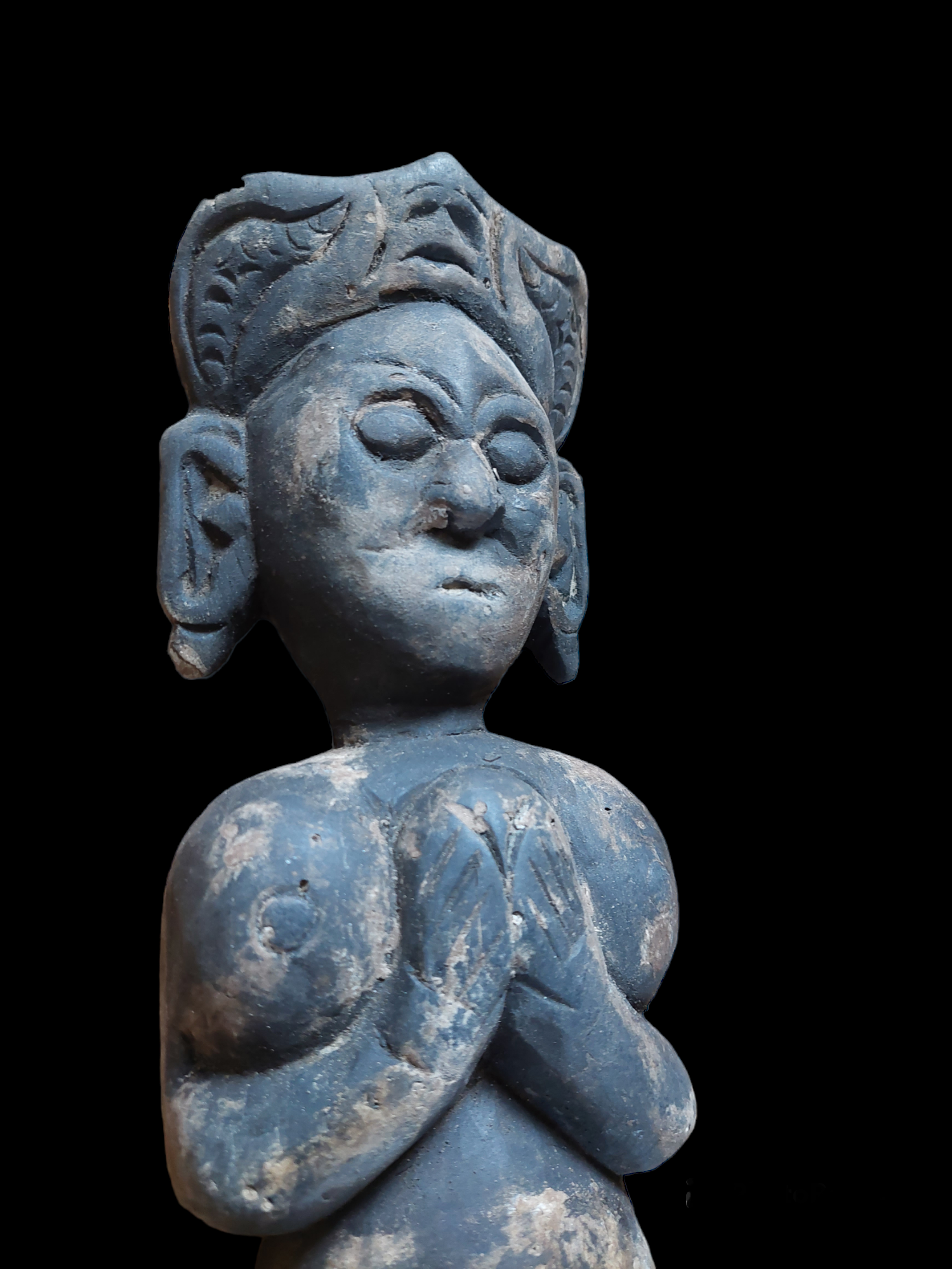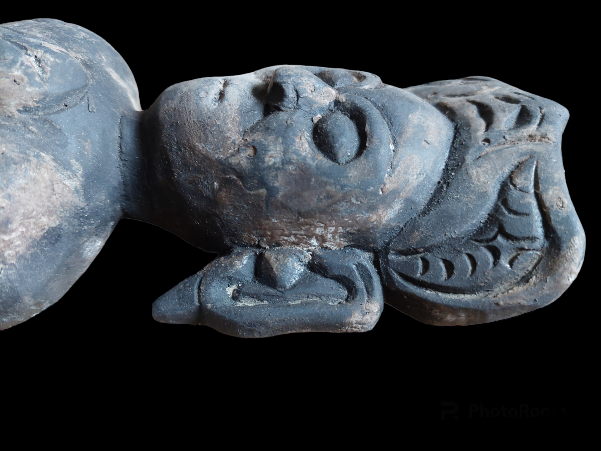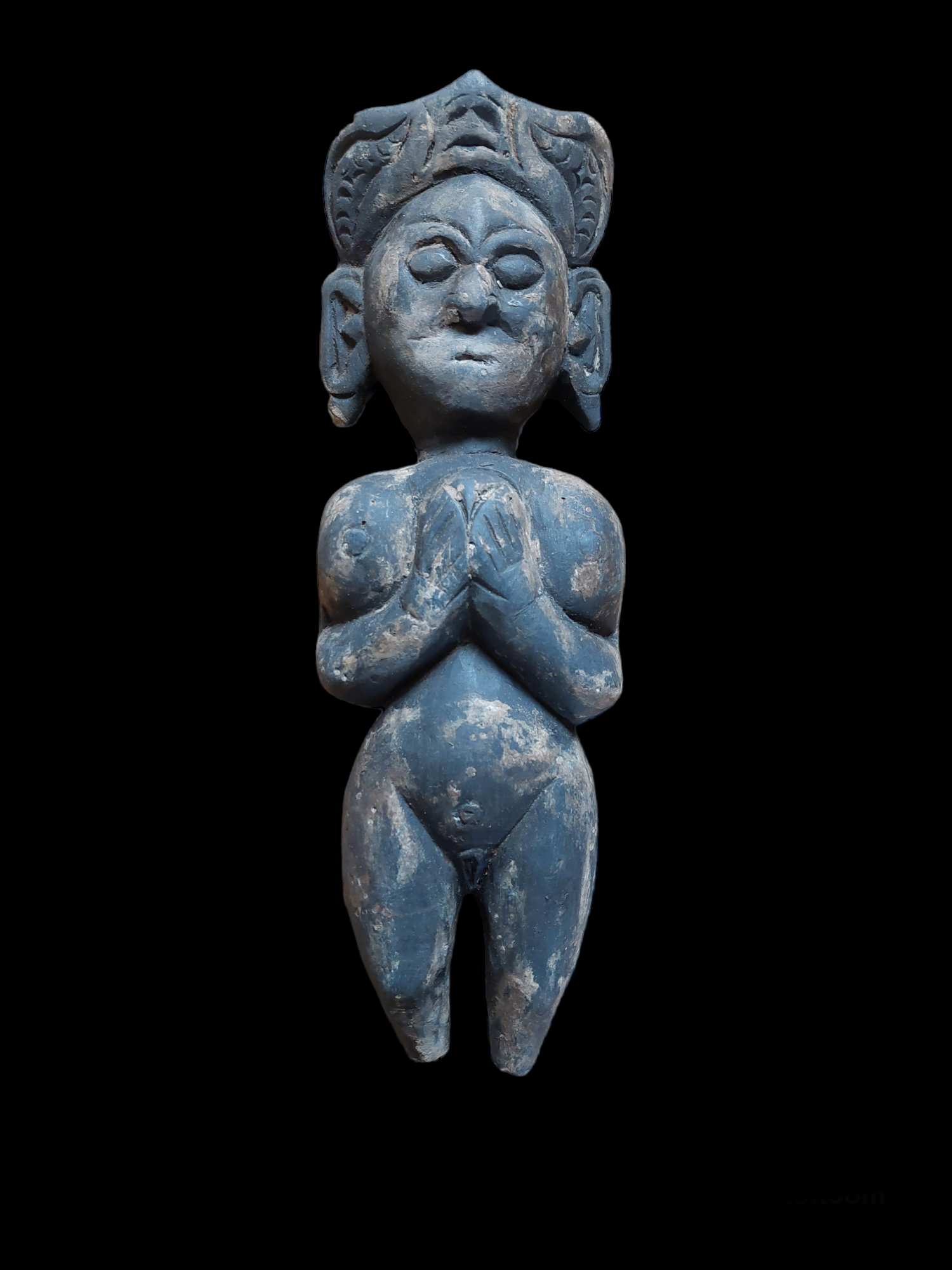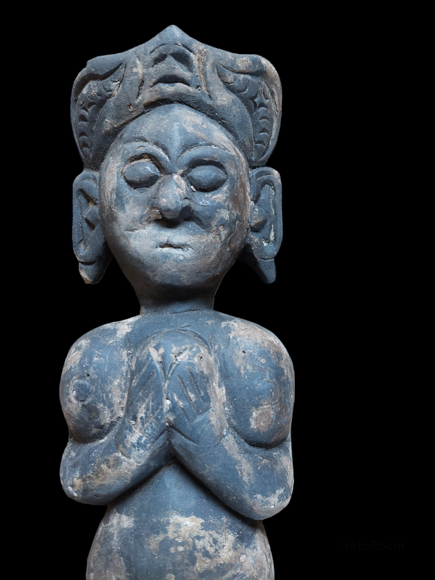 This statue is approximately 33 centimeters high. Please be aware that a statue such as this is not just a beautiful decorative piece to place in a display cabinet. It was made to be a spirit home, and still is so. Treat it with the utmost care, friendship and respect. And feel free to ask our advice if you need any on how to best take care of such as statue.