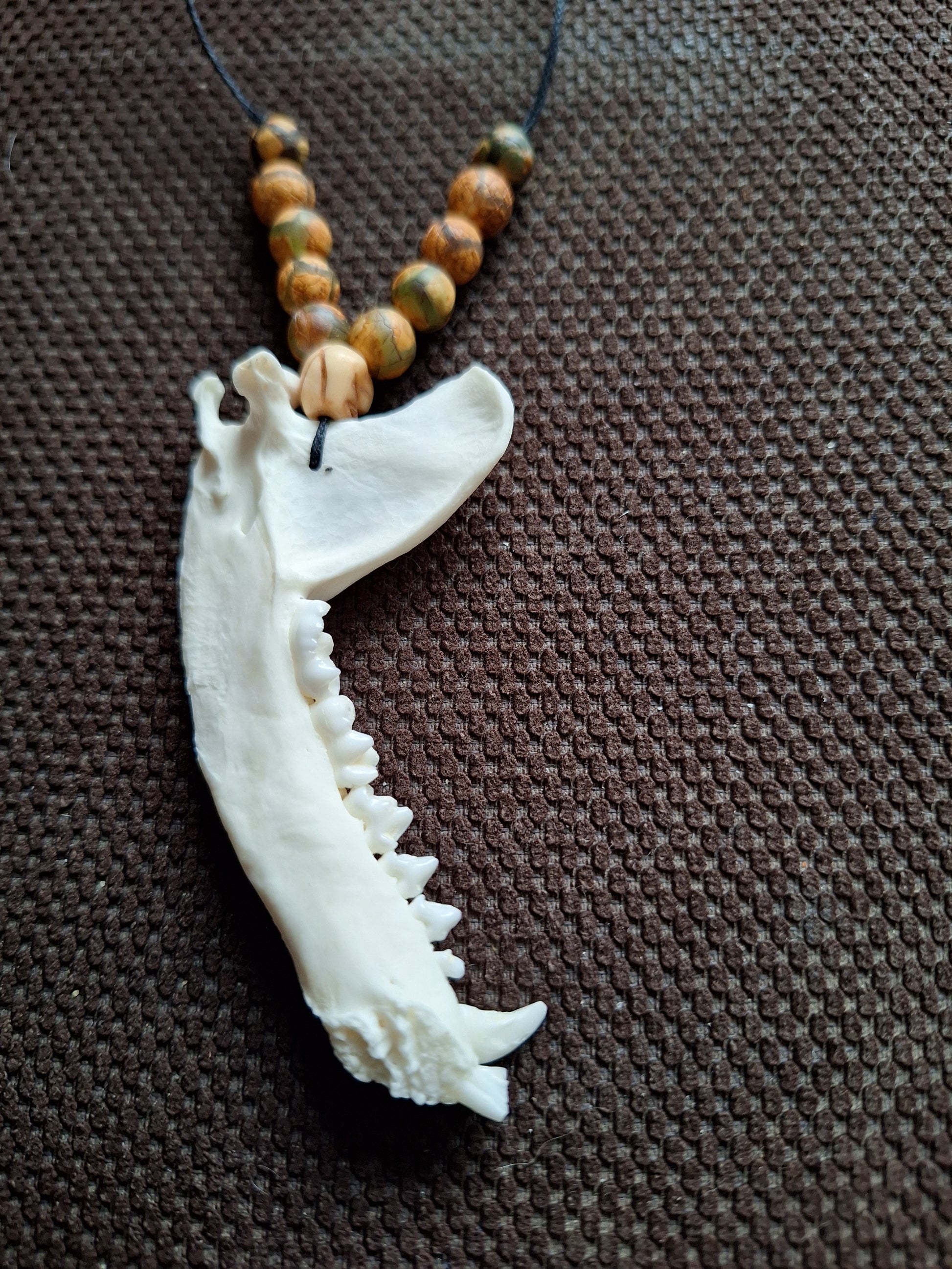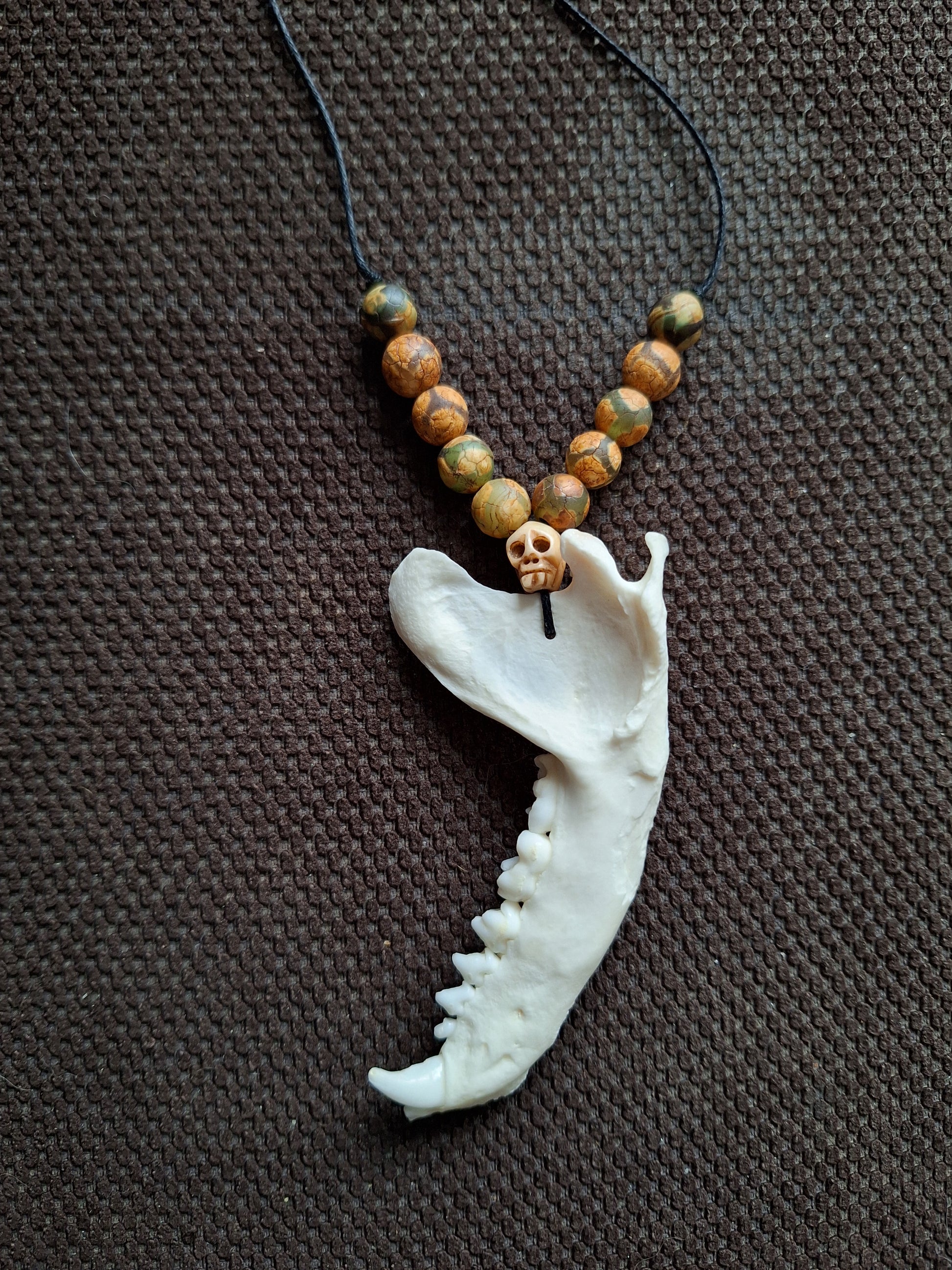 Racoon jaw bone with yak bone skull amulet necklace