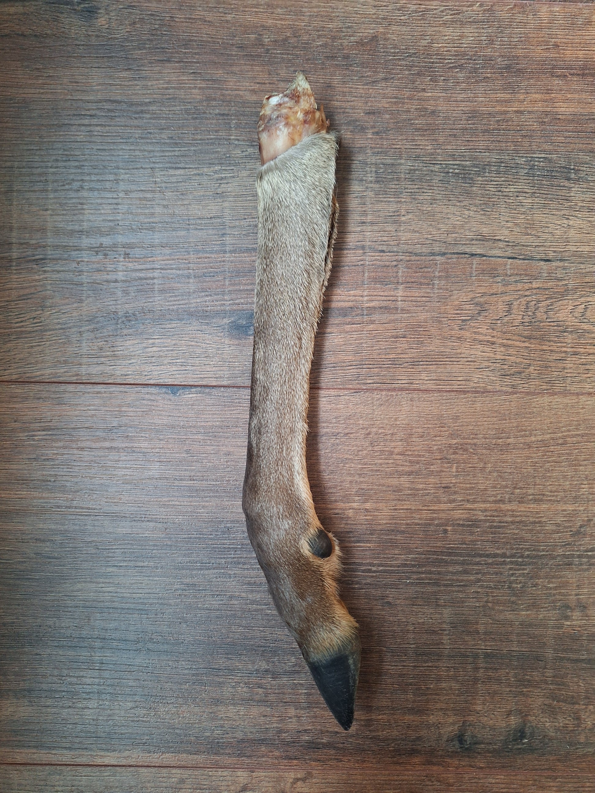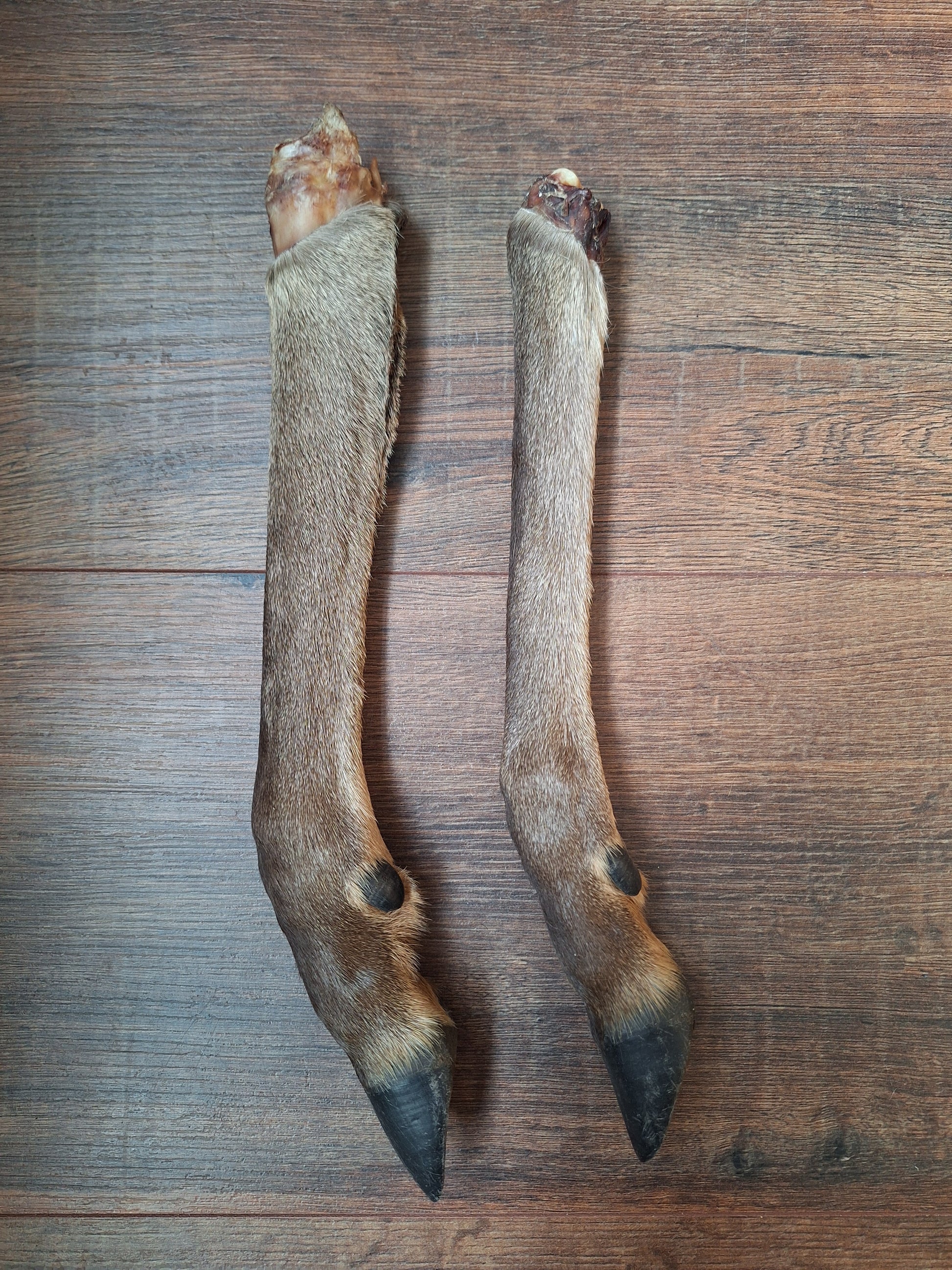 Prepared lower legs from a dutch red deer, roadkill victim. These preparations consist of complete lower legs, including the bones and hooves etc. Nice items for all kinds of personal ritual or crafting purposes.