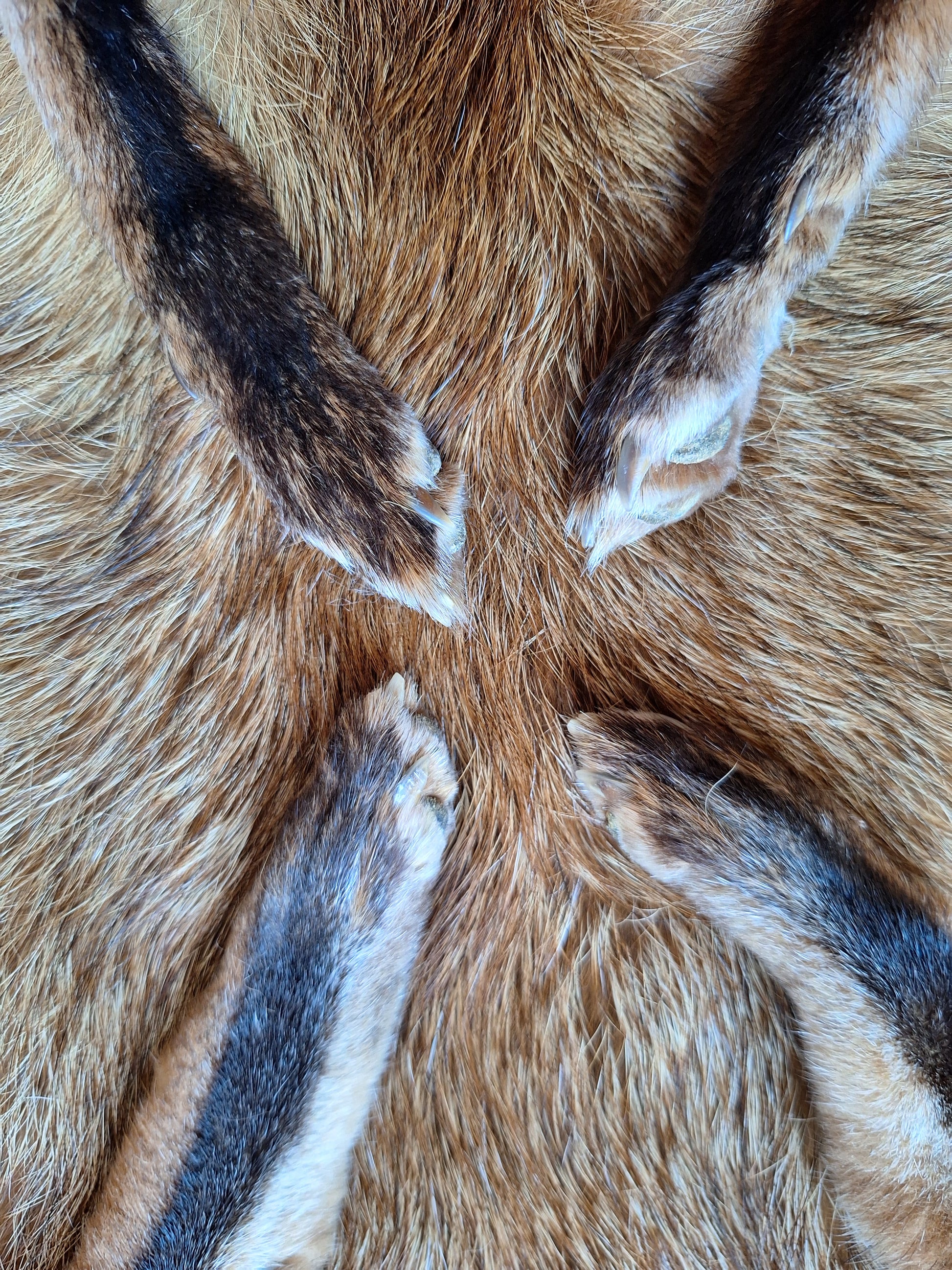 Nice hide from a red fox, in good condition. Recent preparation, soft and supple hide, with a nice face. Including all legs and paws with (almost all) nails.