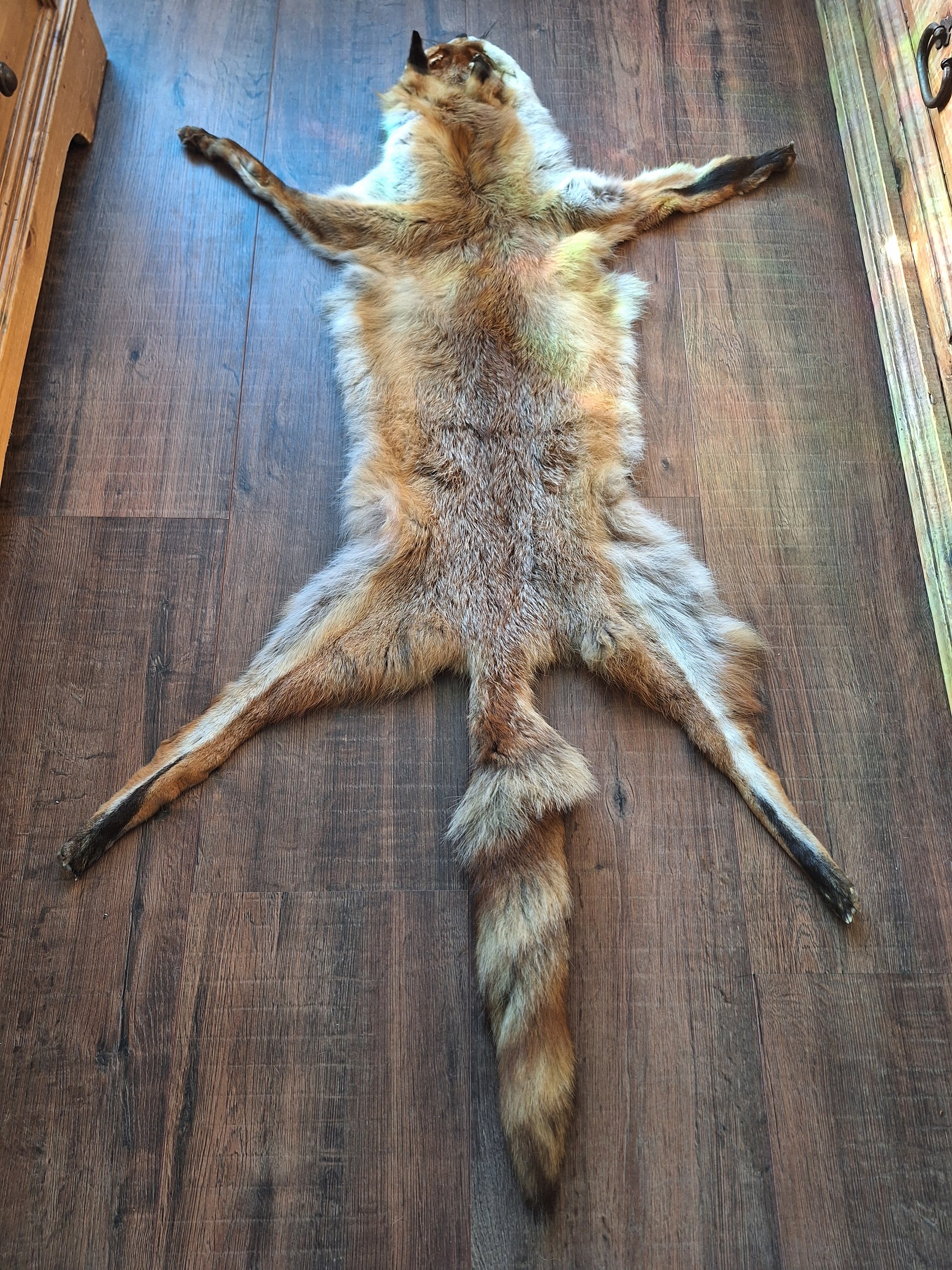 Very nice hide from a red fox, in good condition. Recent preparation, soft and supple hide, with a nice face and a beautiful long tail. Including all legs and paws with (almost all) nails.