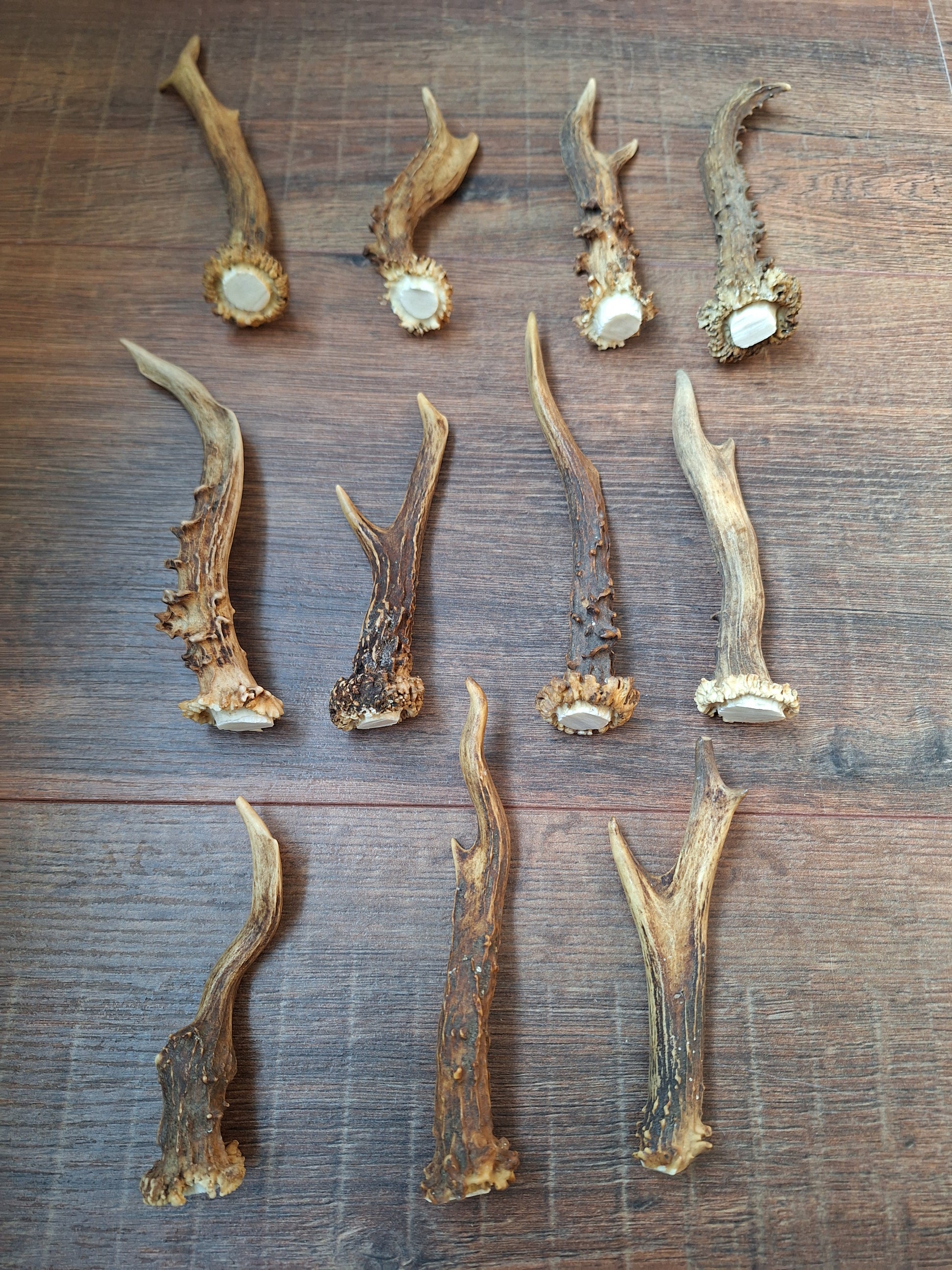 Nice antlers from dutch roe deer, single pieces. For all your personal ritual, crafting or decorational purposes. Size varies between 12 - 18 centimeters.