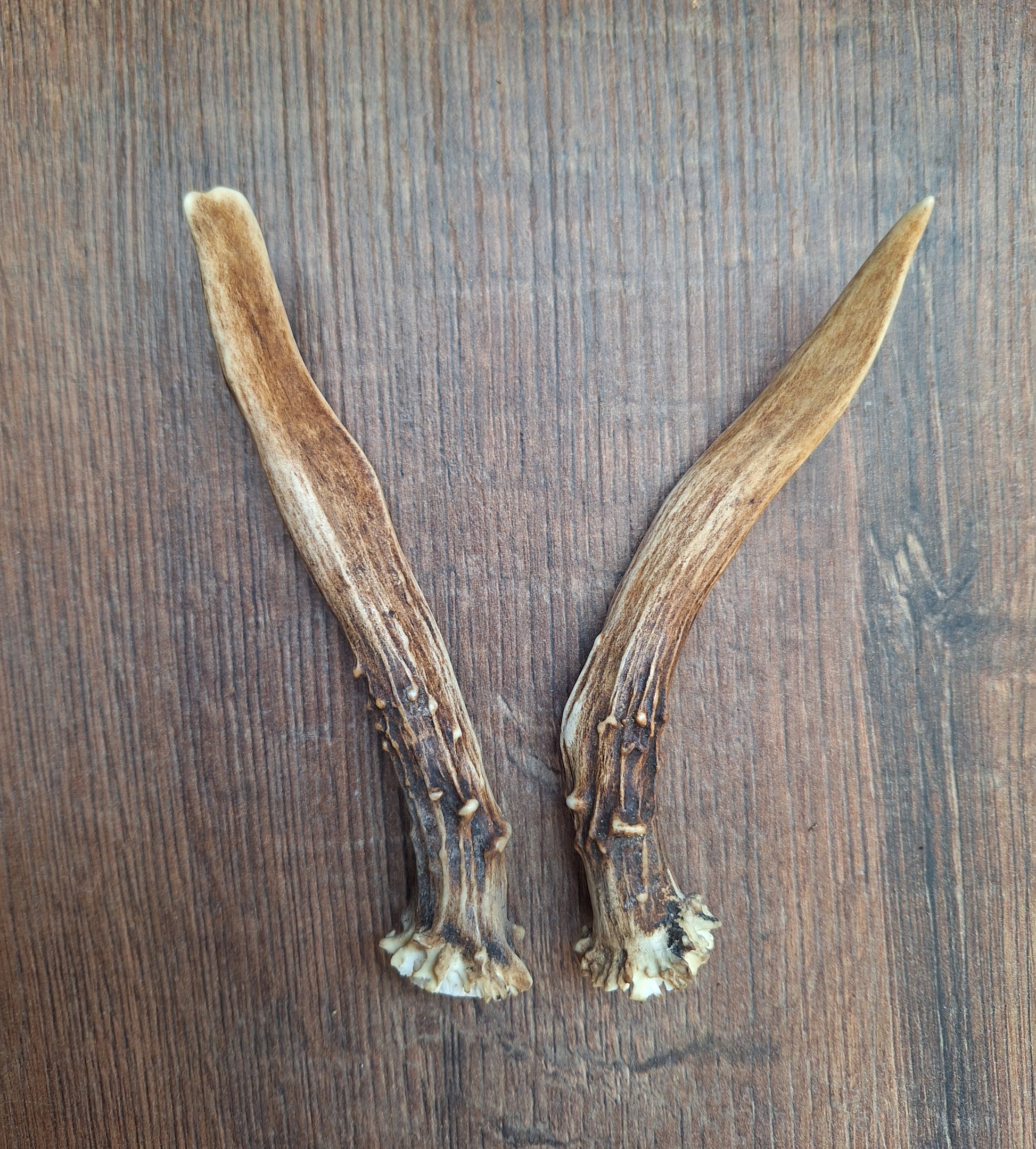 Sold per set of two antlers (from the same animal). Multiple sets available. You can choose your favorite one via the selection-menu (while still available of course).